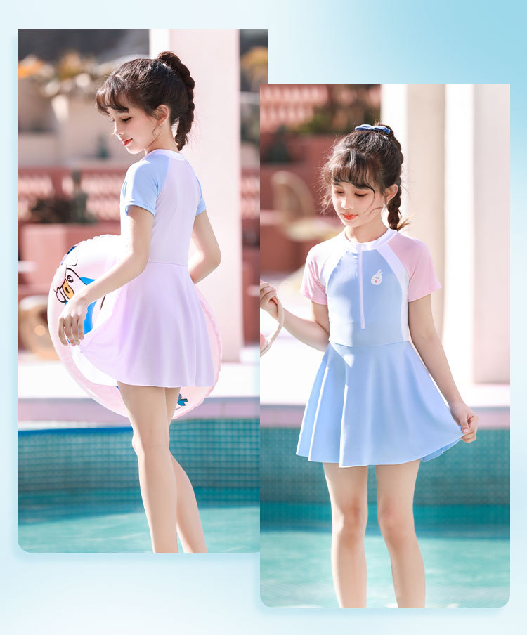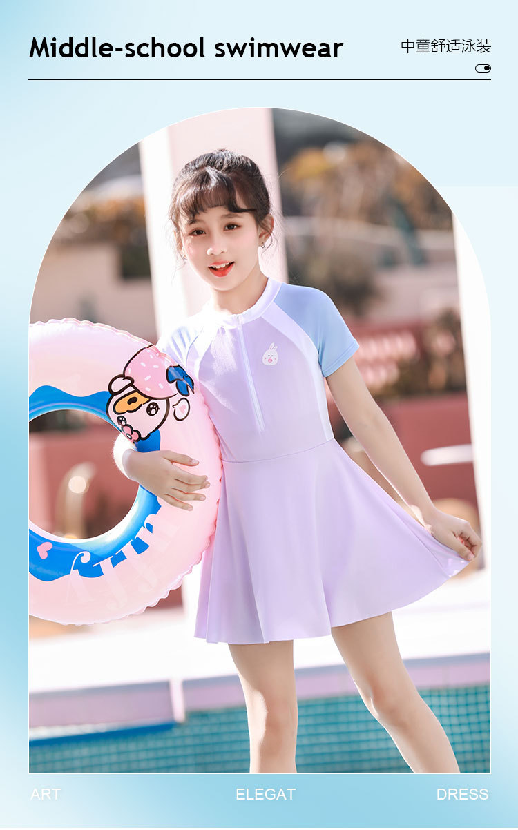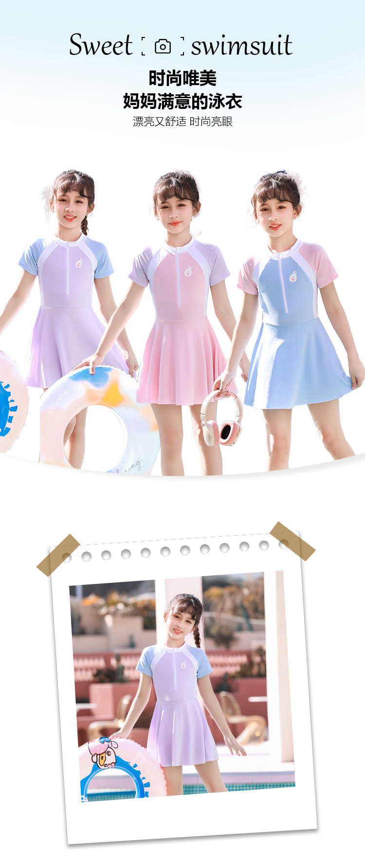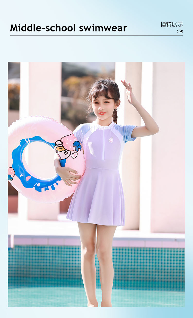 Traje de baño para niñas, deportes de una pieza, combinación de colores, versión coreana, estudiantes de secundaria, natación, entrenamiento profesional, trajes de baño de ocio para niños
