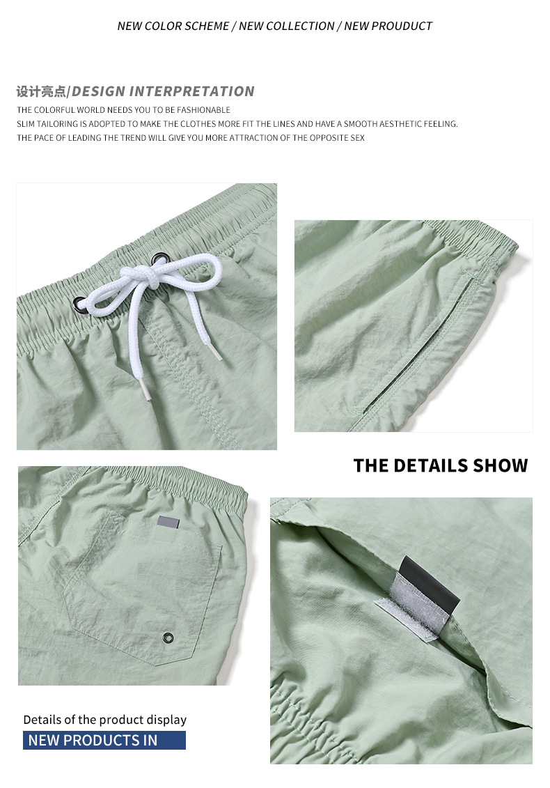 Oma Taslon pantalones cortos de natación transpirables de secado rápido de color sólido de cuatro puntos para hombre forro pantalones de playa deportivos de vacaciones junto al mar