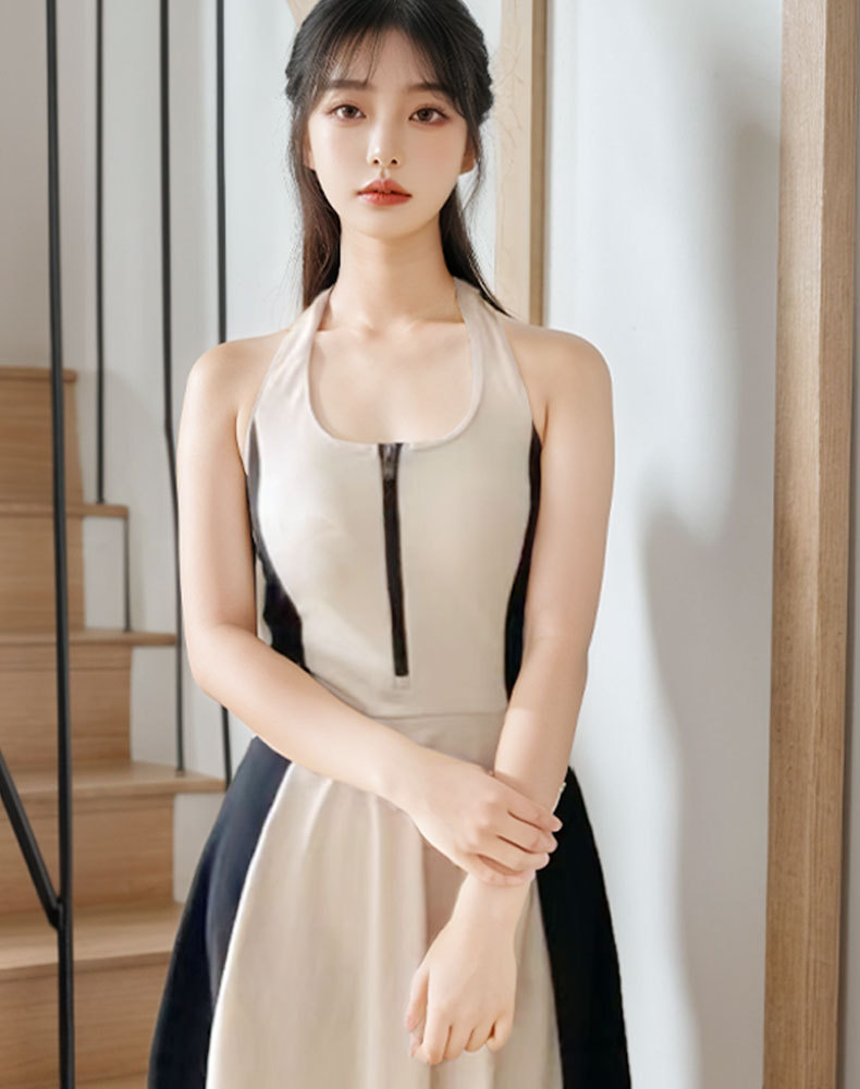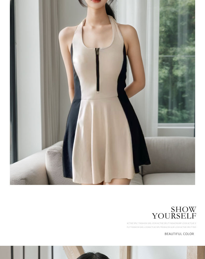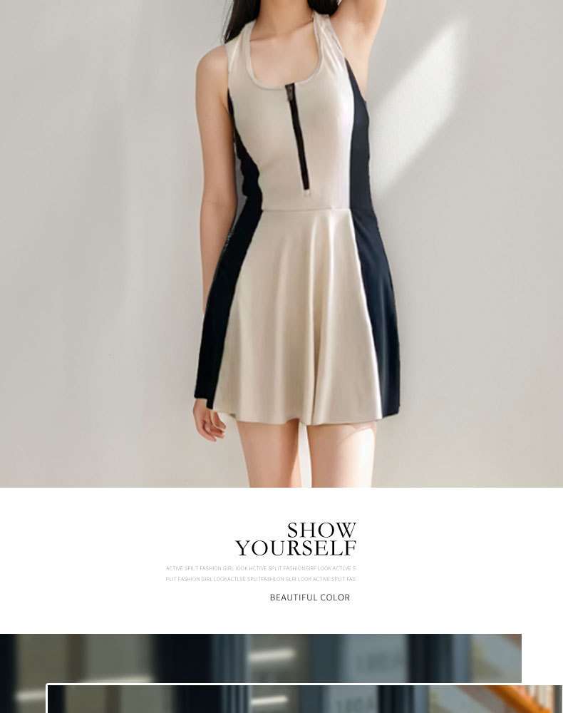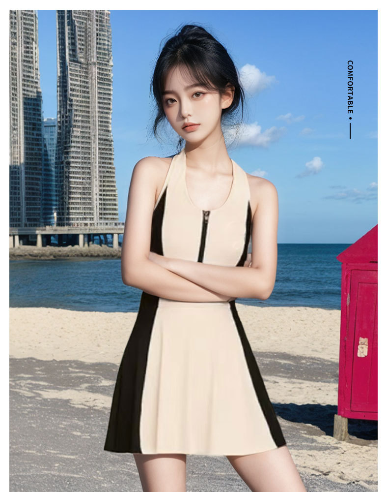 Nuevo traje de baño para mujer, falda deportiva de una pieza, cubierta conservadora, delgada, traje de baño con cuello colgante estilo ins coreano