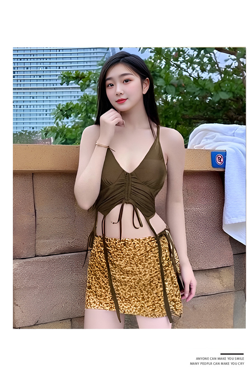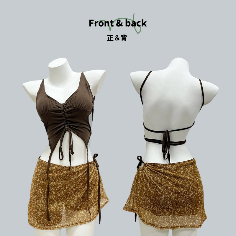 Nuevo traje de baño para mujer, falda dividida, puro deseo de lucir delgada, vacaciones de aguas termales junto al mar, tirantes, bikini, traje de baño al por mayor