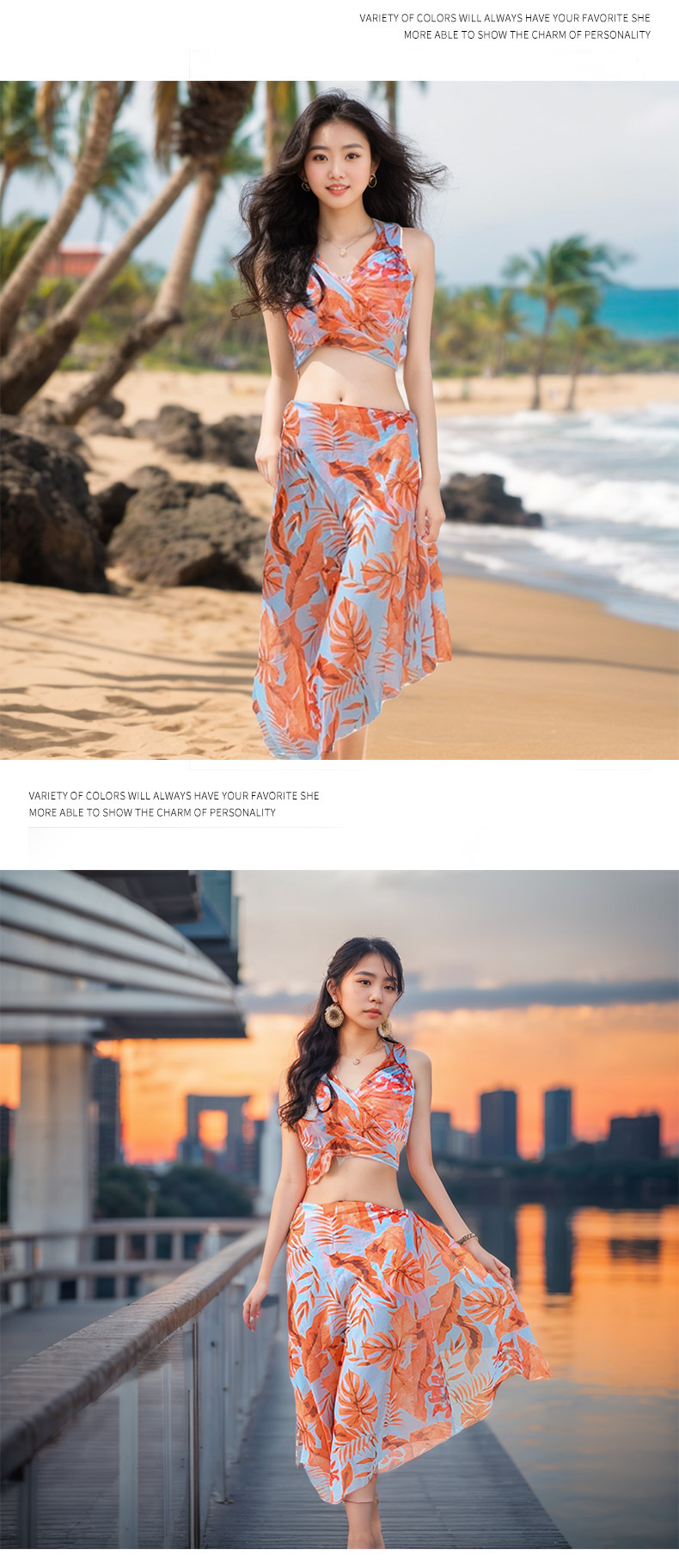 Traje de baño femenino sexy bikini dividido traje de tres piezas conservador y delgado que cubre la carne boxer playa playa traje de baño de vacaciones mujer