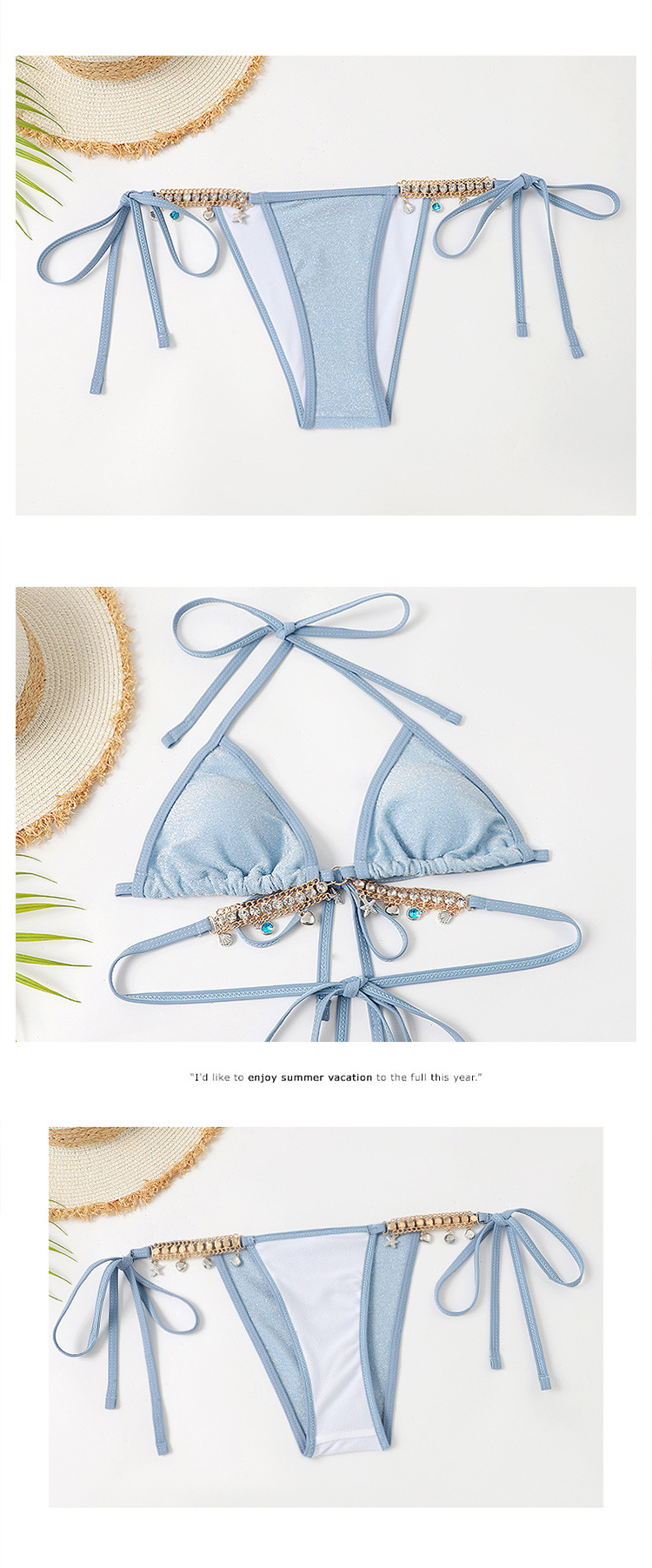 Trajes de baño de mujer explosión cadena de diamantes Europa y América pura correa de viento triángulo bikini vientos dulces y picantes trajes de baño de vacaciones sexy