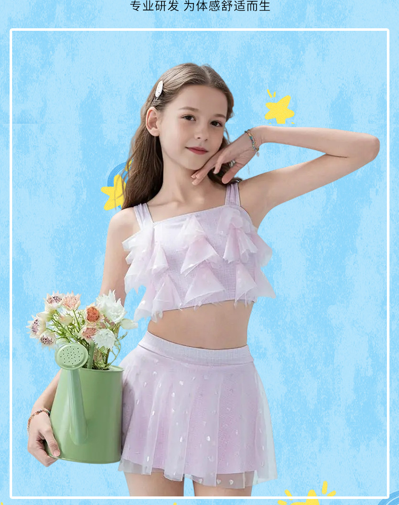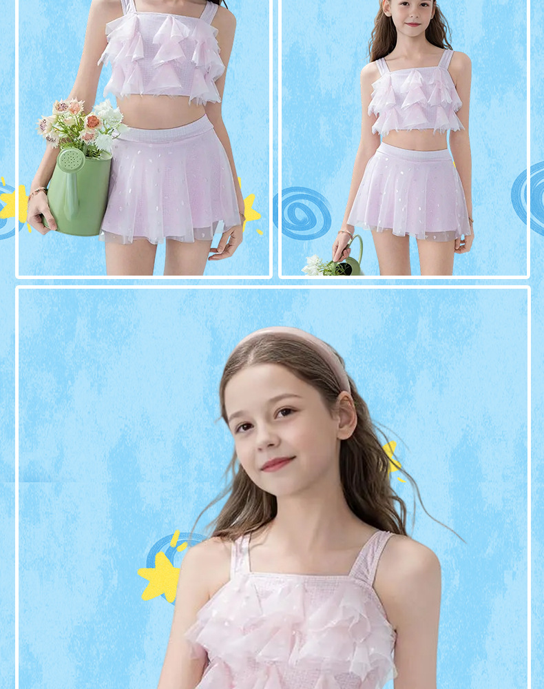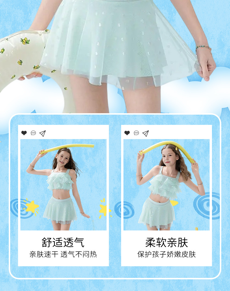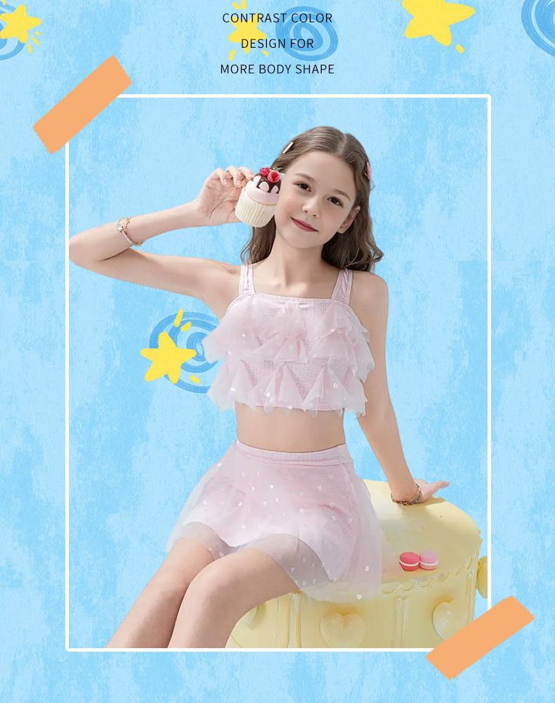 2025 nuevos trajes de baño para niños niñas divididas dos piezas de moda cabdaja de malla adorable traje de baño princesa de secundaria