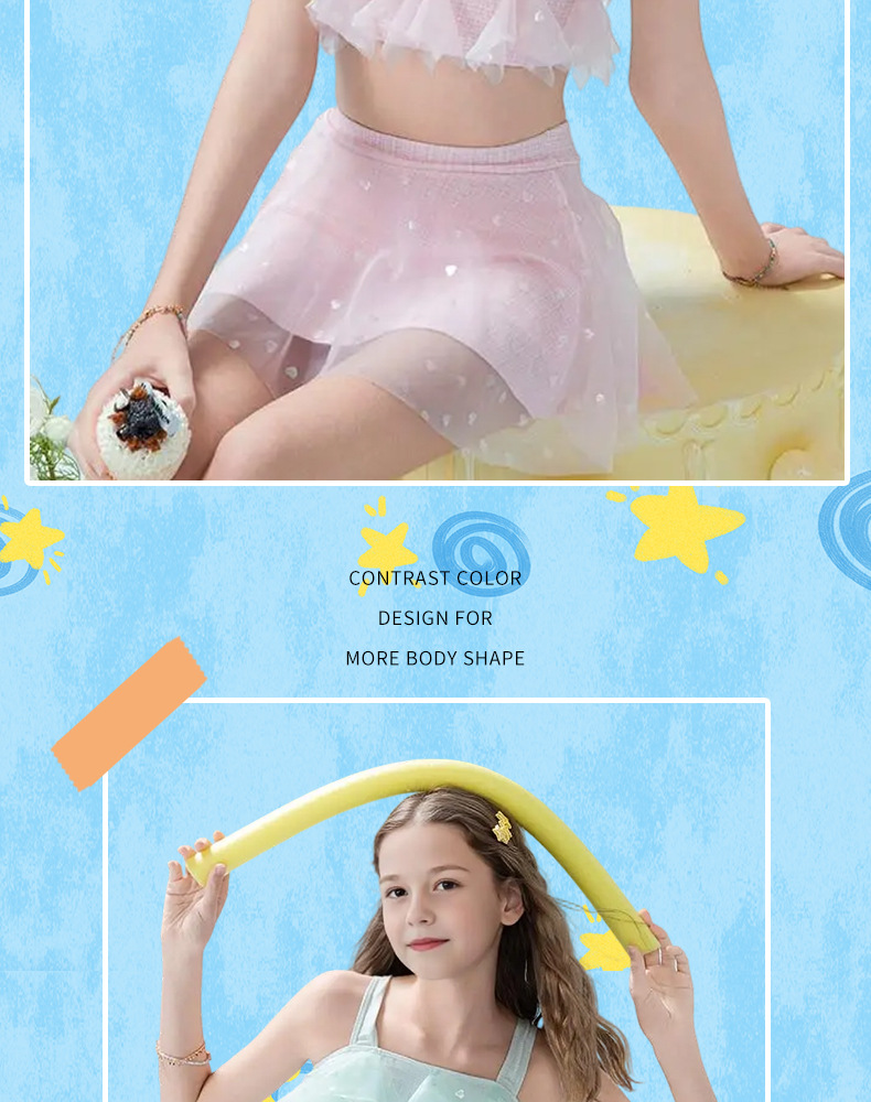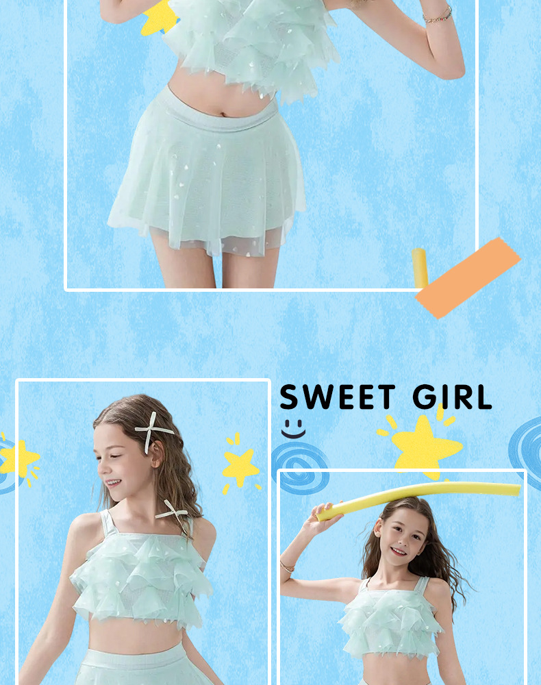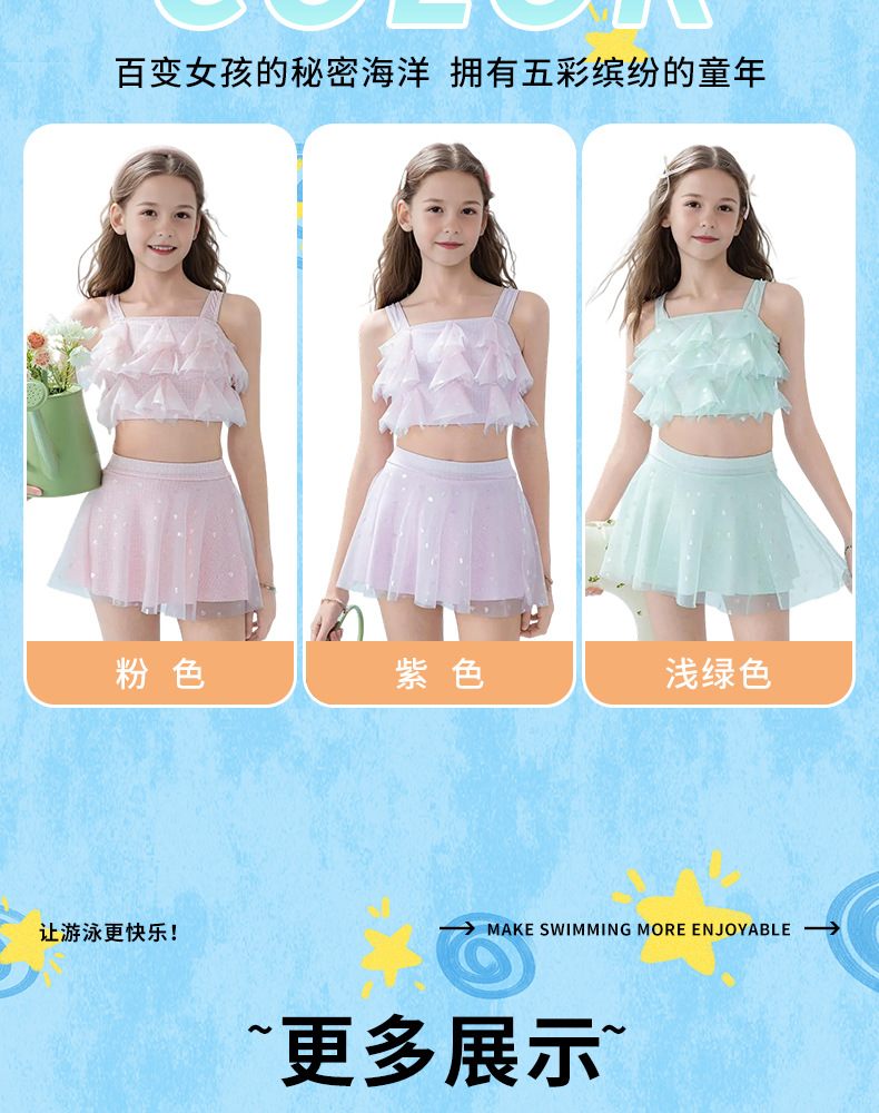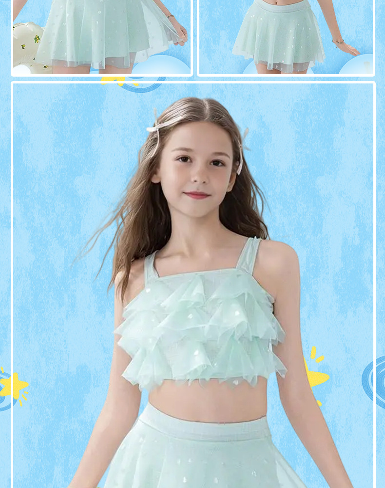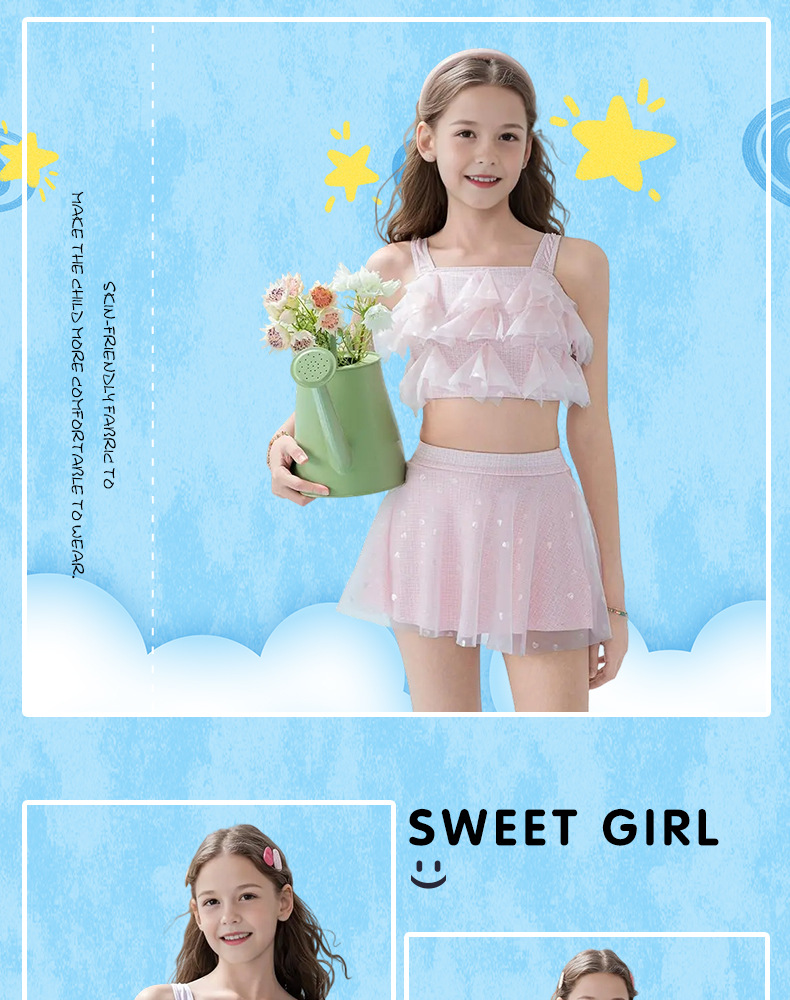 2025 nuevos trajes de baño para niños niñas divididas dos piezas de moda cabdaja de malla adorable traje de baño princesa de secundaria