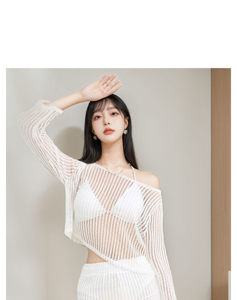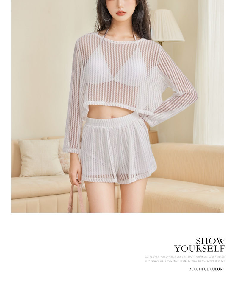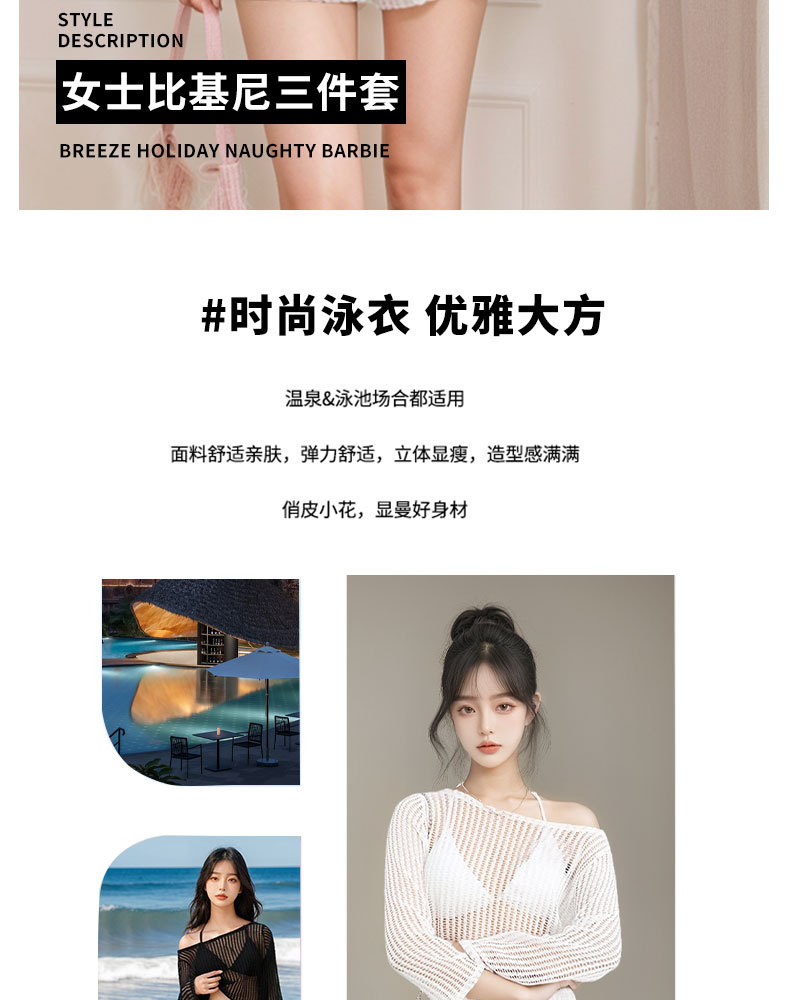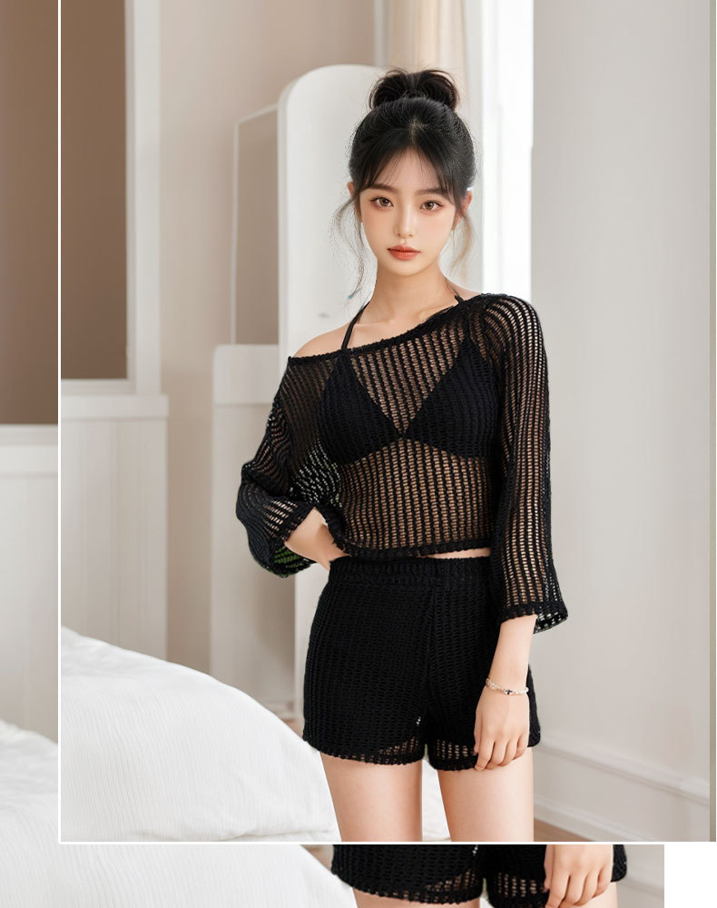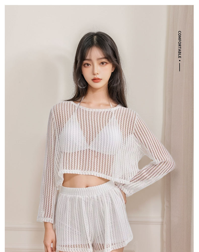 Nuevo traje de baño mujer dividida de tres piezas blusa de protección solar de manga larga encaje sexy punto traje de baño de vacaciones de playa hueco
