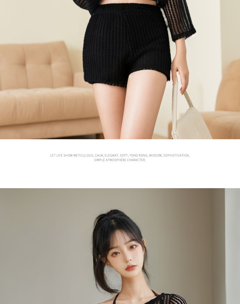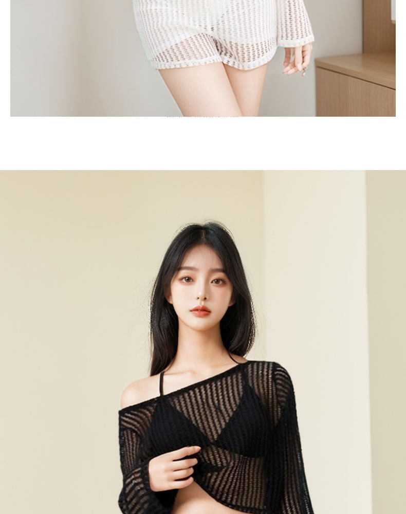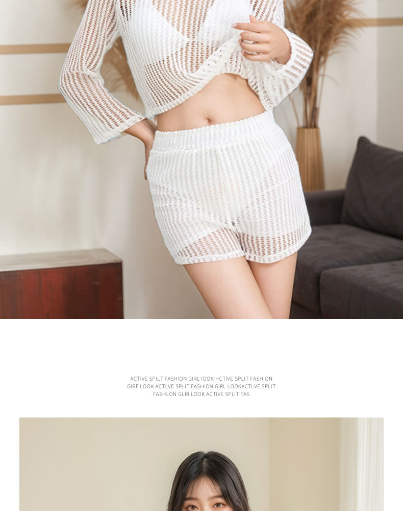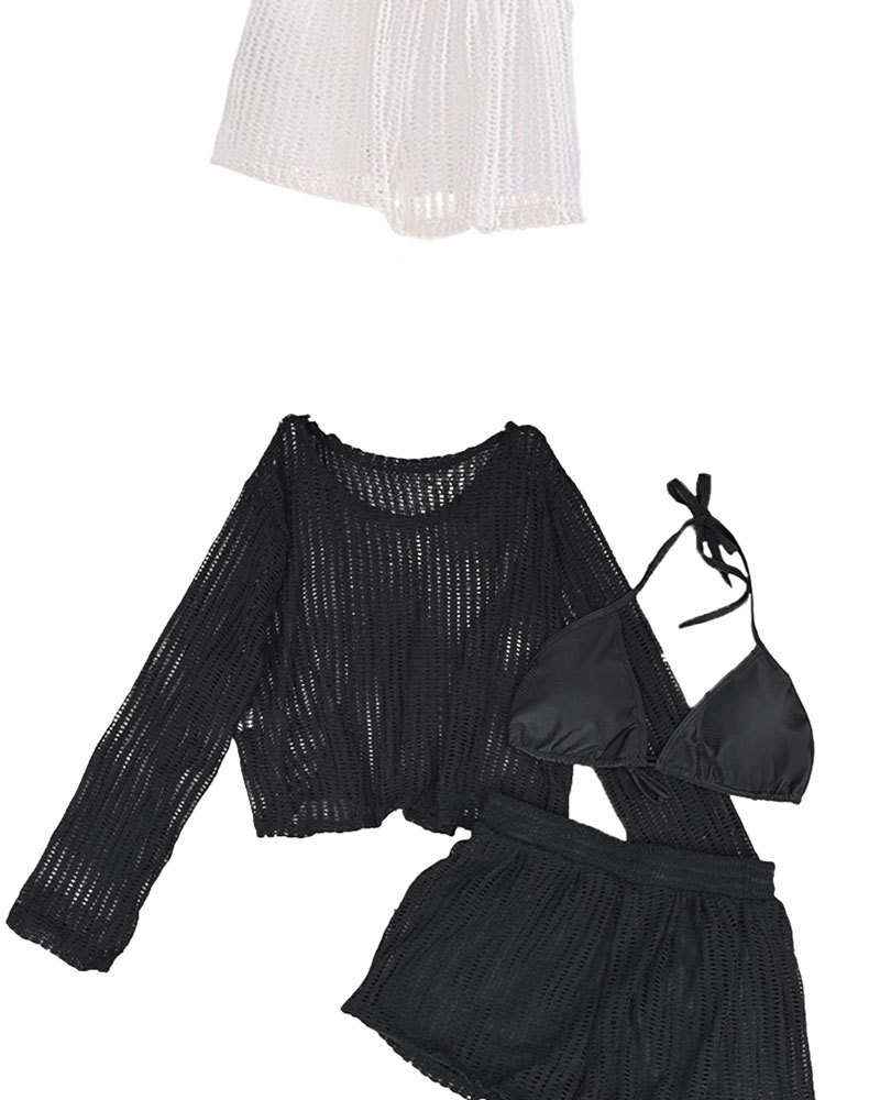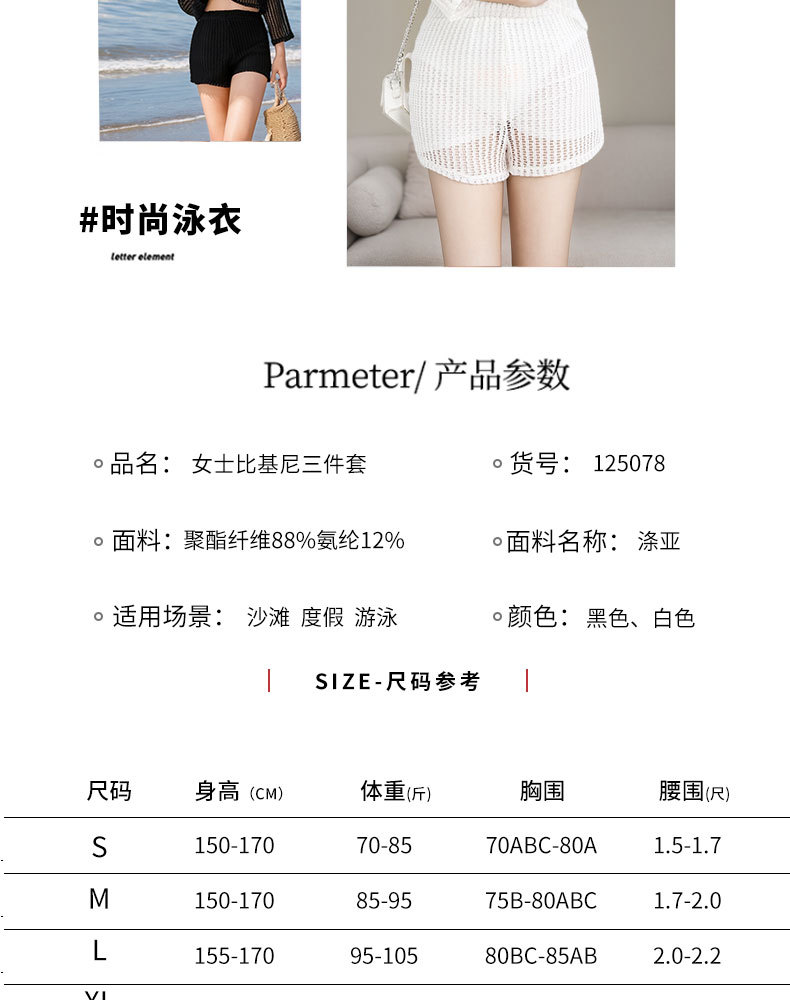 Nuevo traje de baño mujer dividida de tres piezas blusa de protección solar de manga larga encaje sexy punto traje de baño de vacaciones de playa hueco