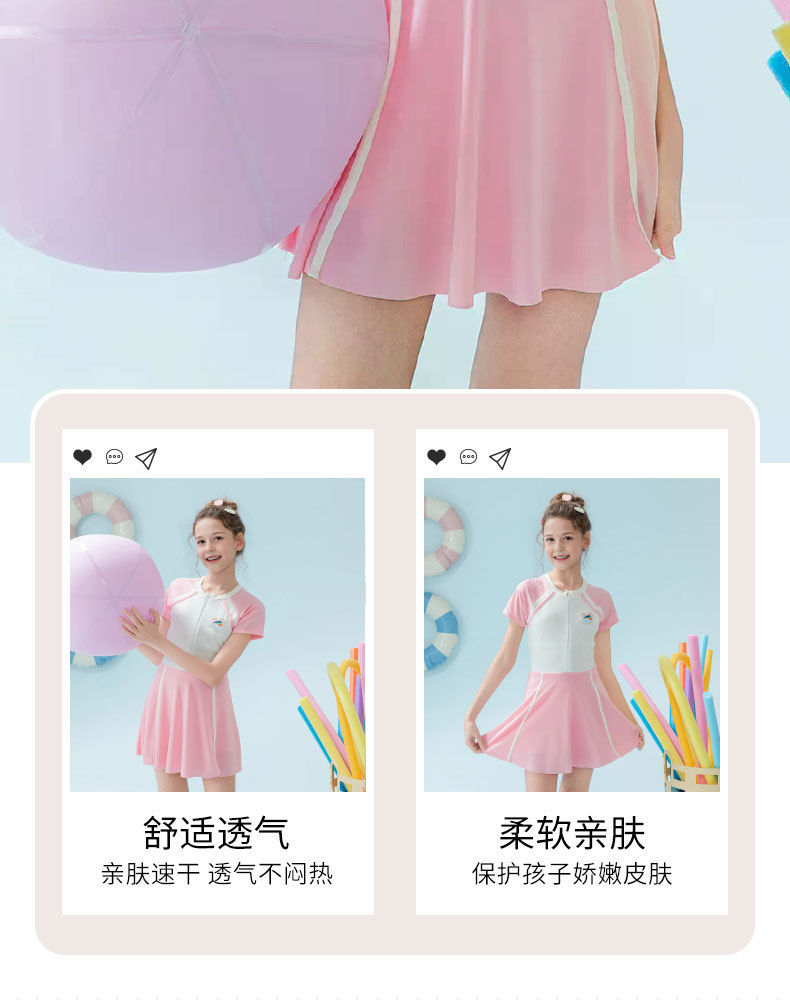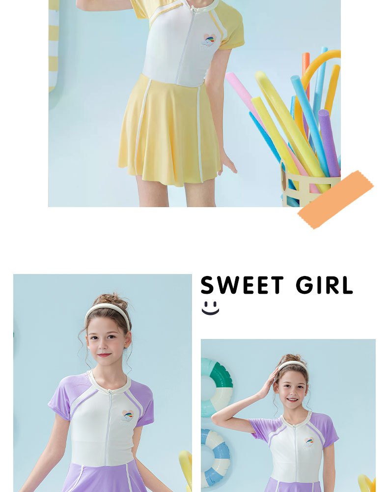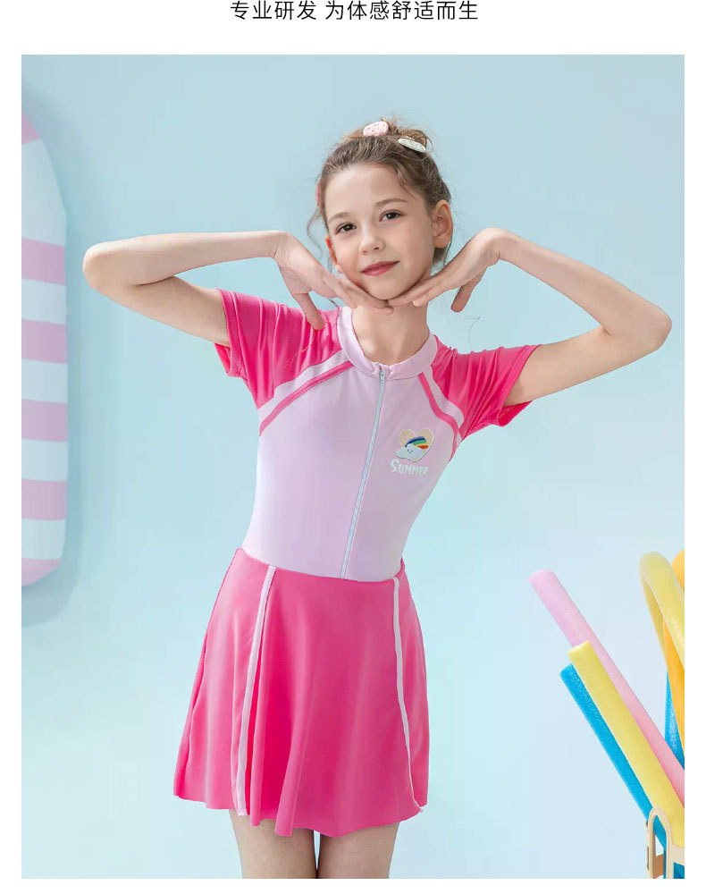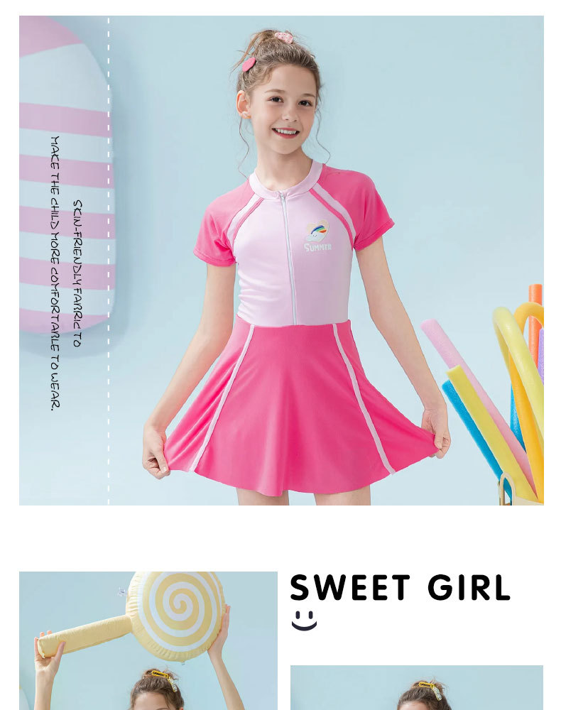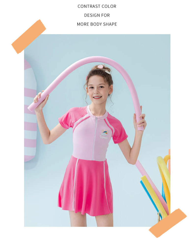 Traje de baño para niños 2025 nueva falda de una pieza a juego de color para niñas, protector solar, traje de baño profesional de aguas termales para niñas de secundaria