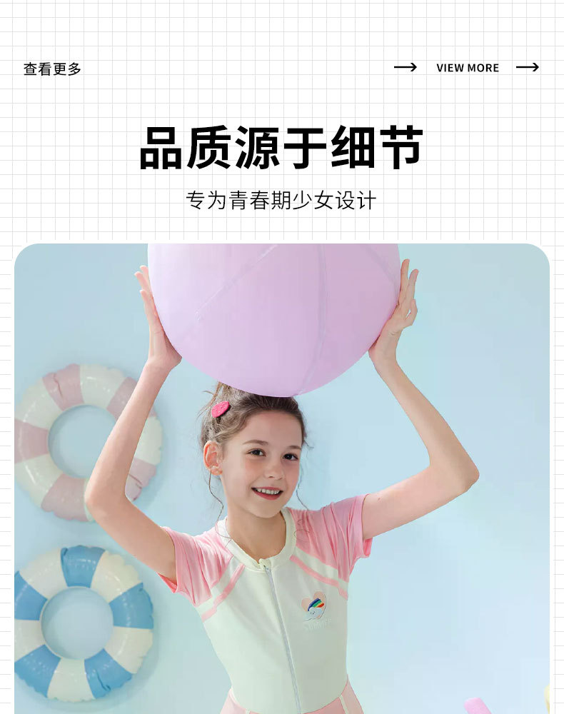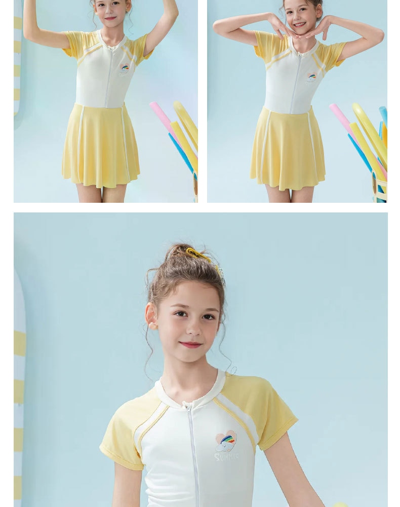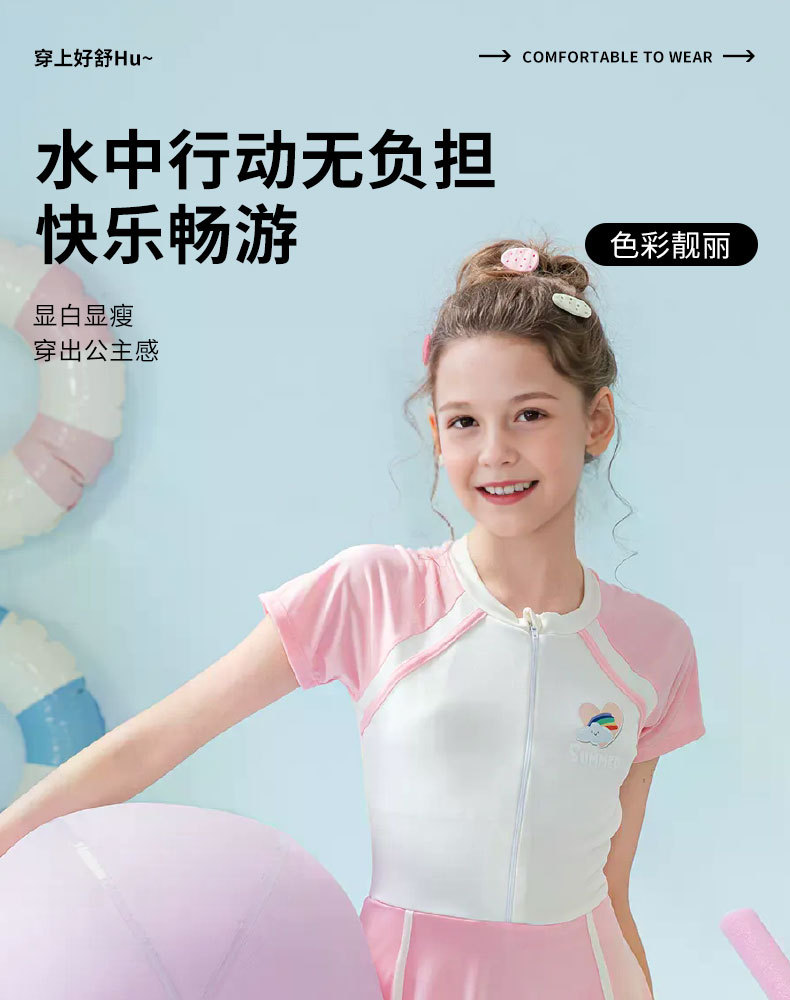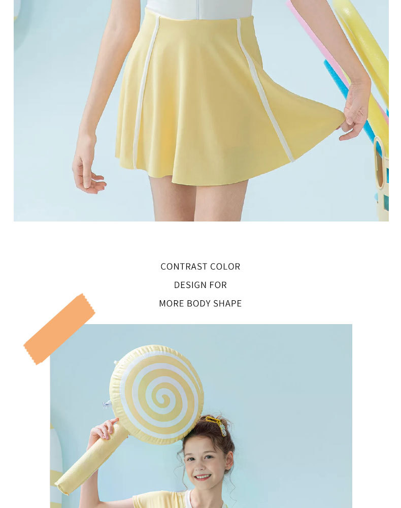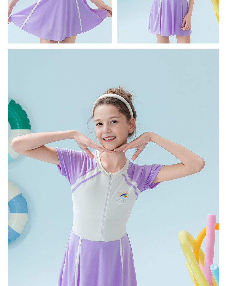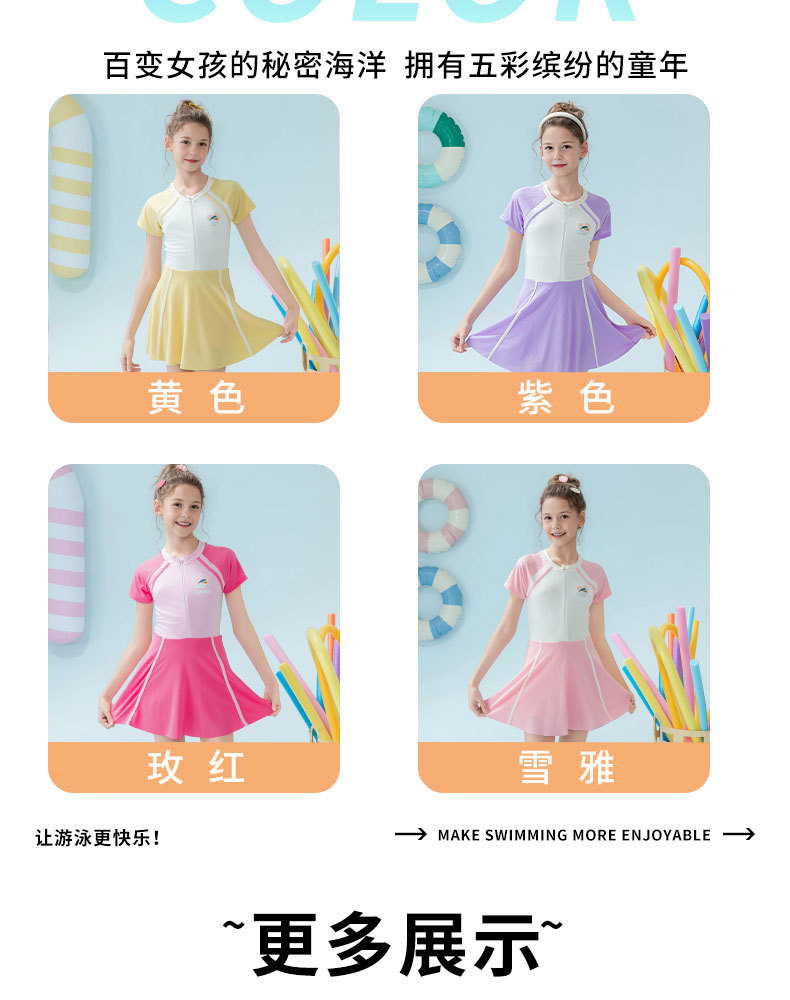 Traje de baño para niños 2025 nueva falda de una pieza a juego de color para niñas, protector solar, traje de baño profesional de aguas termales para niñas de secundaria