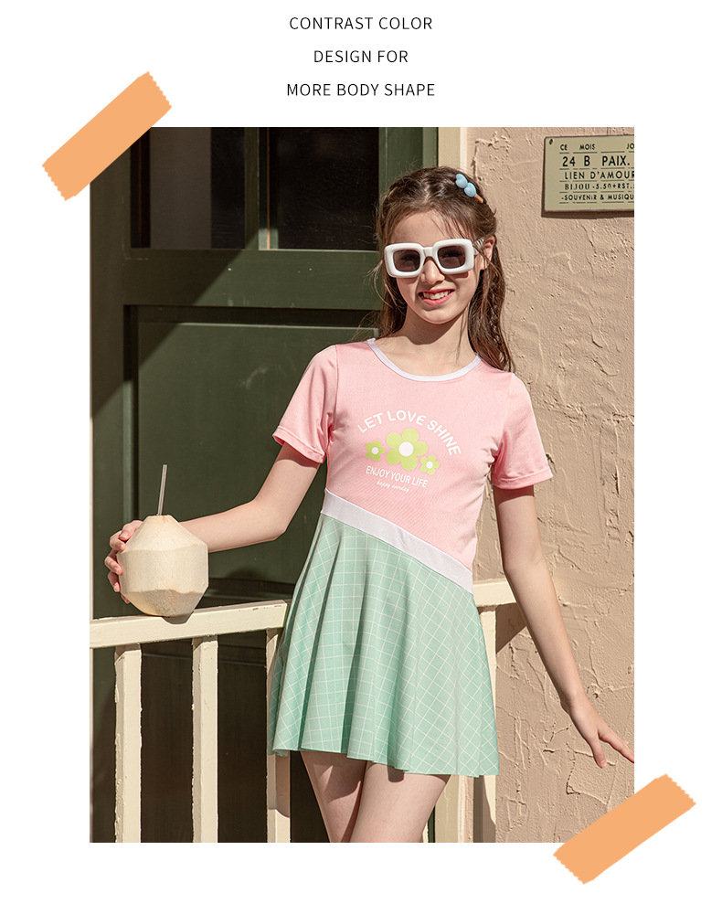 Traje de baño de una pieza para niños, traje de baño de entrenamiento profesional para niñas, estudiantes de secundaria, traje de baño conservador con almohadilla para el pecho para niñas