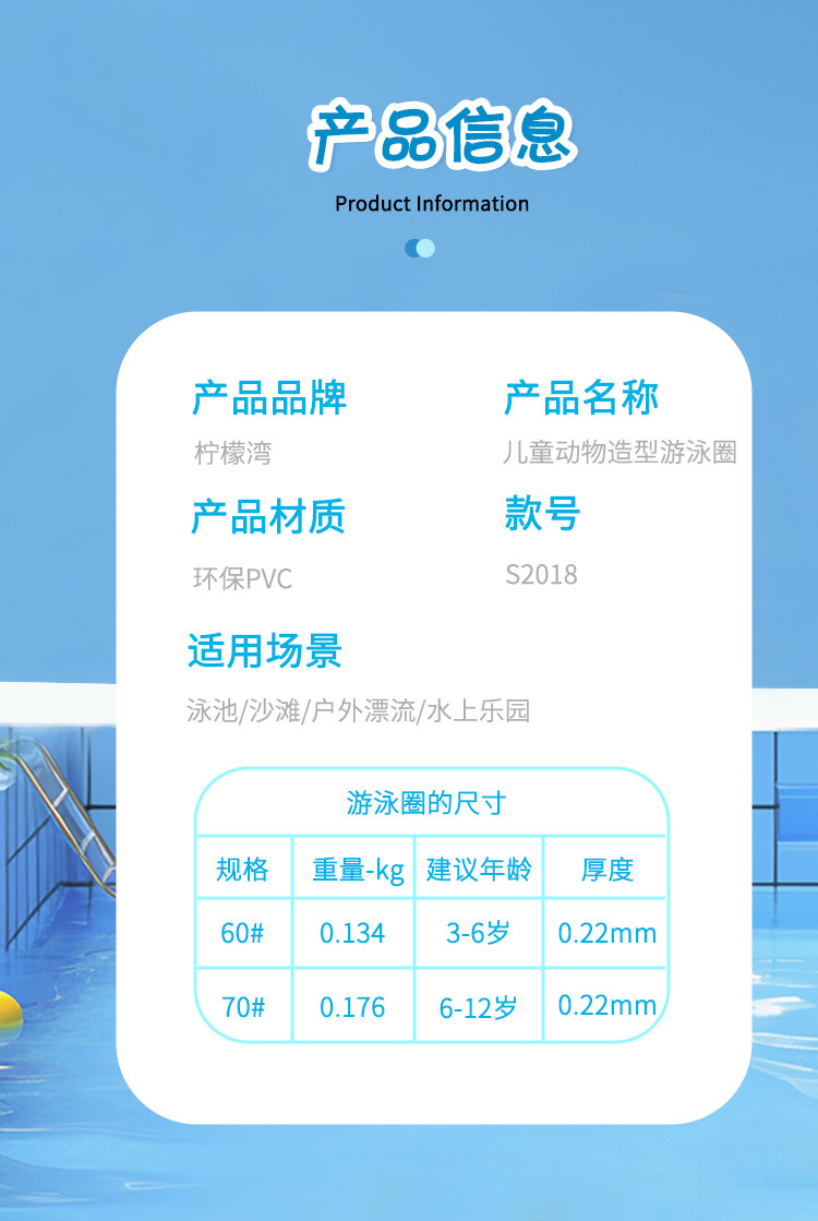 | Diámetro interno después de la inflación | 60 # Pink Rabbit [adecuado para 3-6 años],60 # rana verde [adecuado para 3-6 años],60 # Polla amarilla [adecuado para 3-6 años de edad],60 # elefante azul [adecuado para 3-6 años],70 # Pink Rabbit [adecuado para 6-12 años],70 # rana verde [adecuado para 6-12 años de edad],70 # Polla amarilla [adecuado para 6-12 años de edad],70 # elefante azul [adecuado para 6-12 años] |