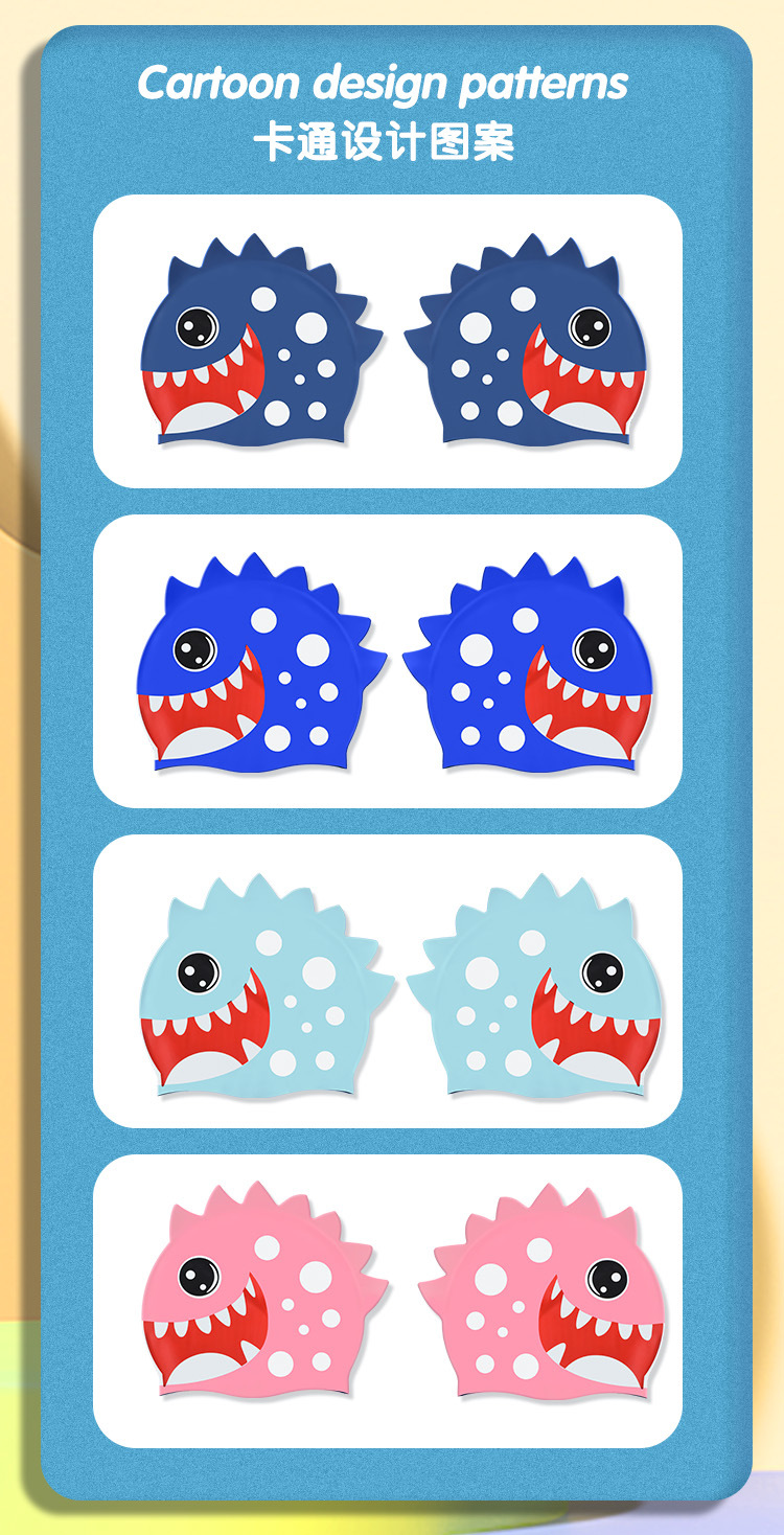 Sombreros de baño para niños impermeables no estrangulación de dibujos animados de silicona niñas bebés profesionales para el cabello largo para proteger los oídos para aumentar la gorra de baño