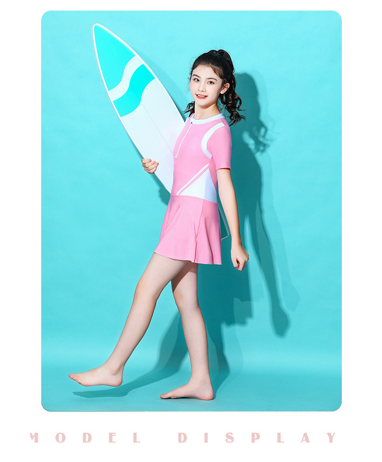 Traje de baño para niñas estilo deportivo Vestido de una pieza para niñas mediano y grande para niños 2023 nuevo traje de baño de vacaciones de primavera caliente estilo occidental dulce
