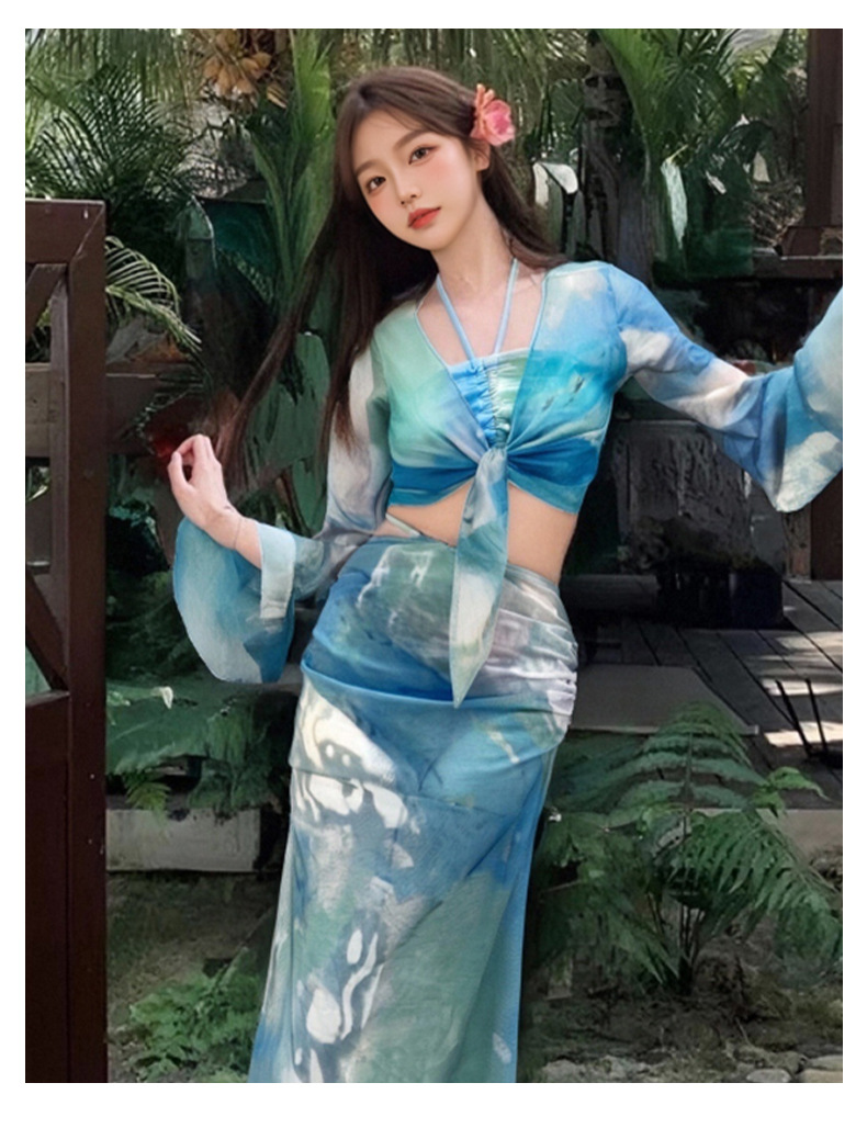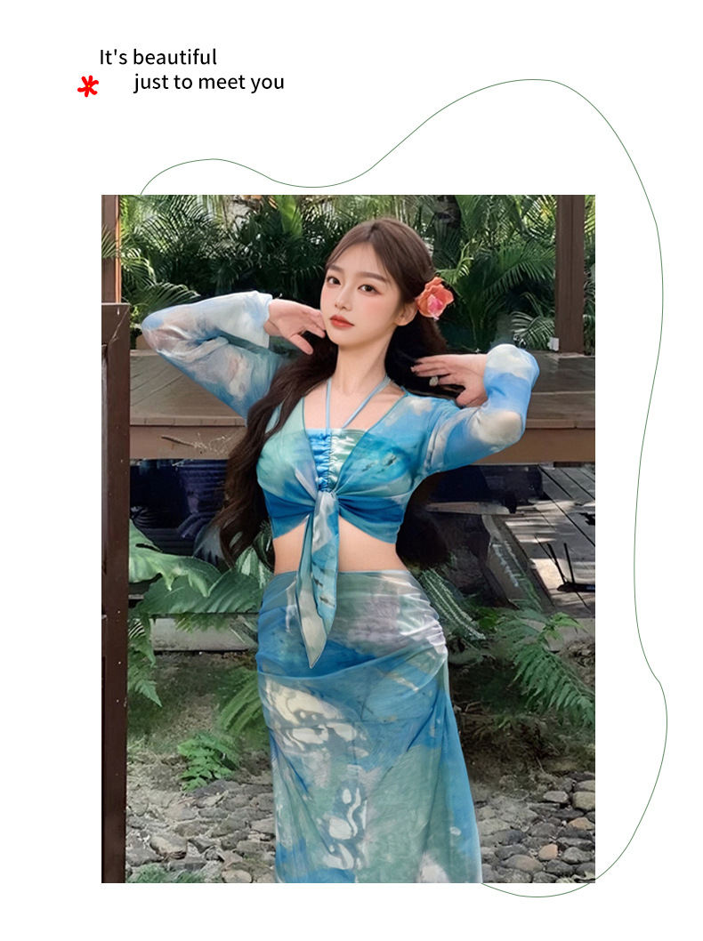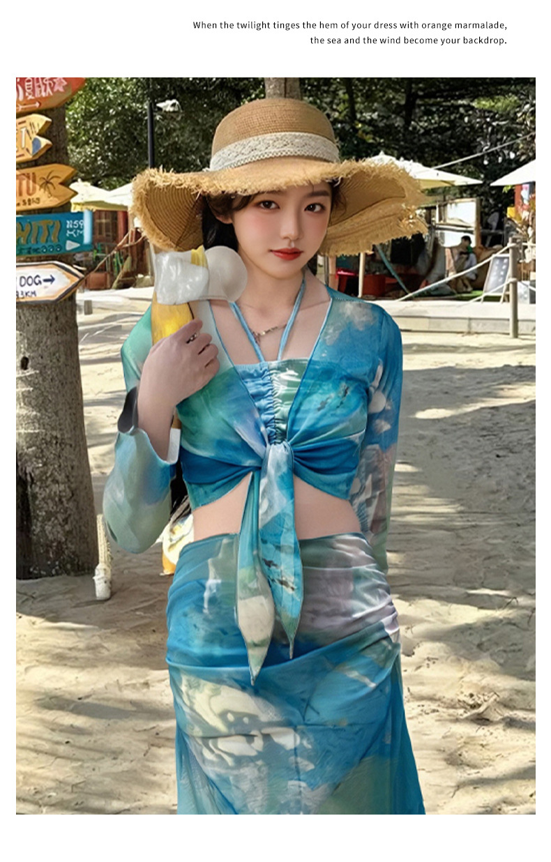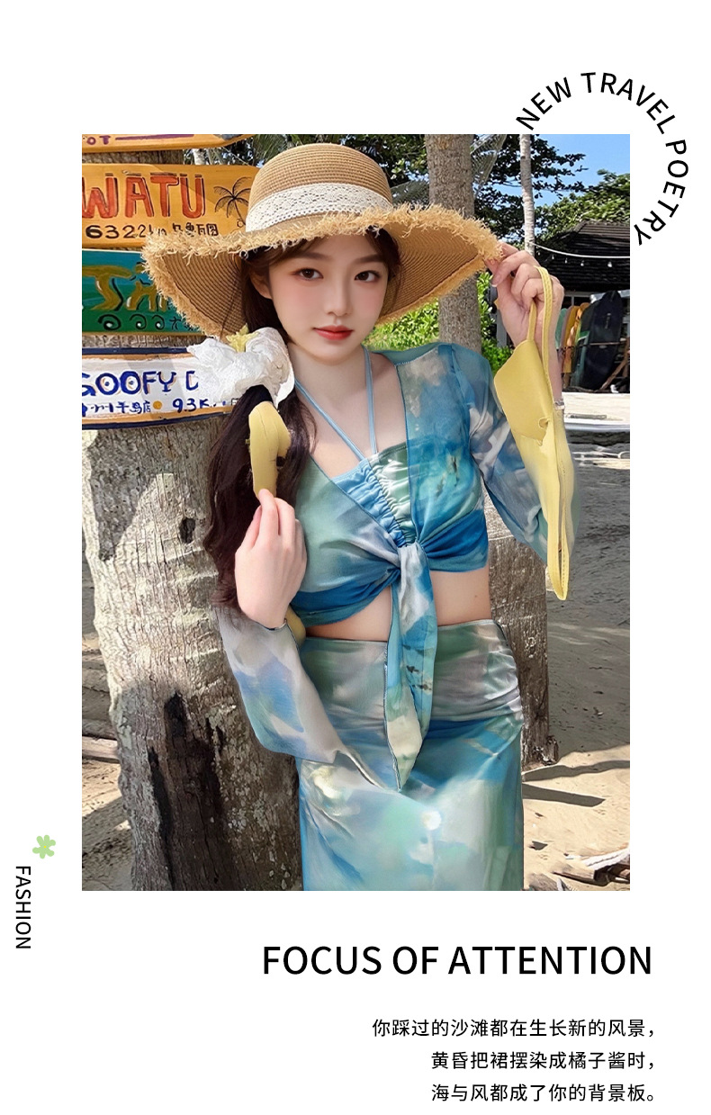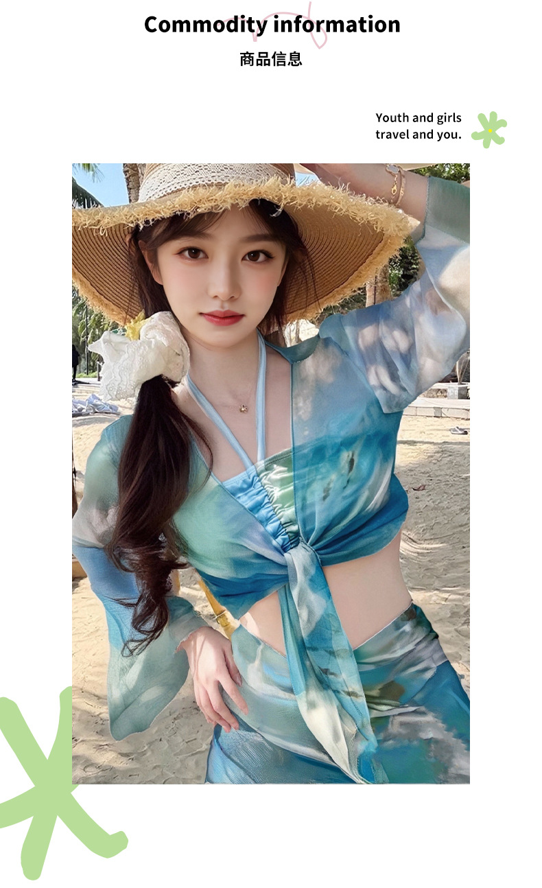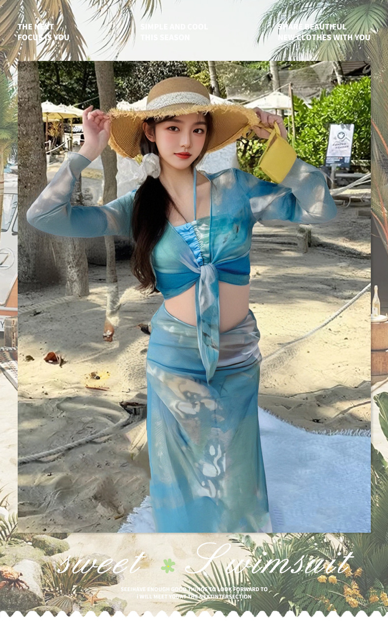 2025 nuevo vestido de playa de vacaciones de aguas termales bikini de cuatro piezas puro deseo sexy traje de baño bikini mujeres al por mayor