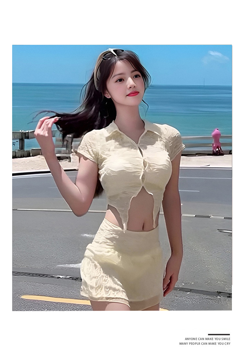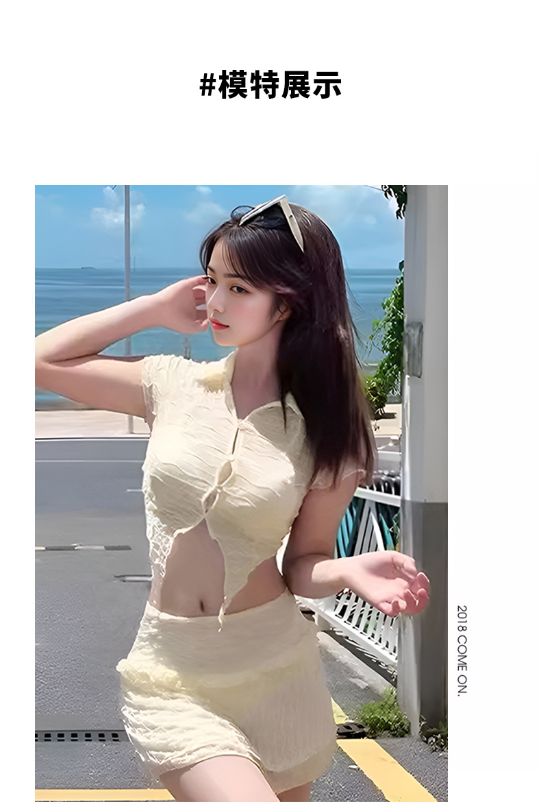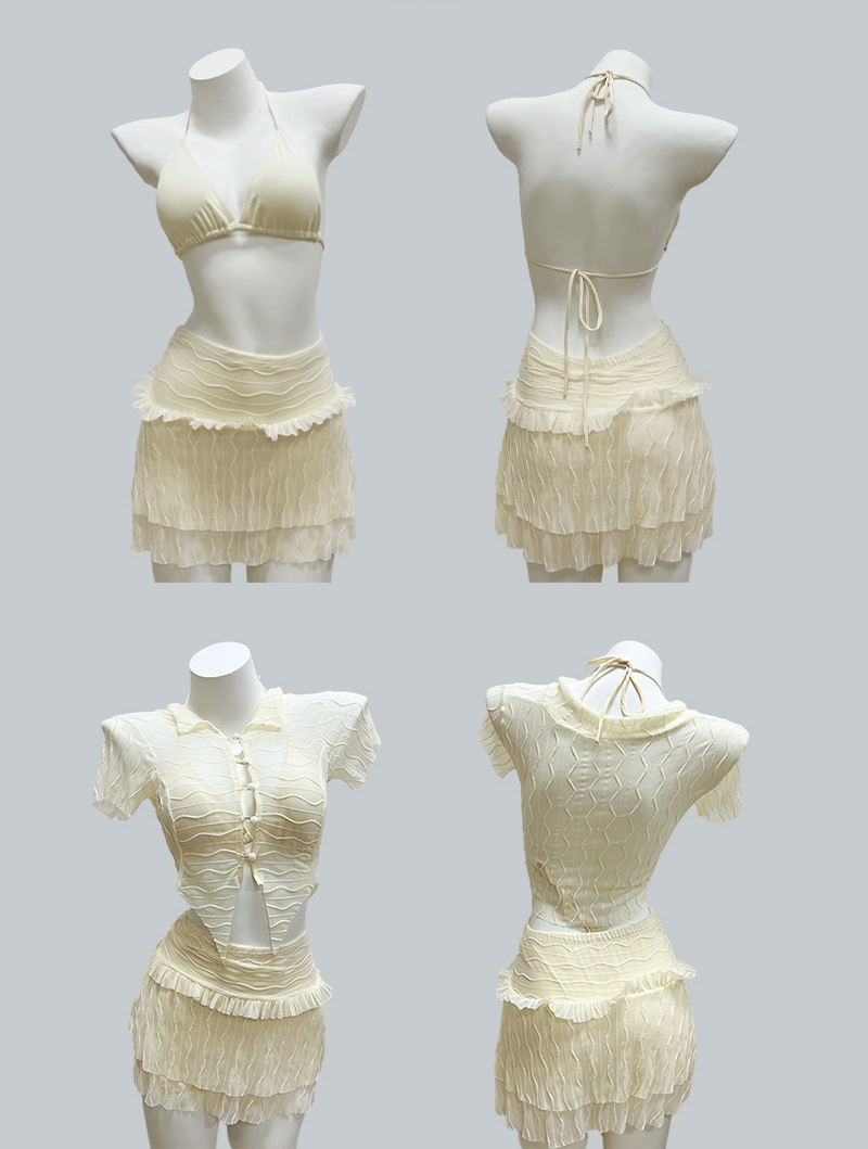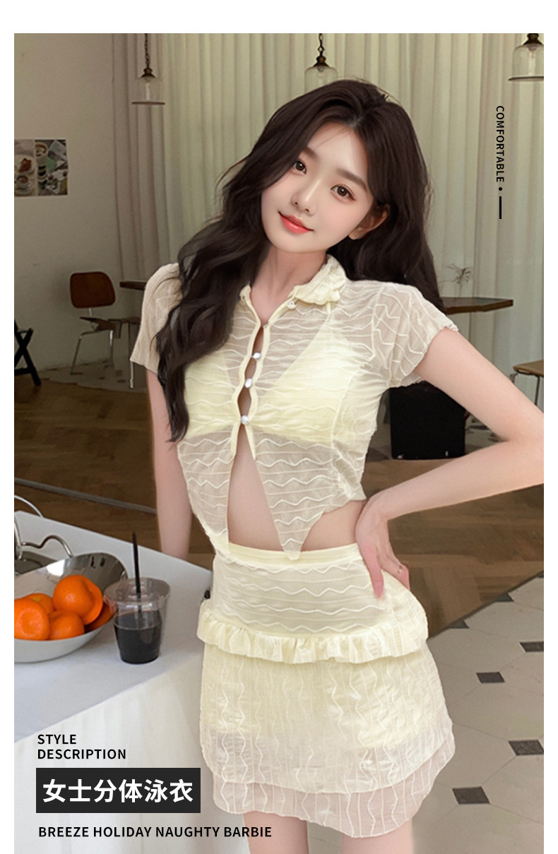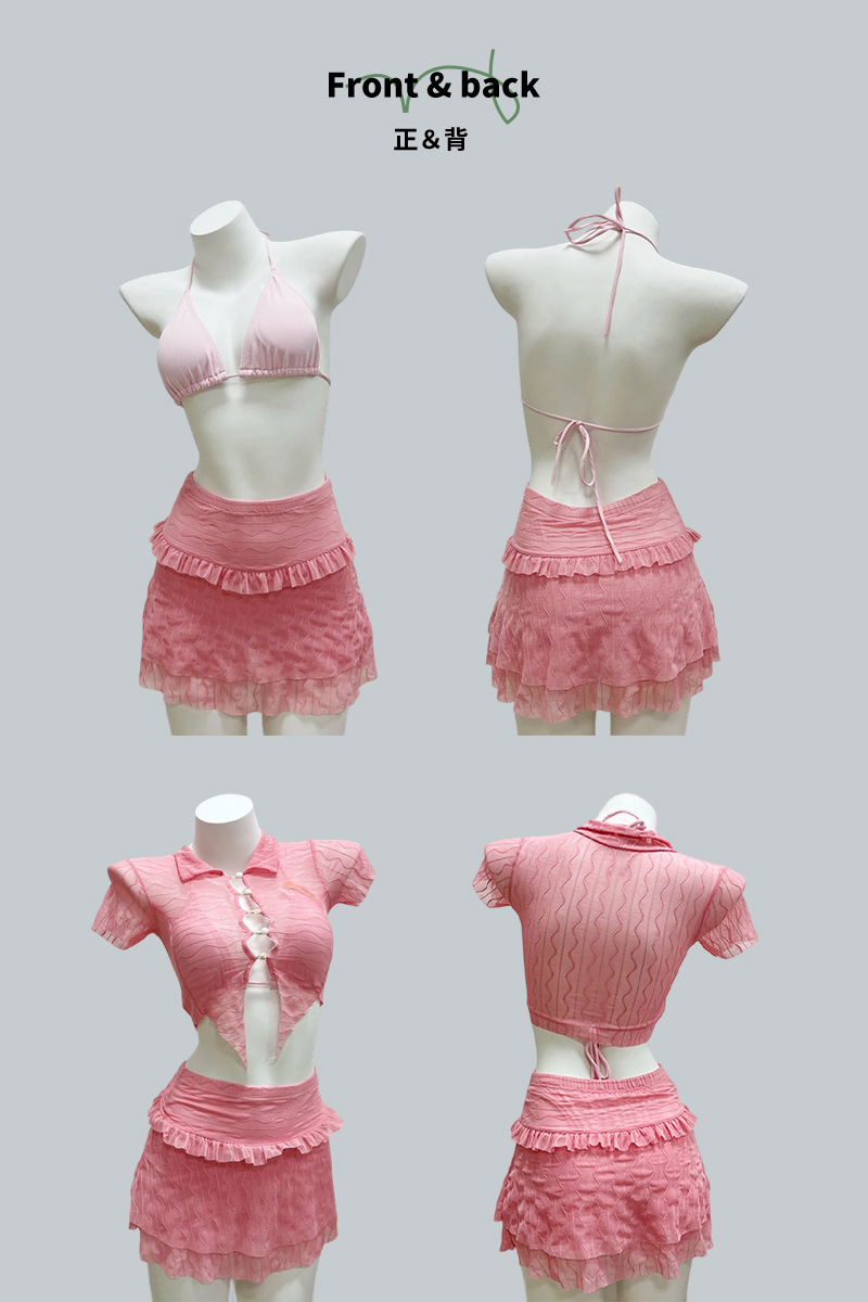Traje de baño de bikini dividido estilo caliente 2025 Las mujeres se ven delgadas y cubren la carne Traje de tres piezas con almohadilla para el pecho Traje de baño sexy puro para mujeres
