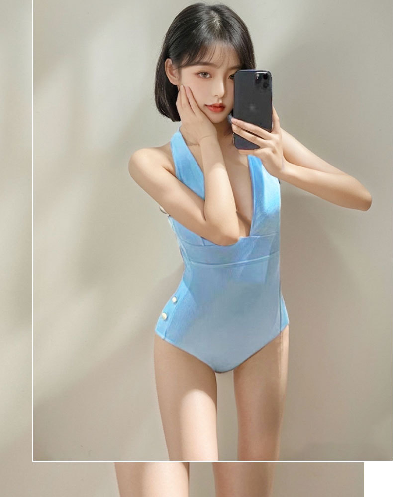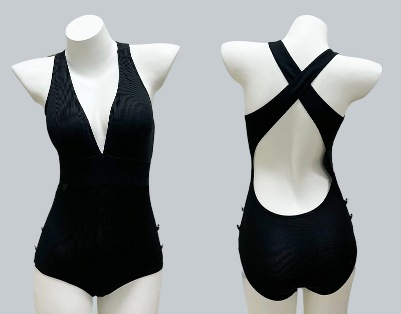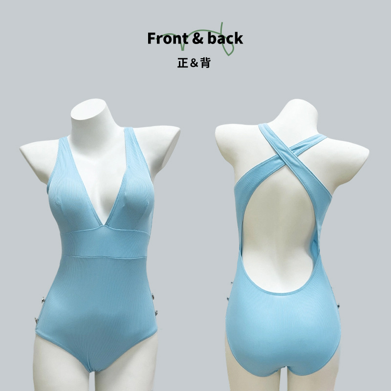 2025 nuevo traje de baño para mujer bikini de color sólido de una pieza sexy chica caliente puro viento de primavera traje de baño de vacaciones para mujer al por mayor