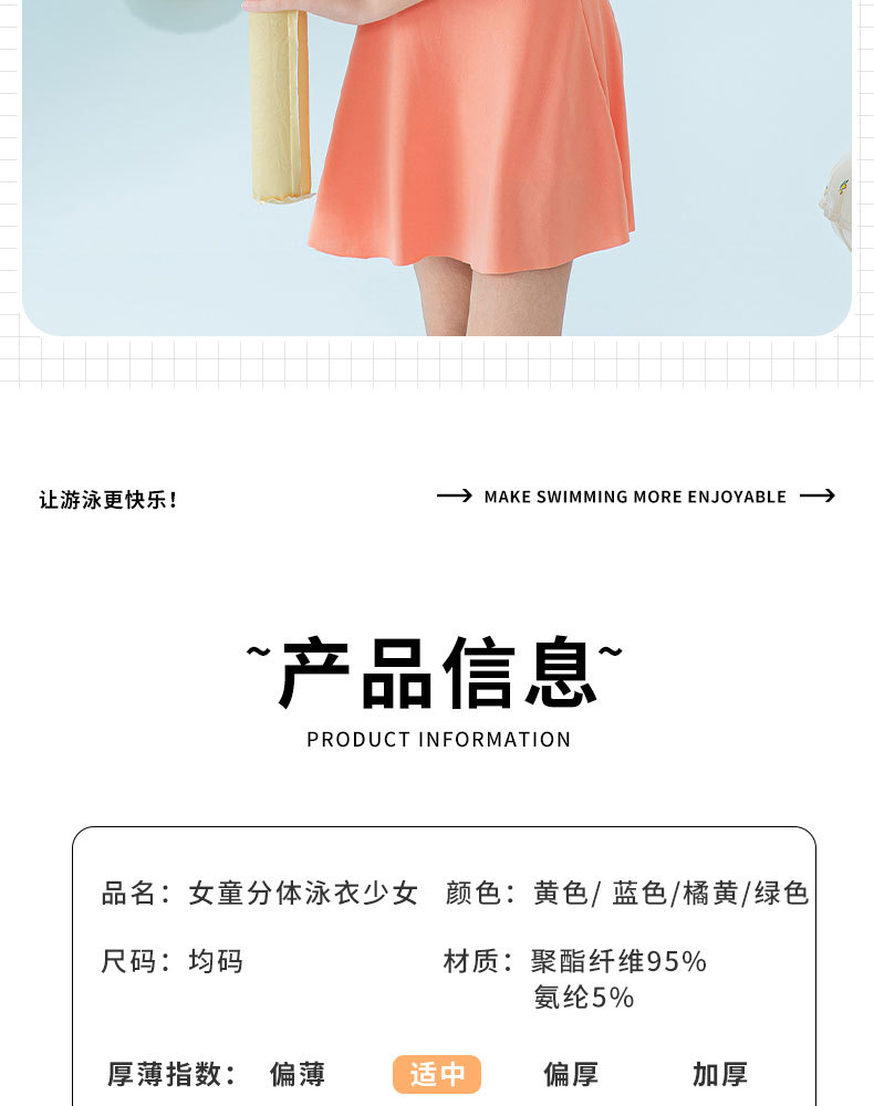 | Colores | Naranja (bañador independiente con almohadilla para el pecho),Azul (bañador independiente con almohadilla en el pecho),Verde (bañador independiente con almohadilla en el pecho),Amarillo (bañador independiente con almohadilla en el pecho) |