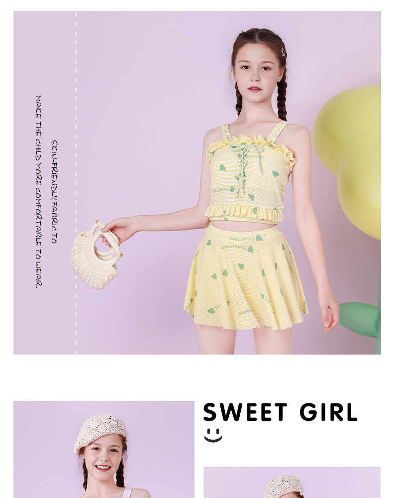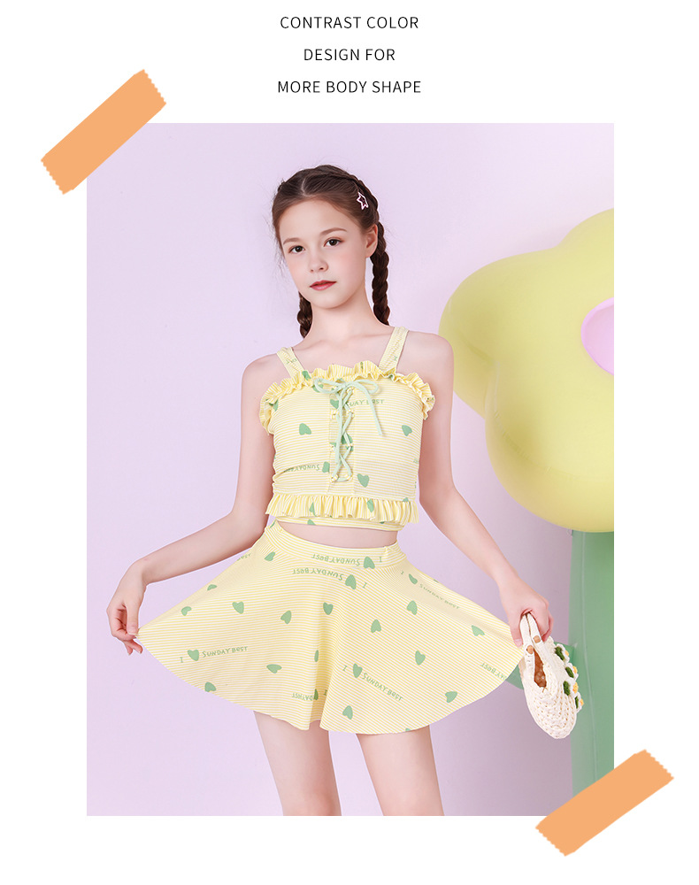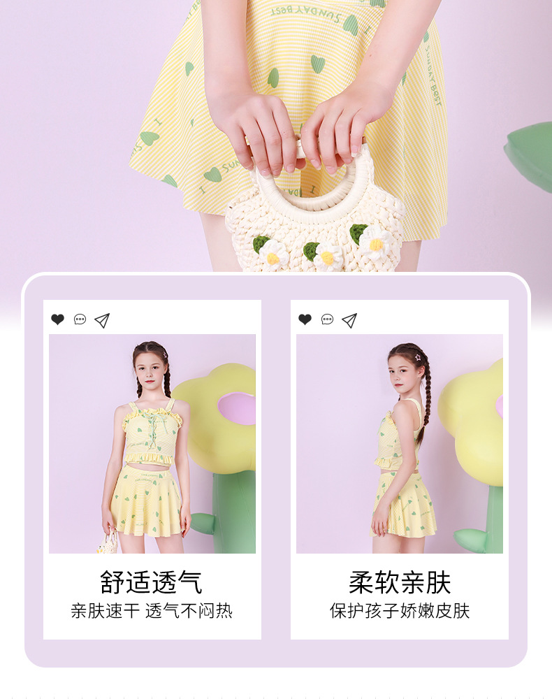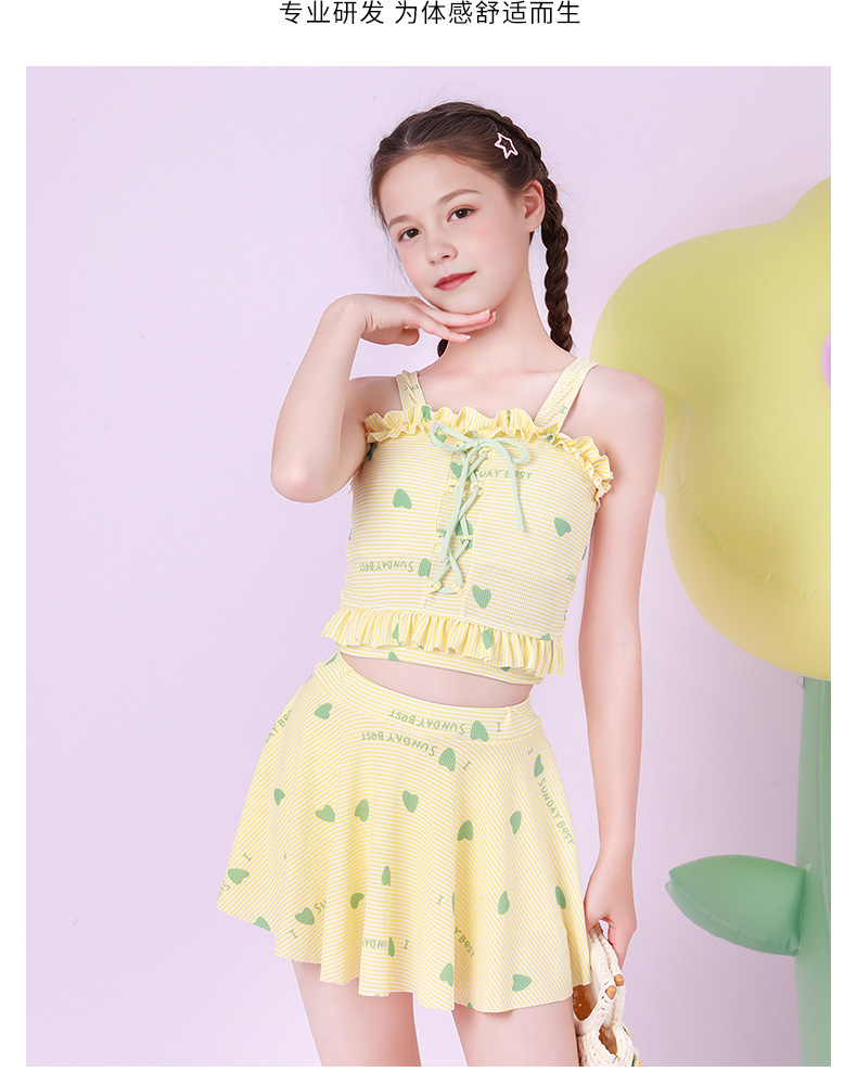 Traje de baño para niños, falda dividida para niñas de moda, entrenamiento de natación para niñas, almohadilla para el pecho, protección solar junto al mar, traje de baño para niños de mediana edad