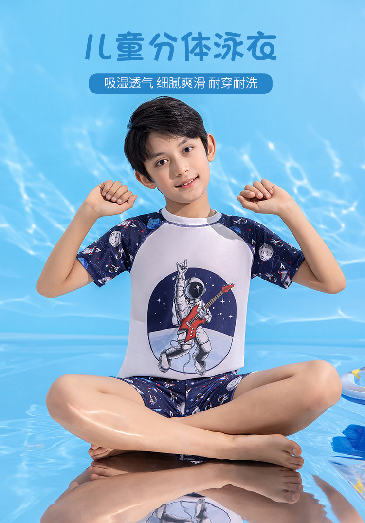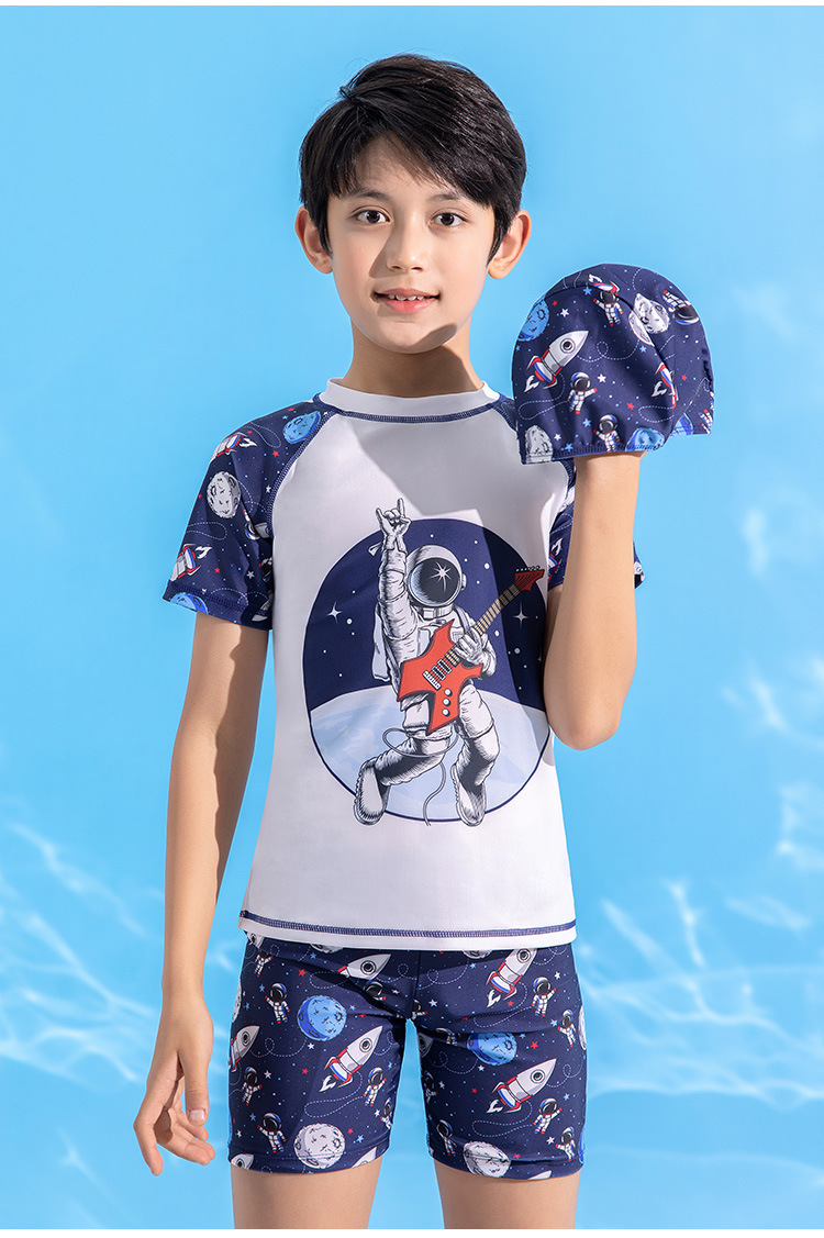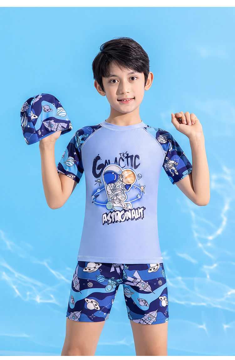 Nuevo traje de baño de verano para niños, conjunto de traje de baño conservador de secado rápido con dibujos animados de anime y gorro de natación adicional