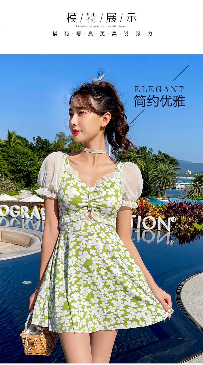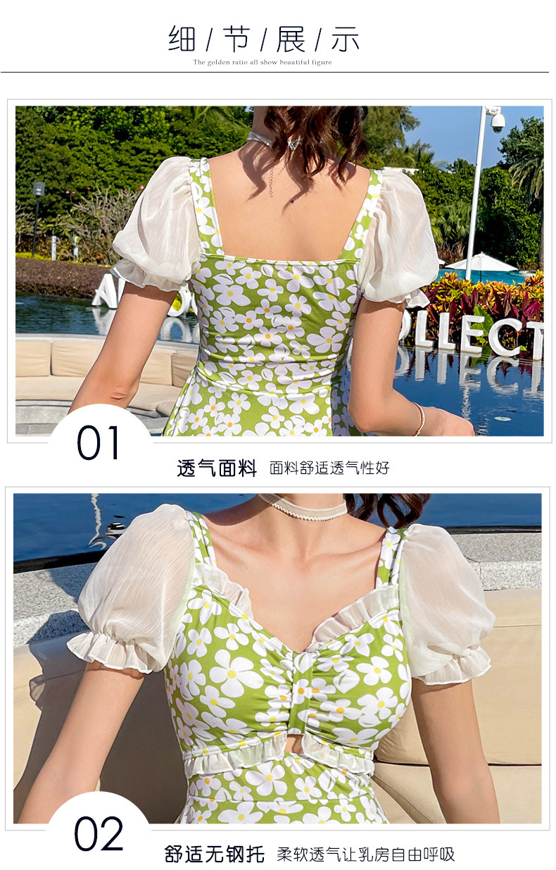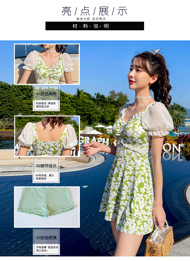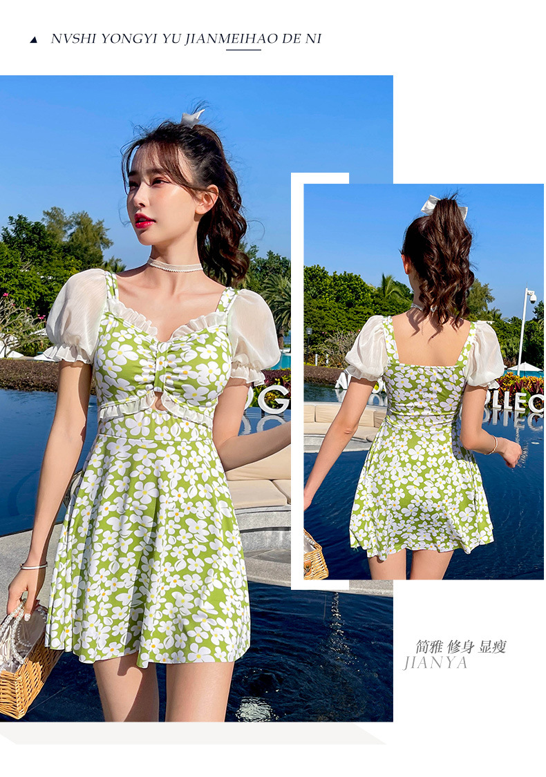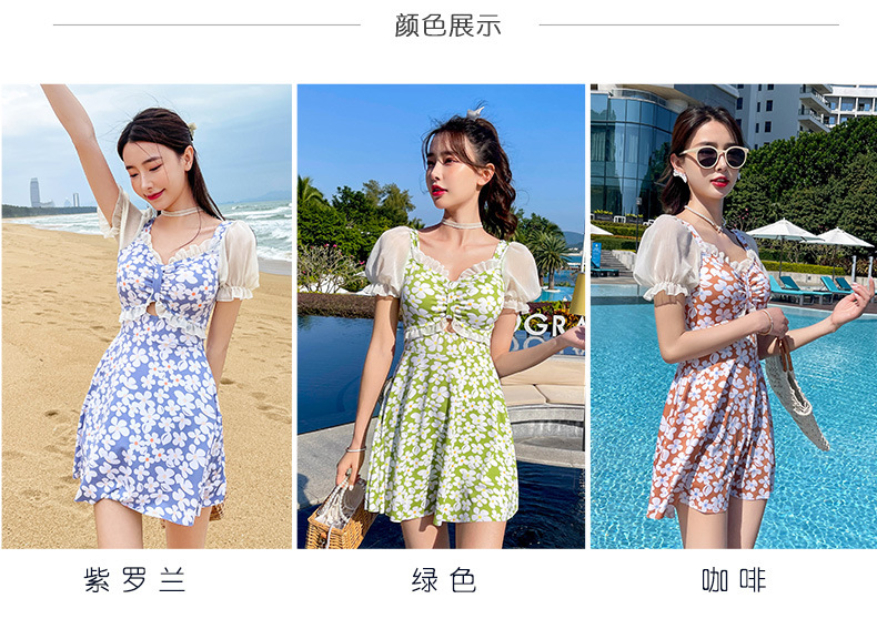 Traje de baño que cubre el vientre de las mujeres que adelgaza nuevo pequeño pecho push-up vestido de una pieza traje de baño de cintura alta de niña traje de baño de moda floral
