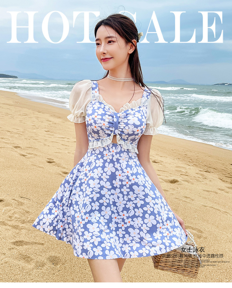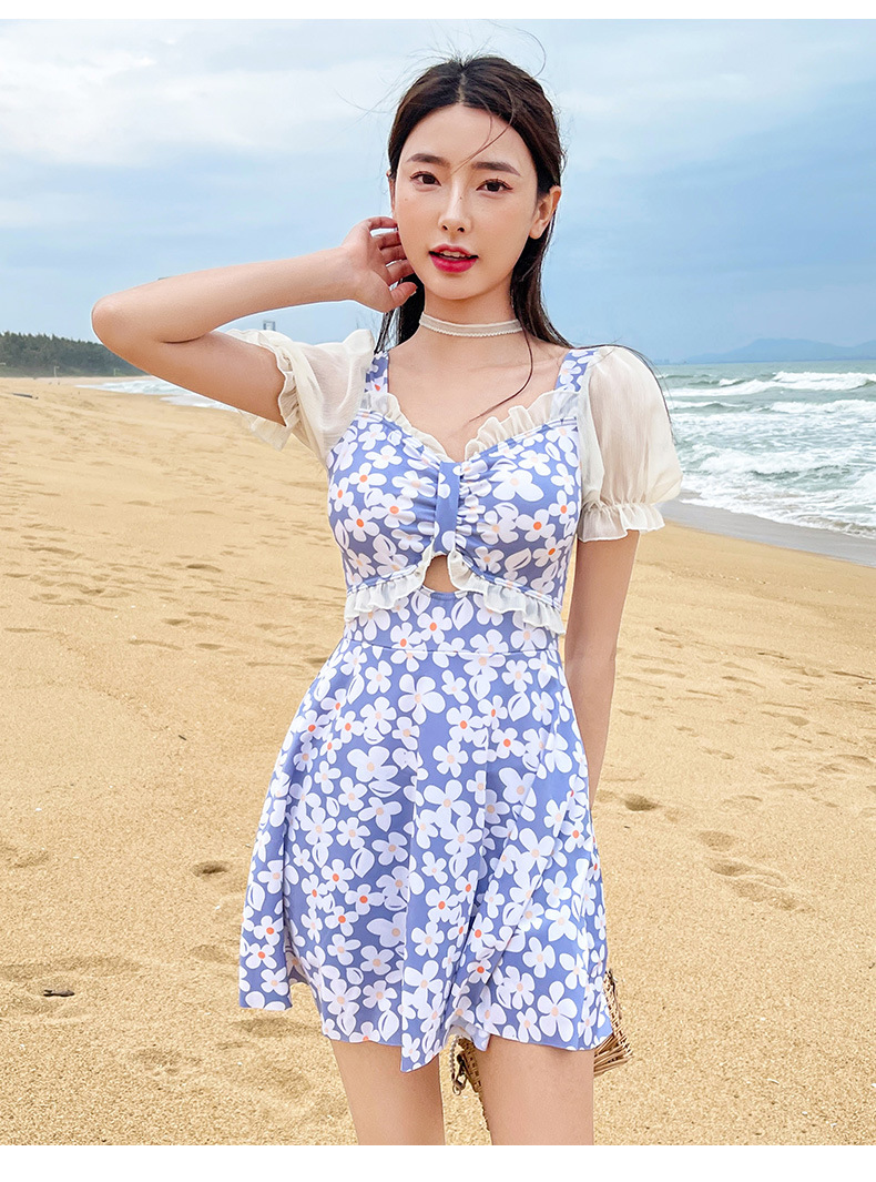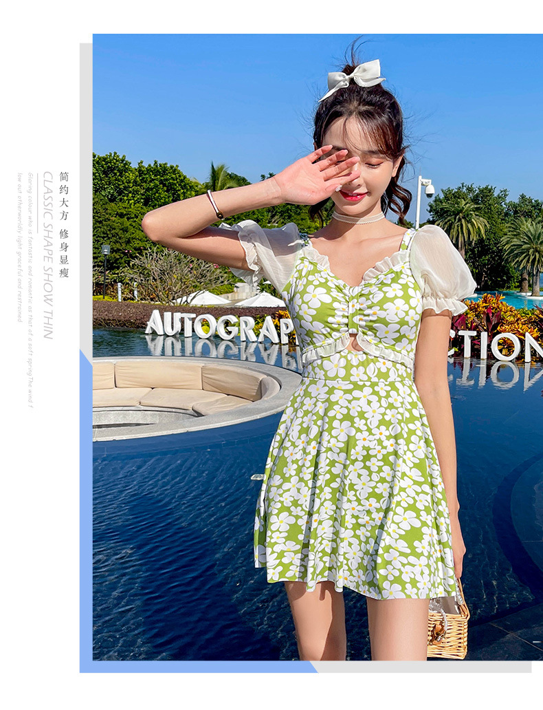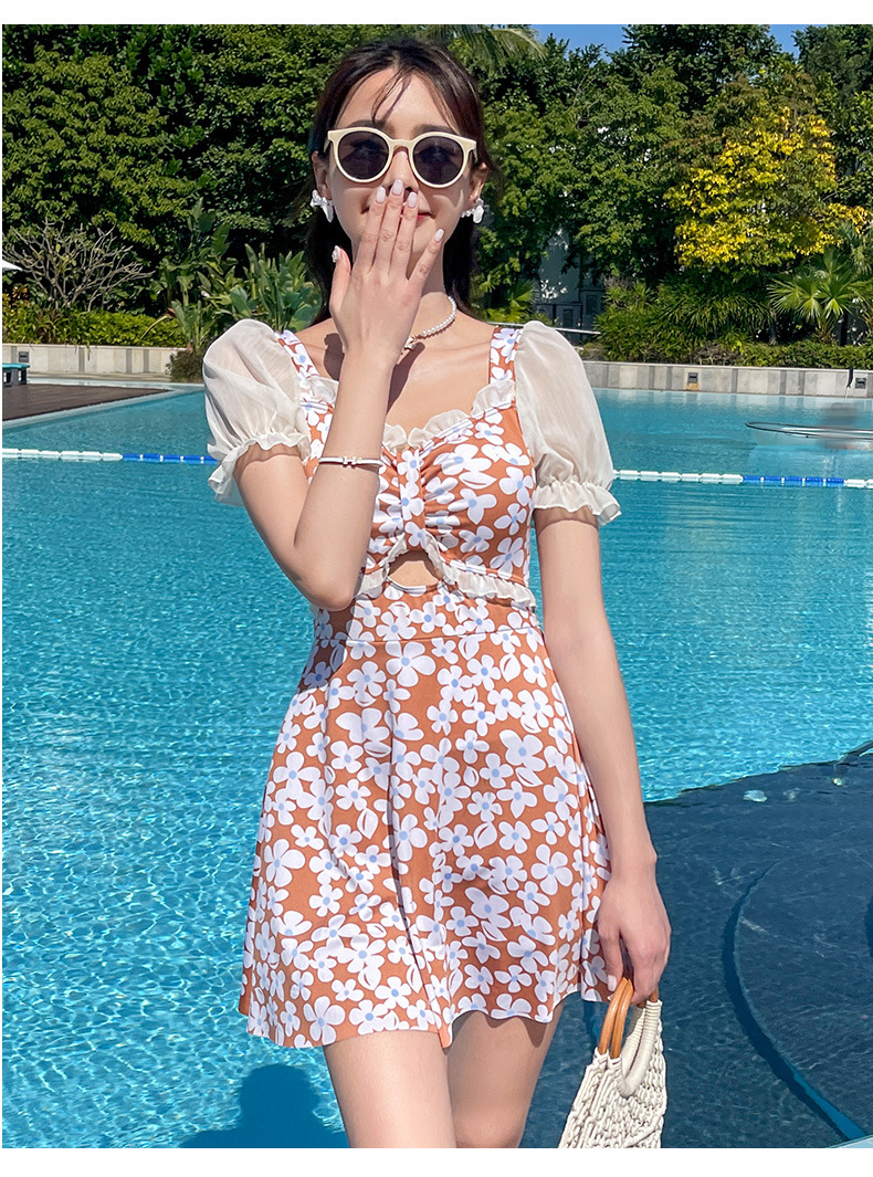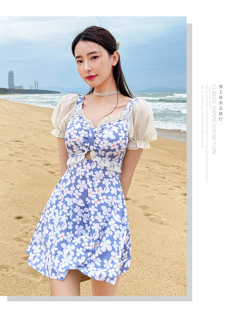 Traje de baño que cubre el vientre de las mujeres que adelgaza nuevo pequeño pecho push-up vestido de una pieza traje de baño de cintura alta de niña traje de baño de moda floral
