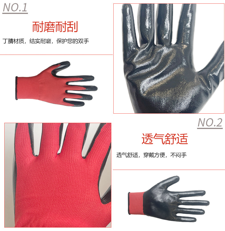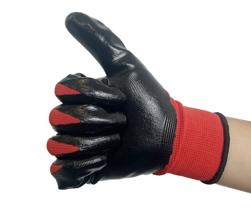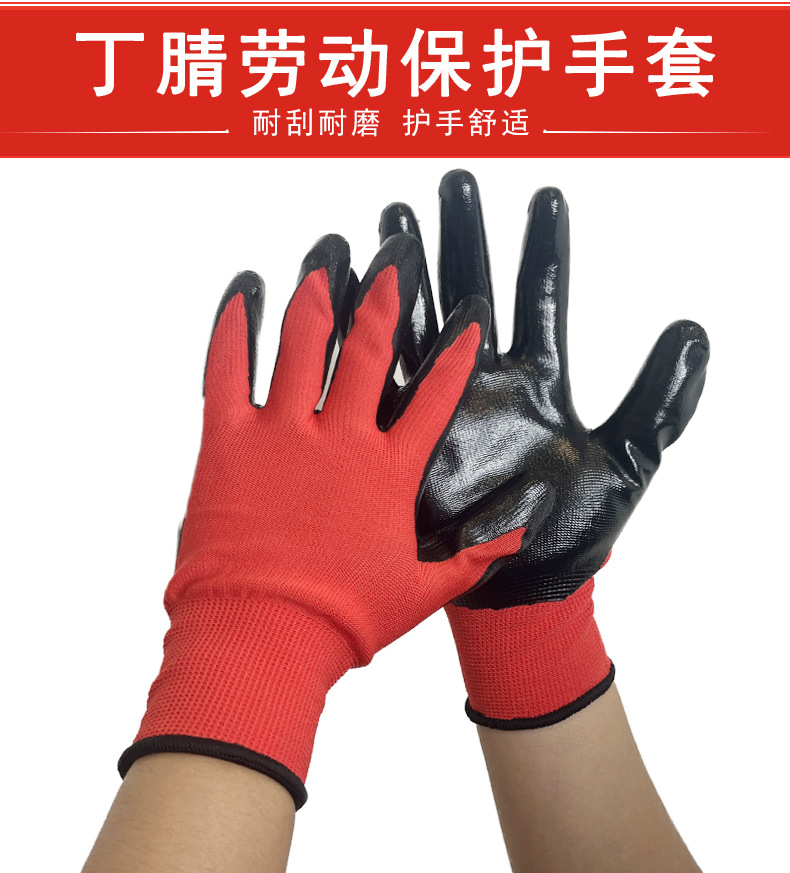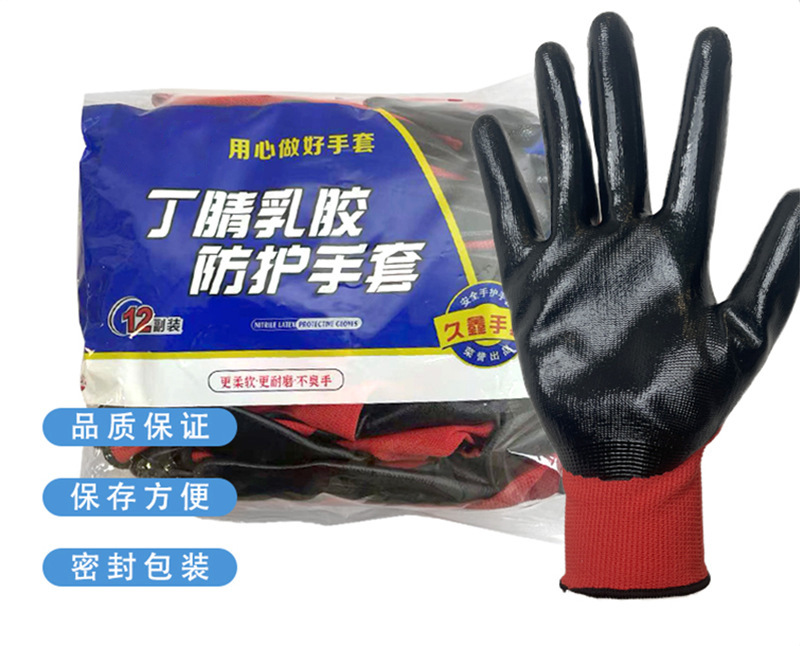Guantes de protección laboral al por mayor Guantes de nitrilo de poliéster de 13 pines engrosados antideslizantes guantes colgantes de goma sumergida guantes protectores