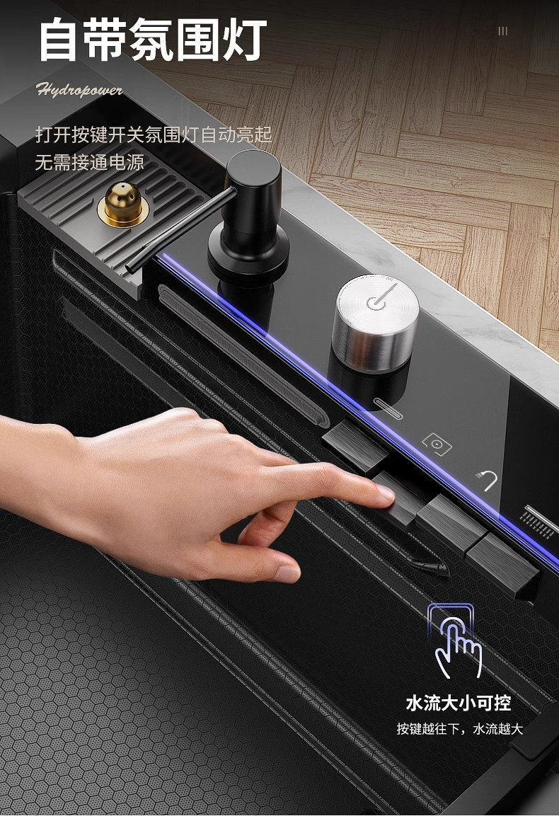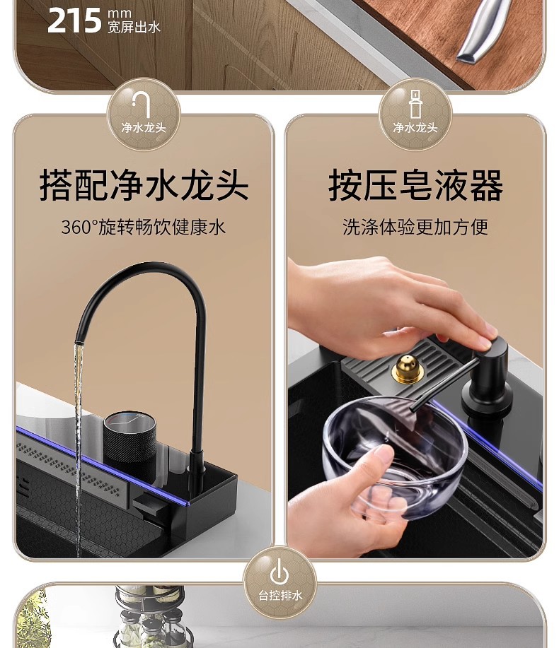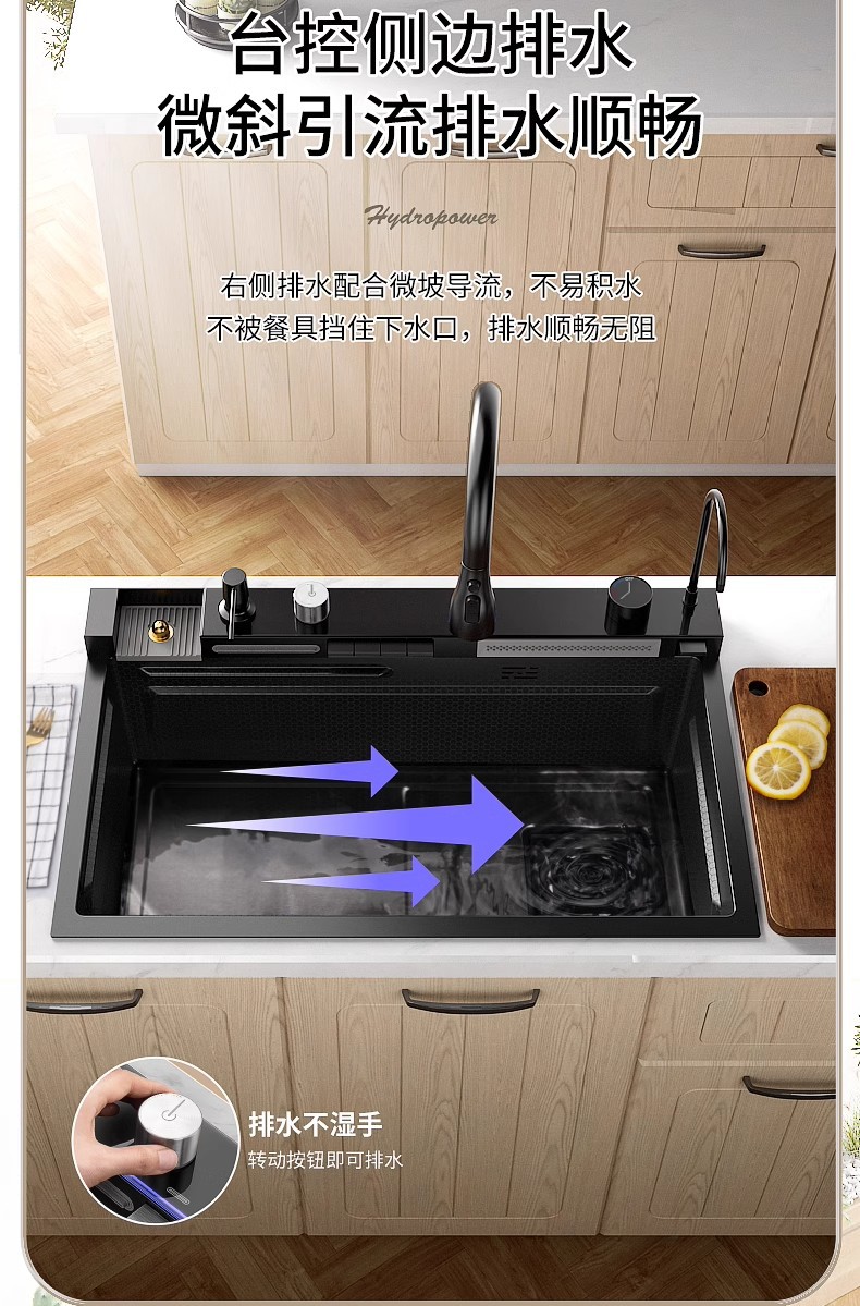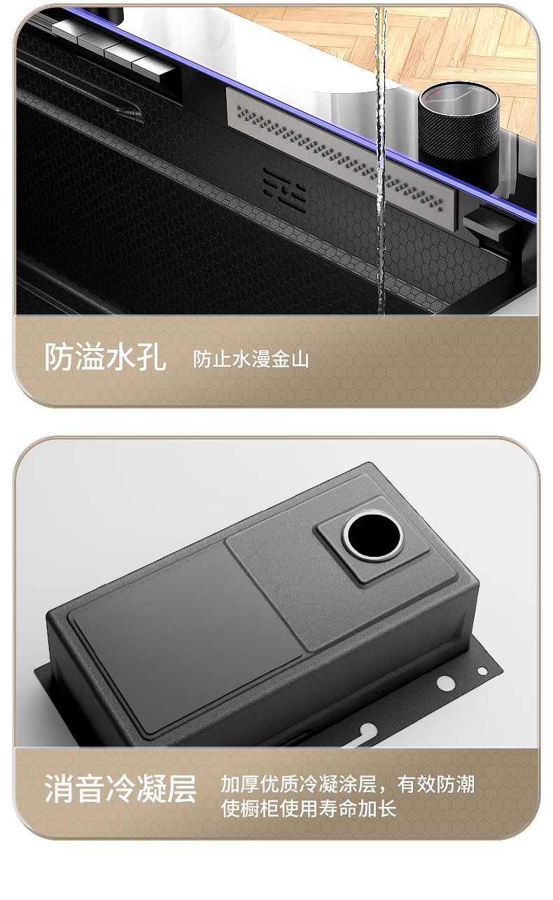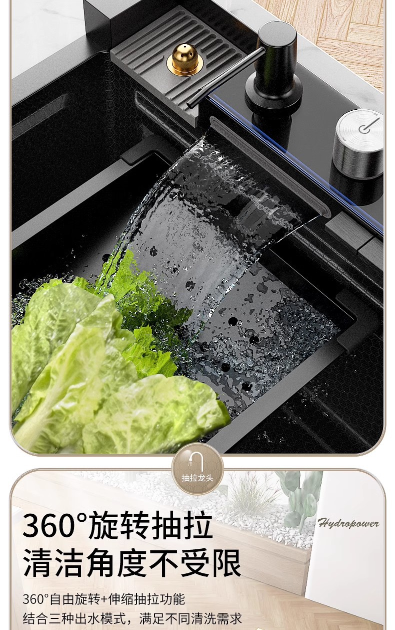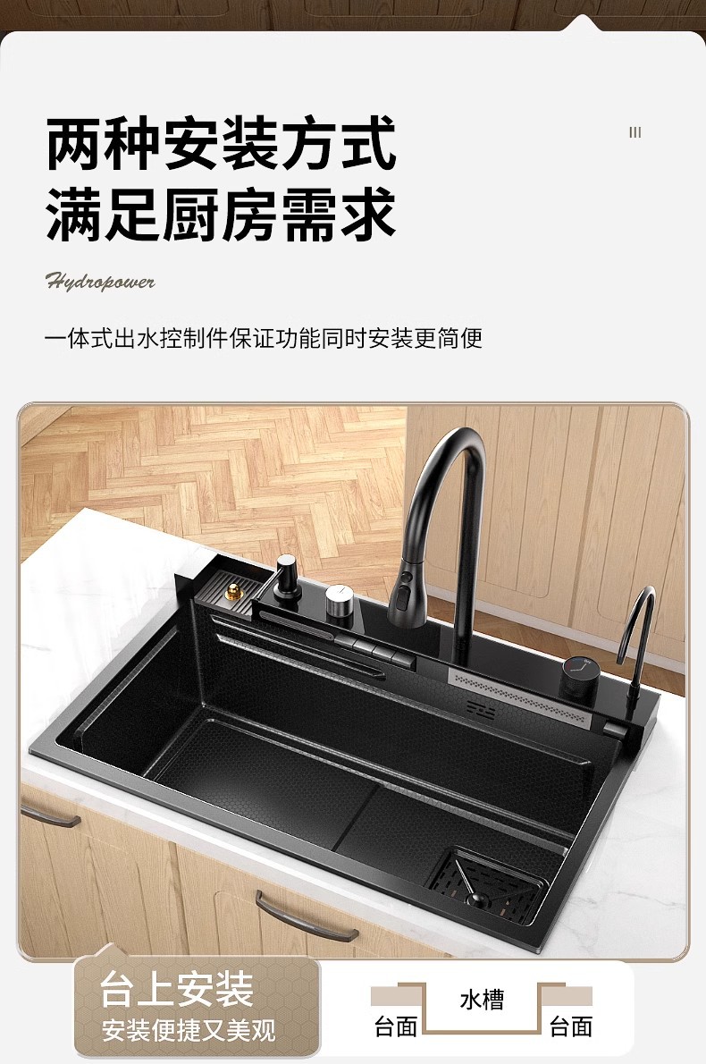 Fregadero de cascada de lluvia de acero inoxidable 304 fregadero de cocina multifuncional pantalla digital para el hogar nido de abeja en relieve gran ranura única