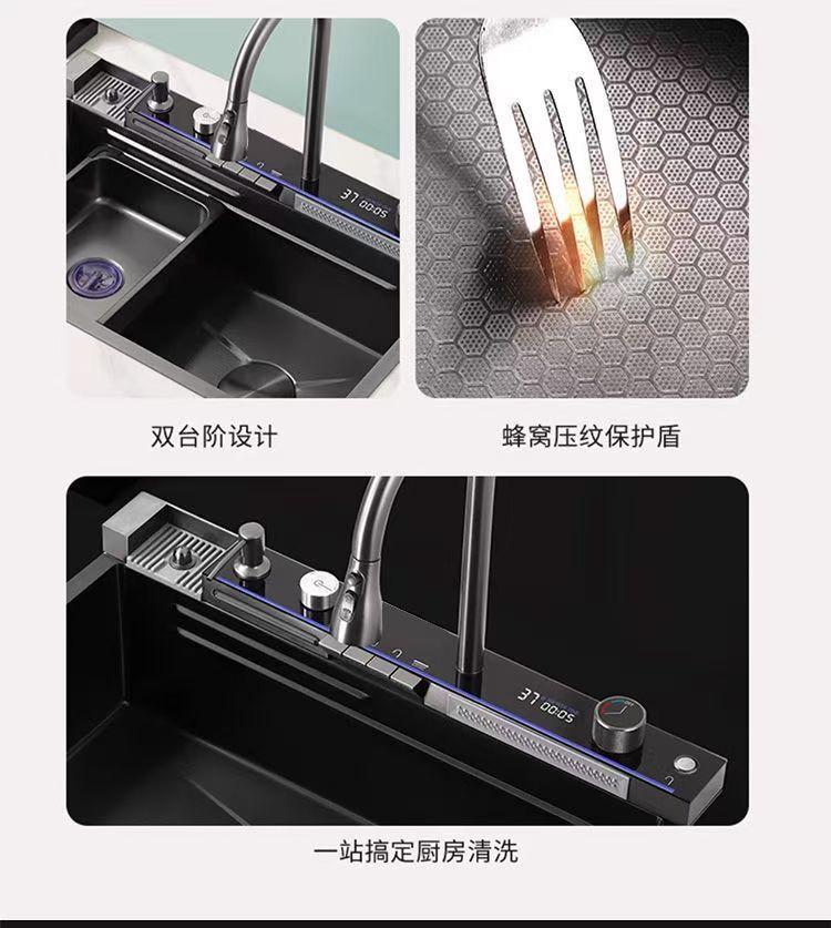 Fregadero de panal de cocina de ballena súper grueso 304 pantalla digital de un solo tanque de acero inoxidable nano elemento predeterminado de grado alimenticio doméstico