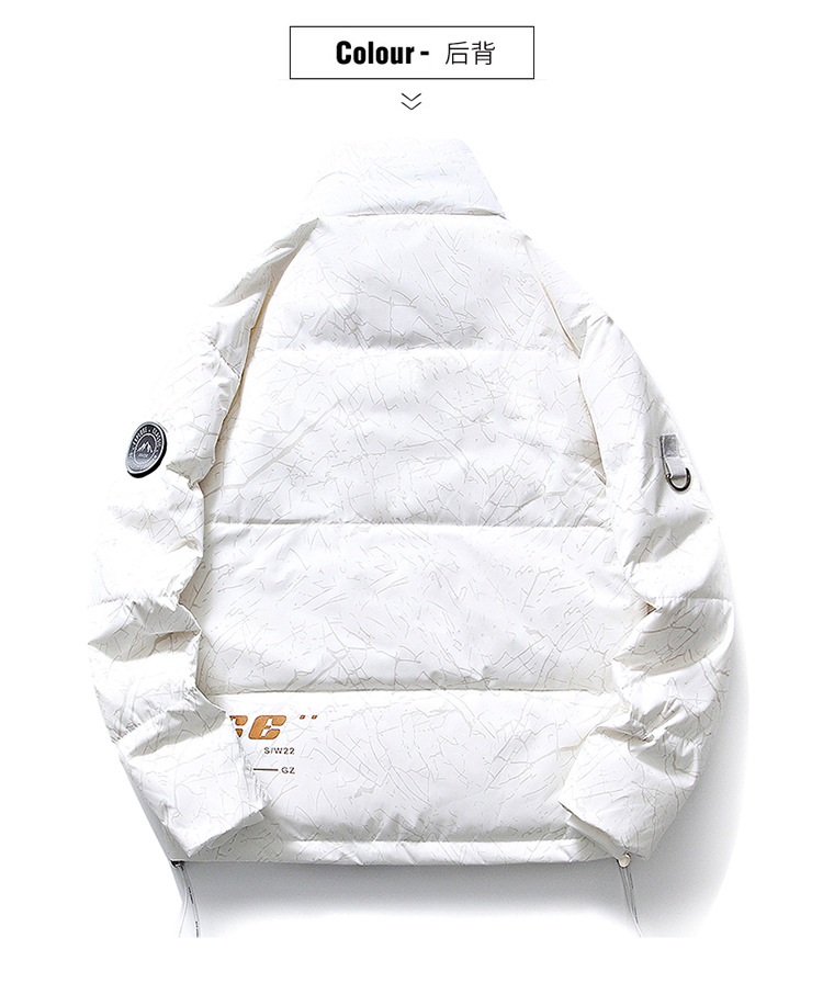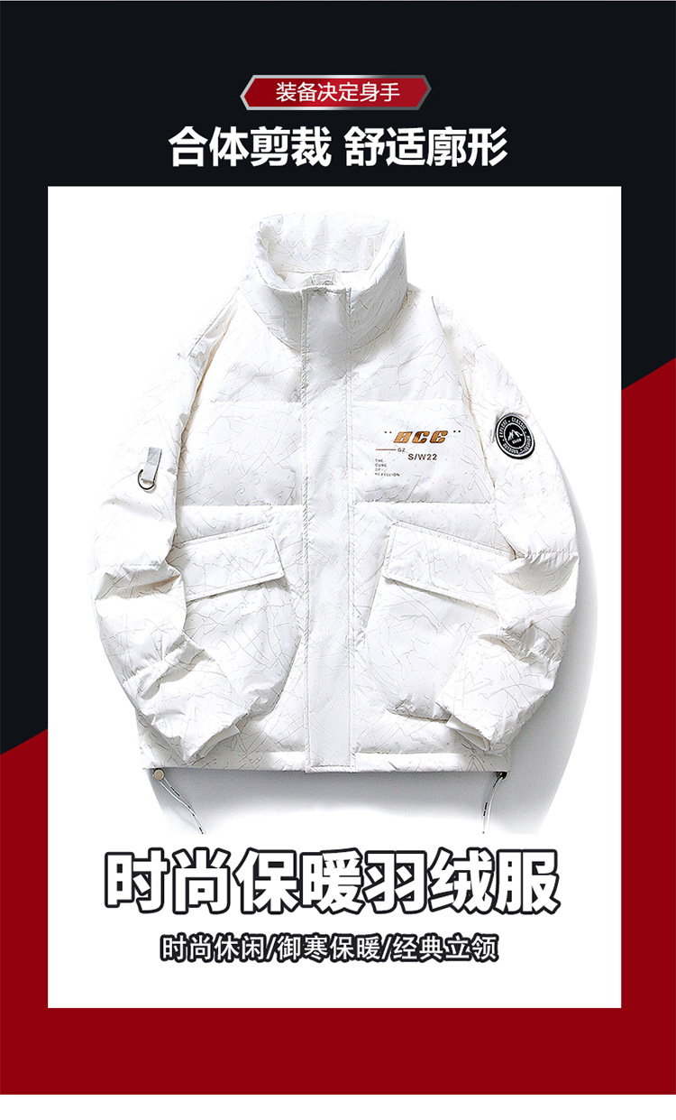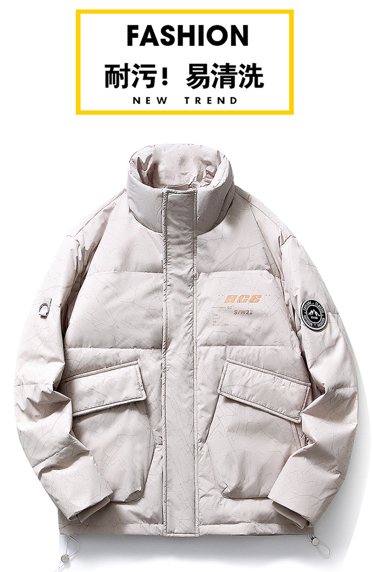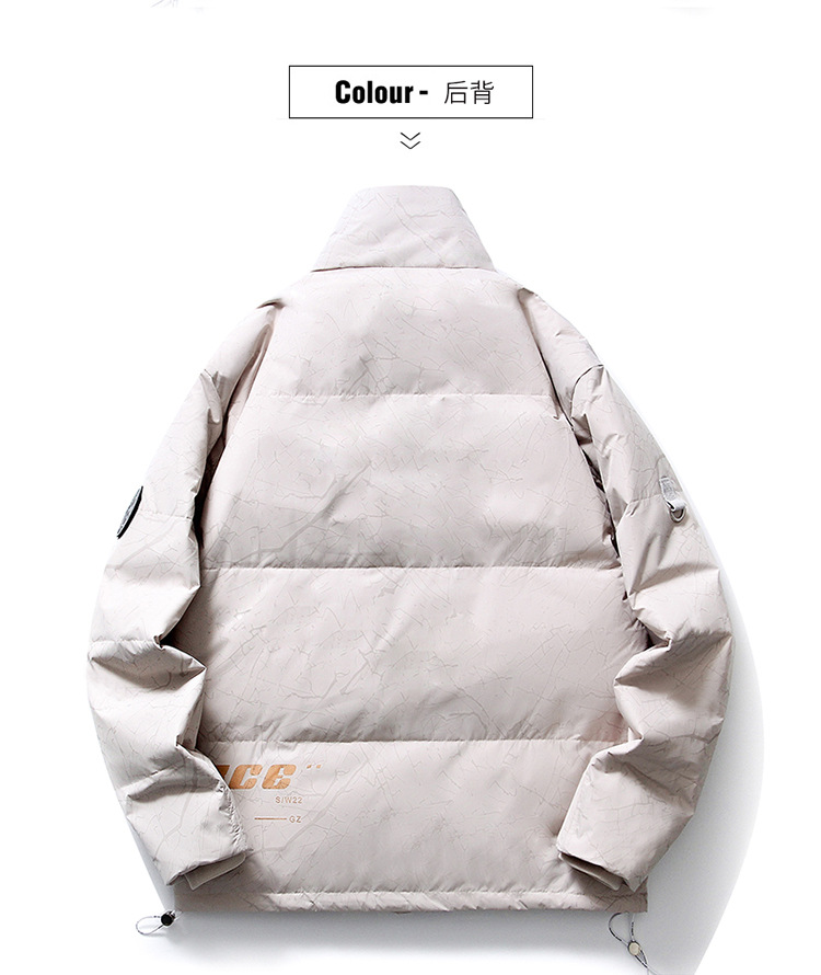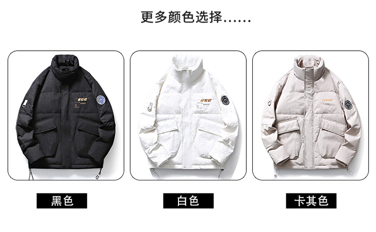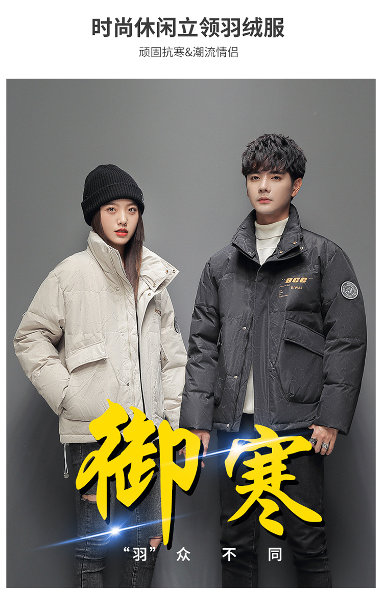 Chaqueta de plumón de cuello vertical de línea rica para hombres de invierno nueva pareja de ropa de pareja para estudiantes gruesa calentamiento 90 chaqueta de chaqueta de arroz blanco de moda