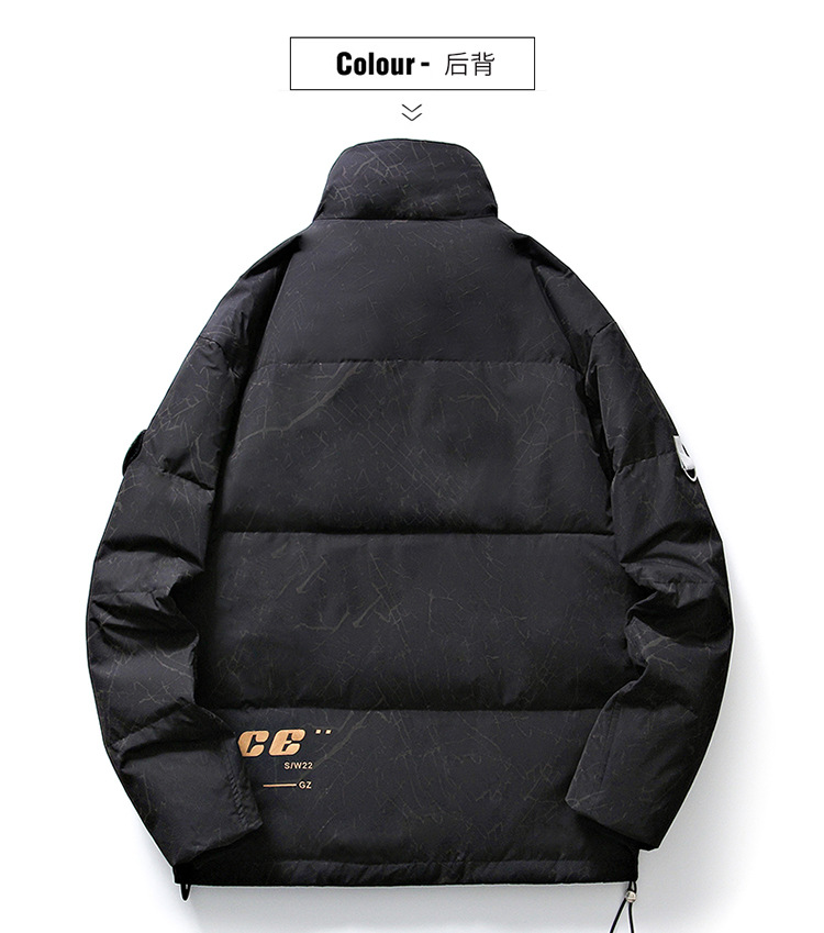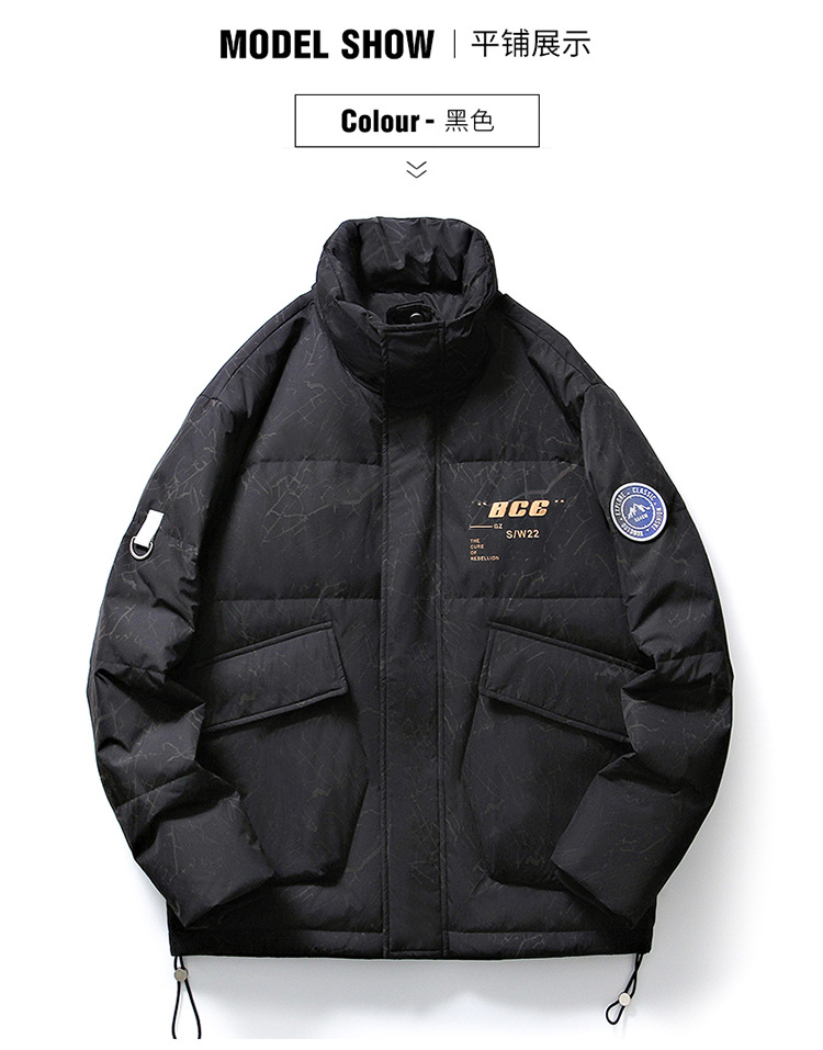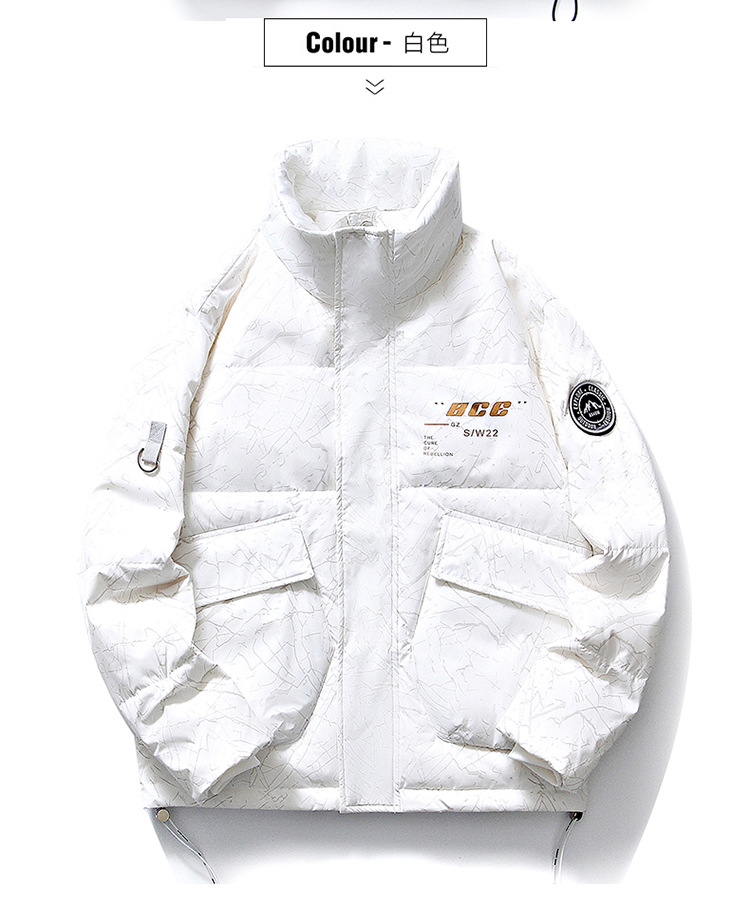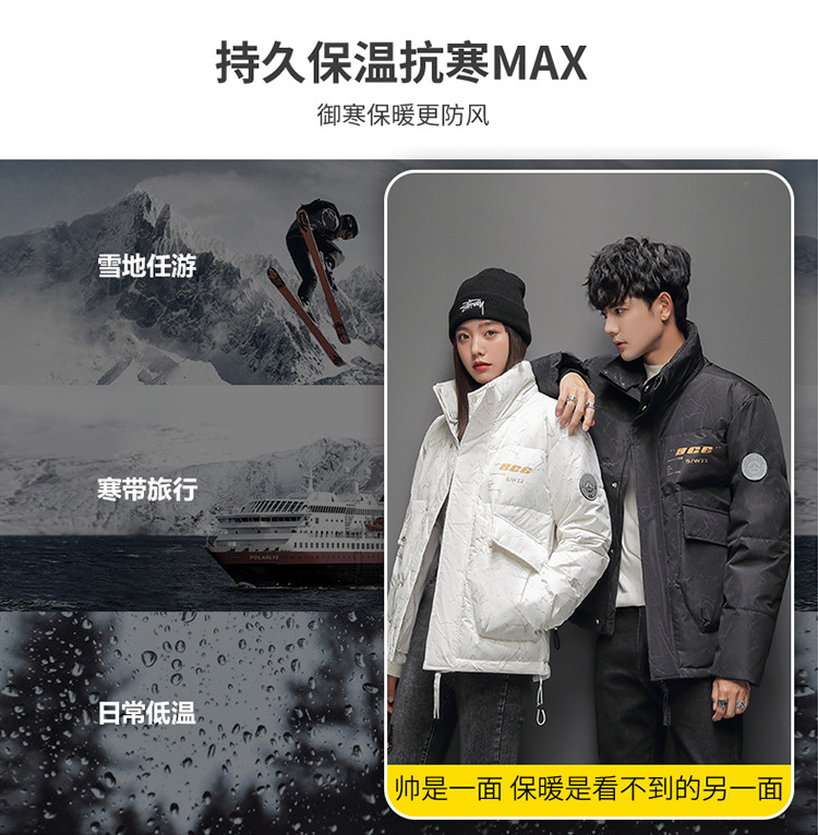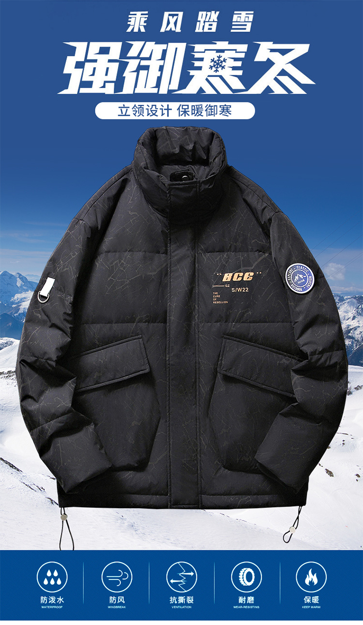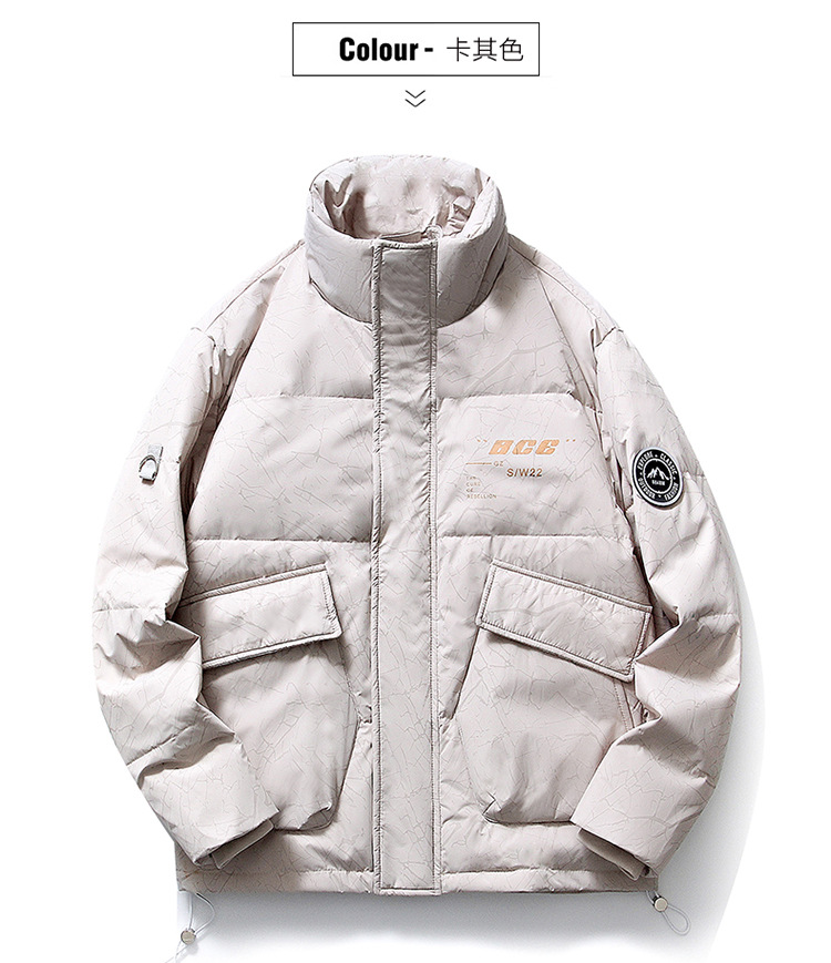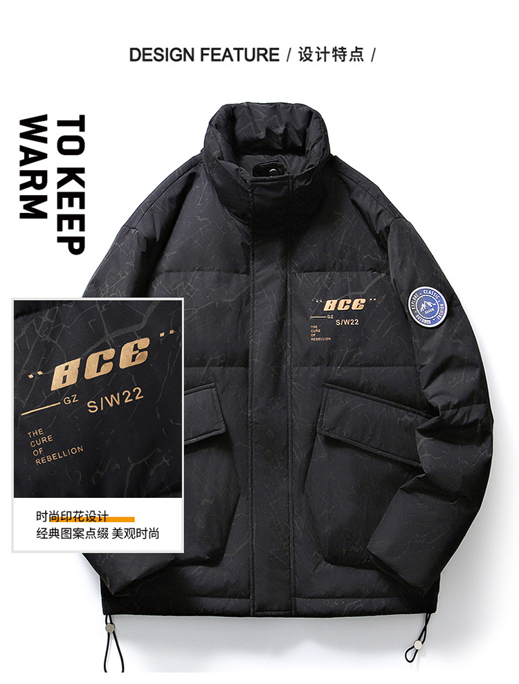 Chaqueta de plumón de cuello vertical de línea rica para hombres de invierno nueva pareja de ropa de pareja para estudiantes gruesa calentamiento 90 chaqueta de chaqueta de arroz blanco de moda