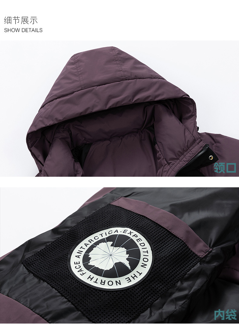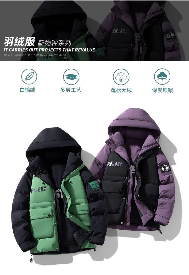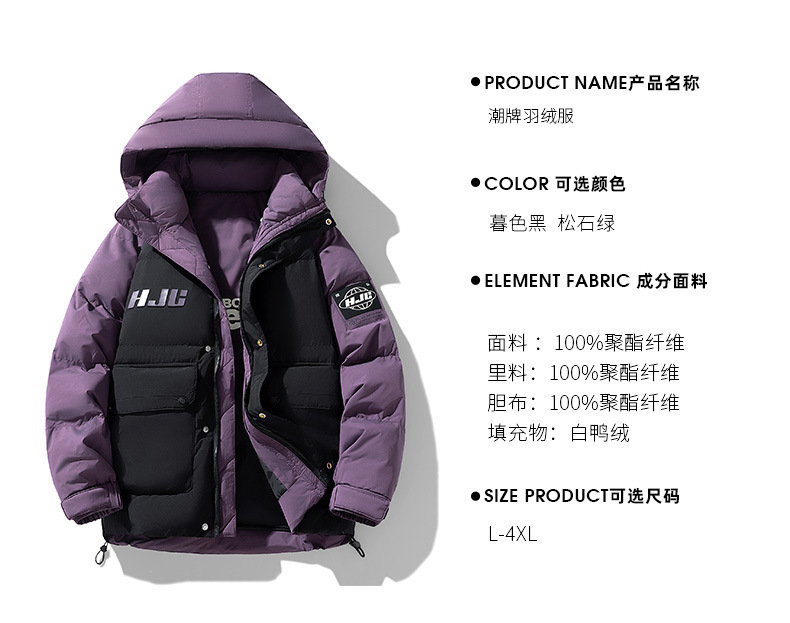 Chaqueta de plumón con capuchón de la NASA para hombres de invierno juveniles de moda de chaqueta blanca para protegerse del frío y grueso chaqueta cálida casual