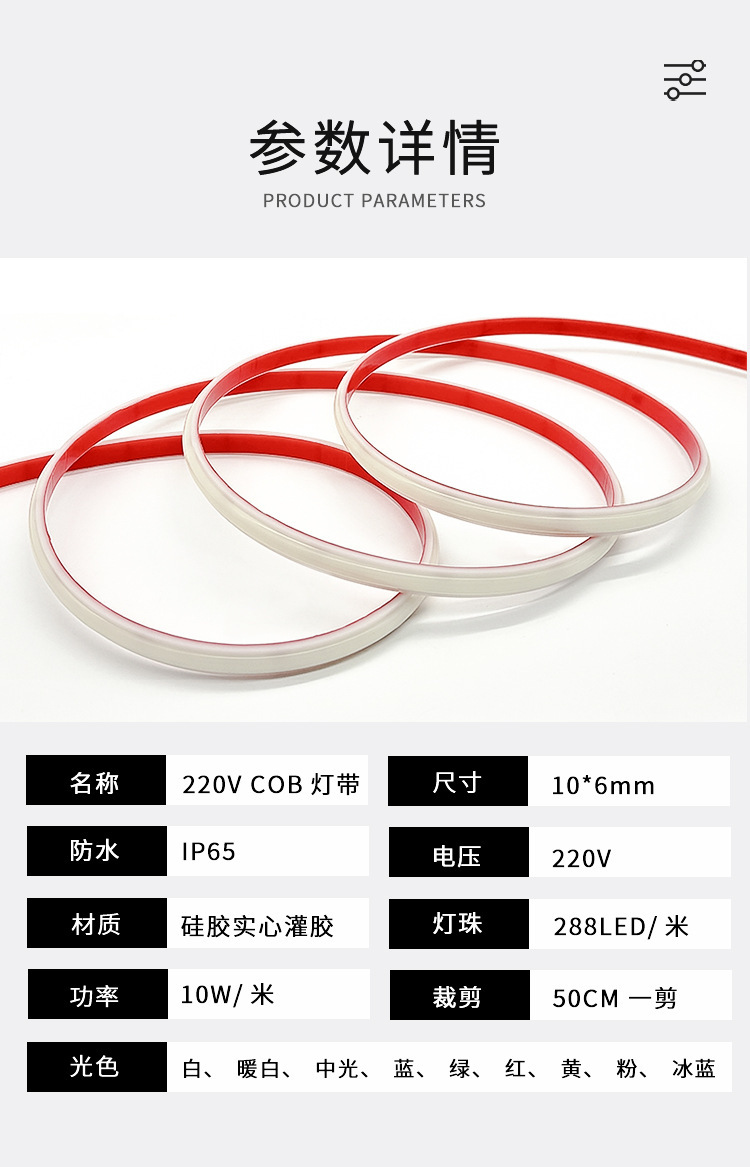 Cinta de lámpara COB autoadhesiva de silicona de 220V [precio de un metro]