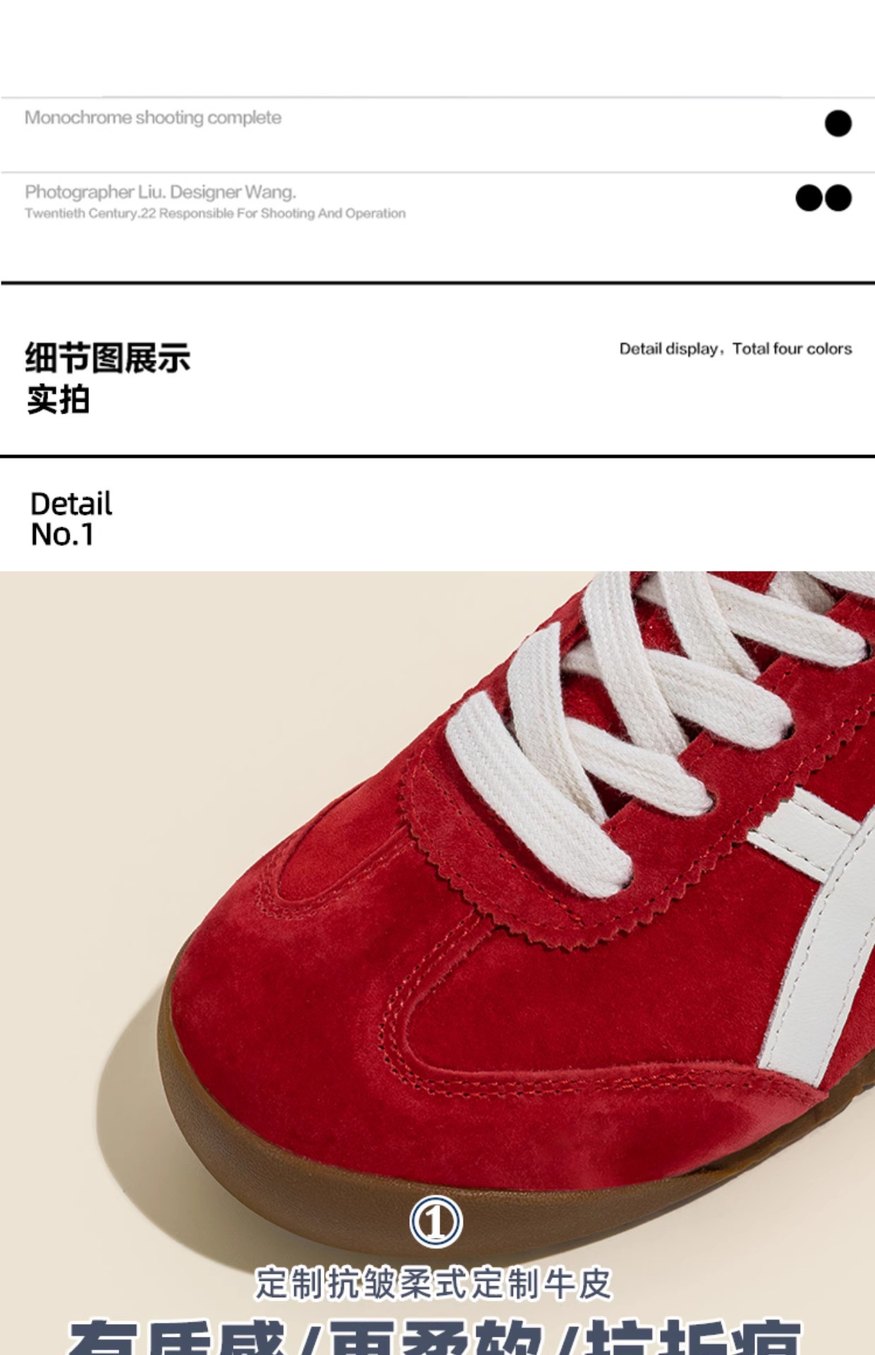 Versión de cuero real retro rojo interior de alta calidad zapatos de entrenamiento para mujeres 2025 nuevo zapato deportivo plano de primavera Agam casual