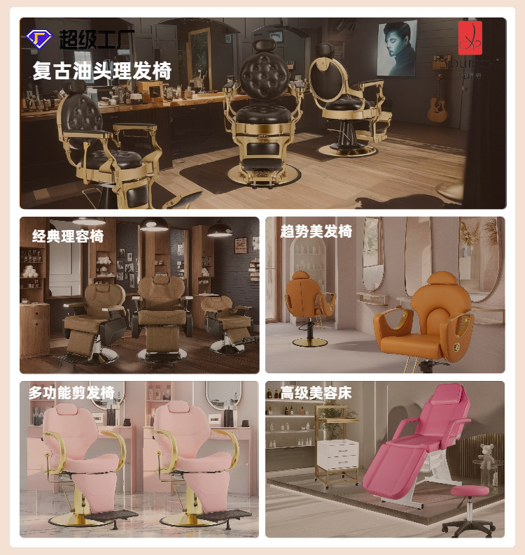 Silla de peluquero dorada de comercio exterior, silla de barbería de acero inoxidable, cómoda silla de peluquería, silla giratoria de aseo, nuevo producto, silla de peluquería