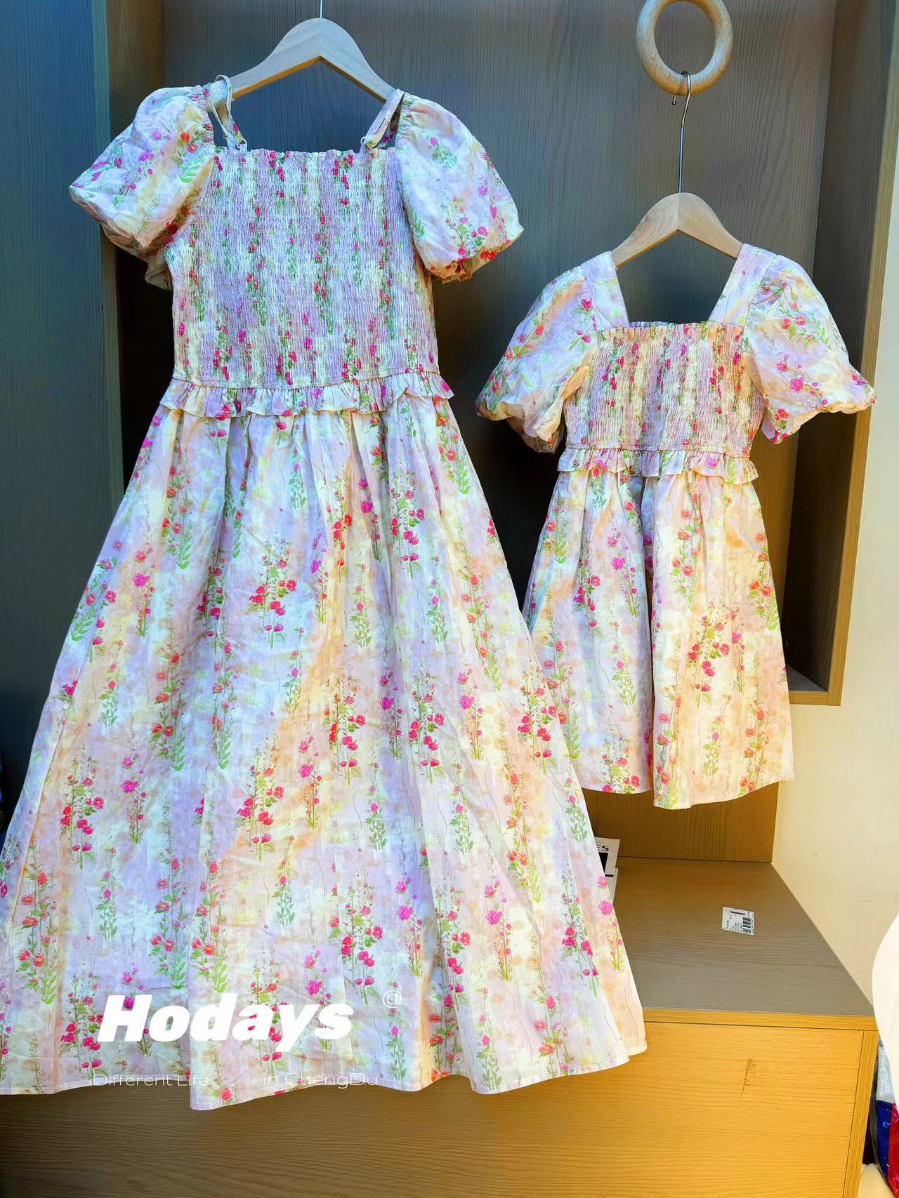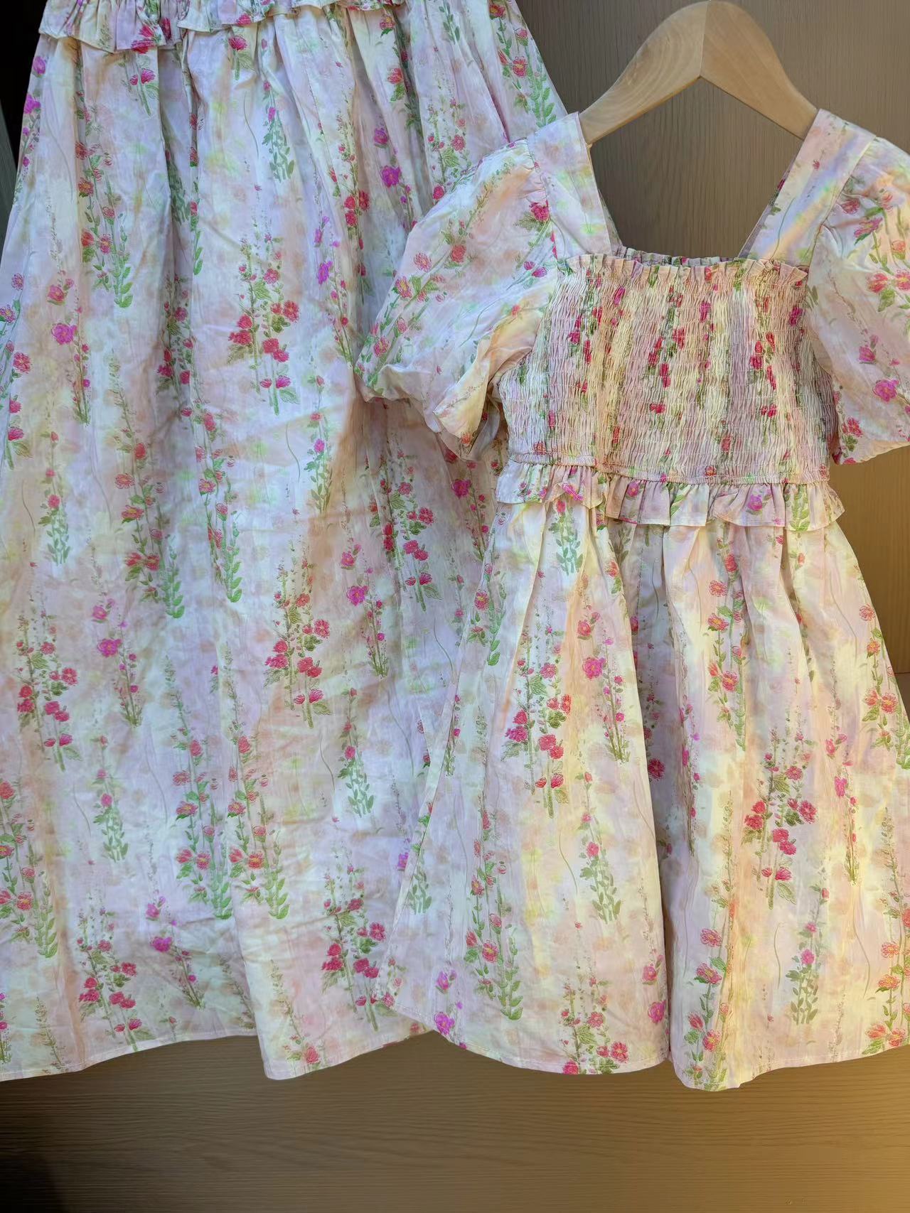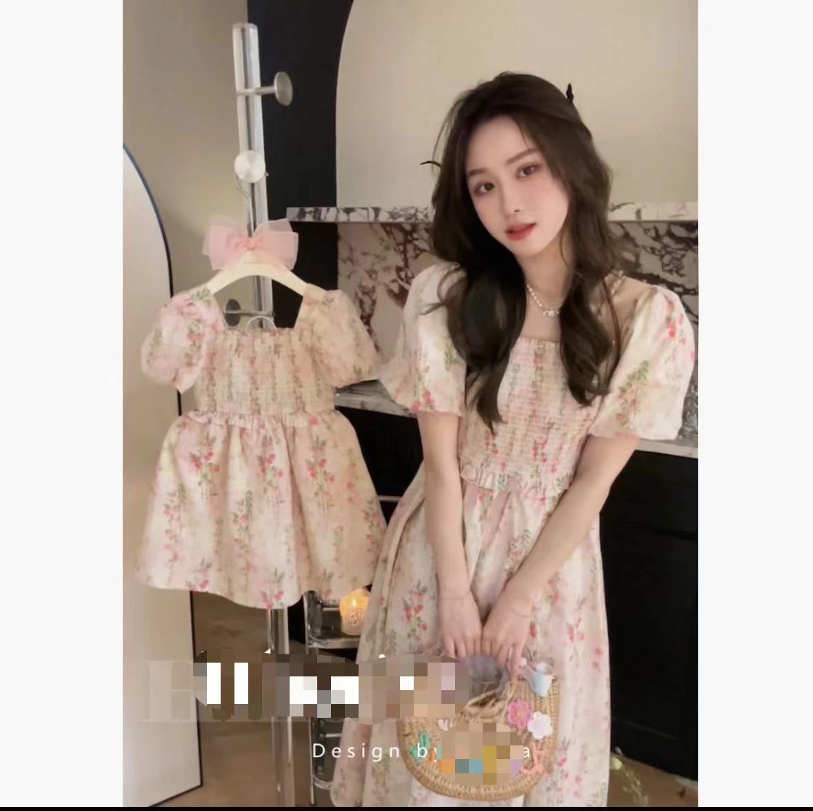 Ropa de verano para padres y niños de Corea del Sur, vestido dulce y lindo, ropa infantil, ropa de madre y niña, falda de manga de burbuja