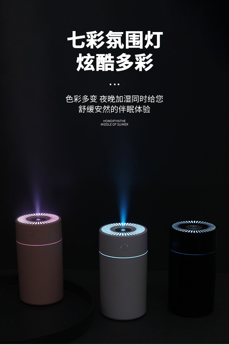 Nuevo humidificador de luz colorida para uso doméstico, atomizador portátil pequeño USB, luz ambiental para dormitorio con montaje en el coche, mini.