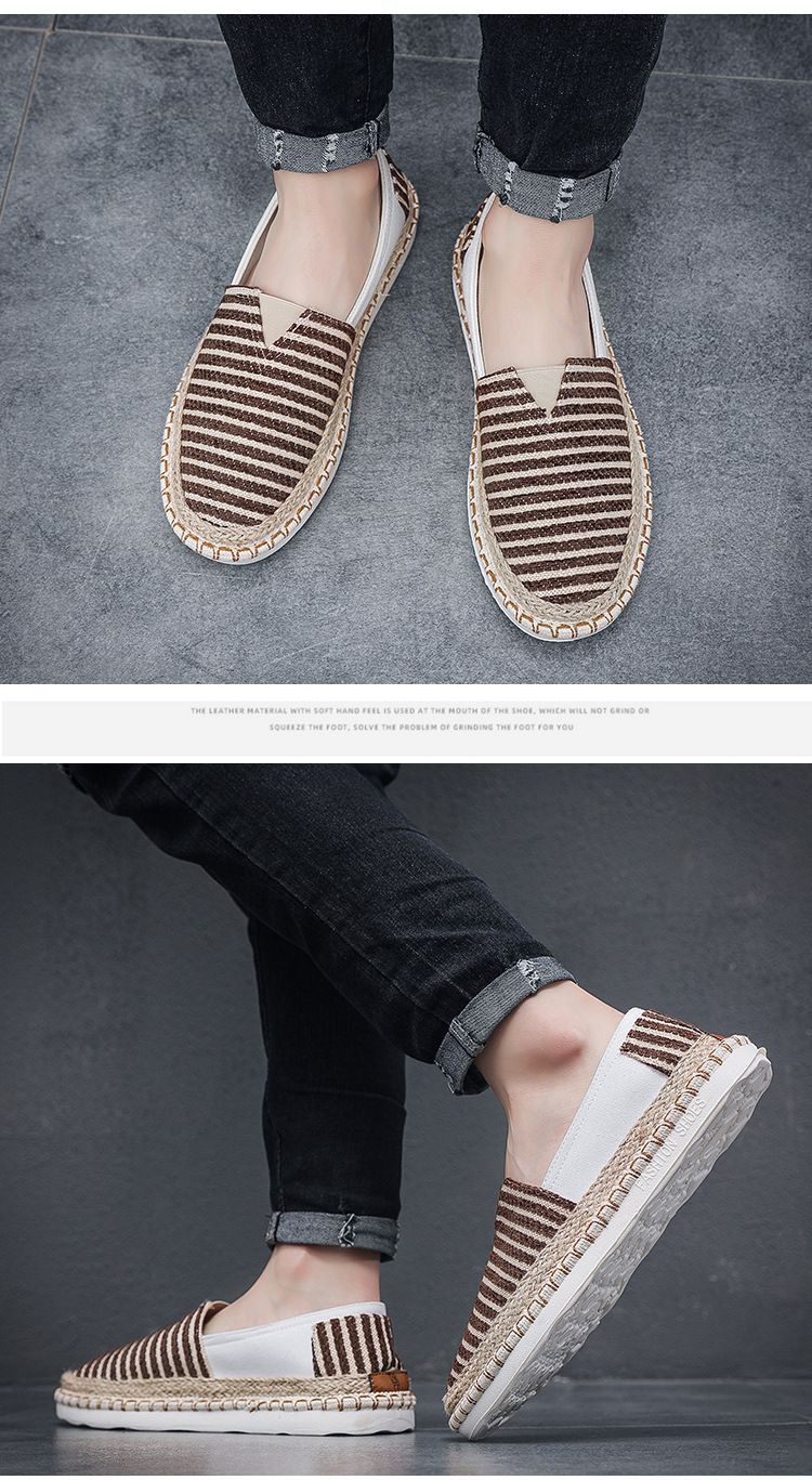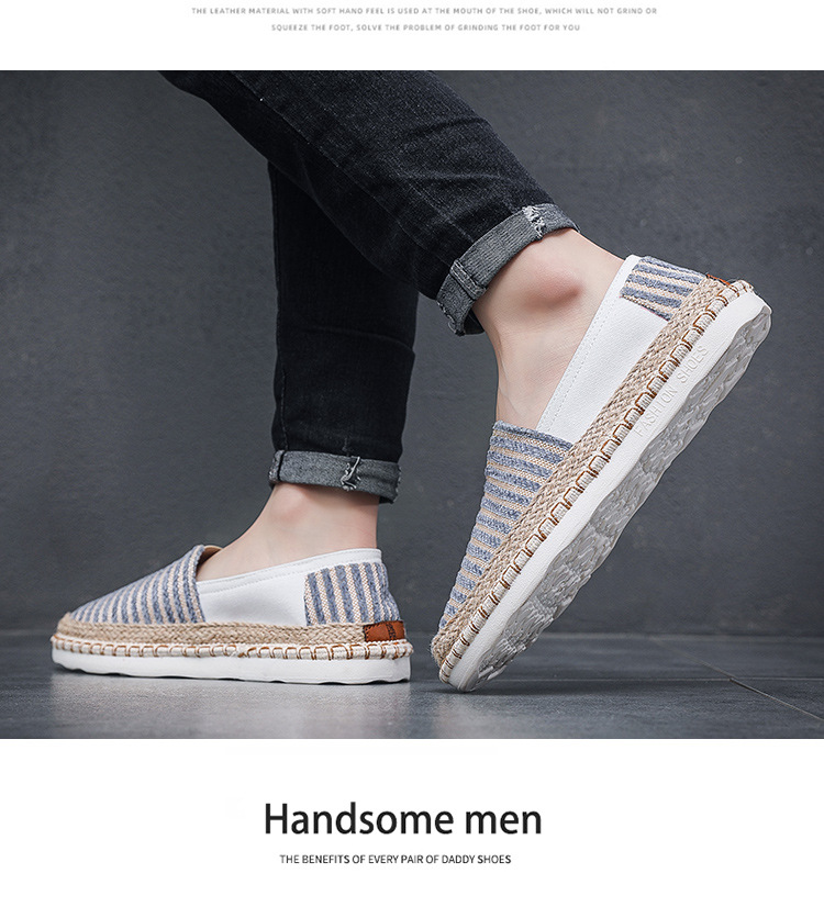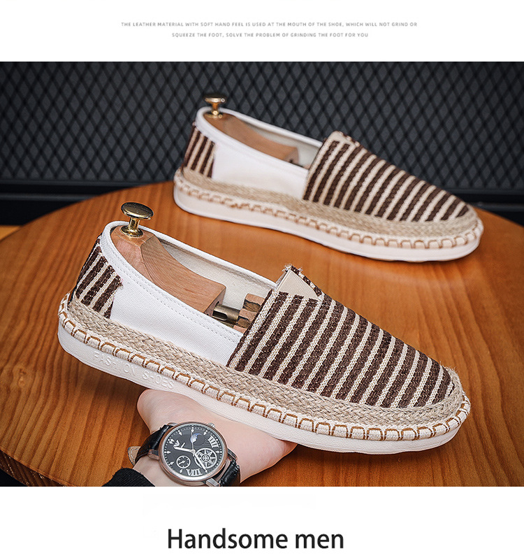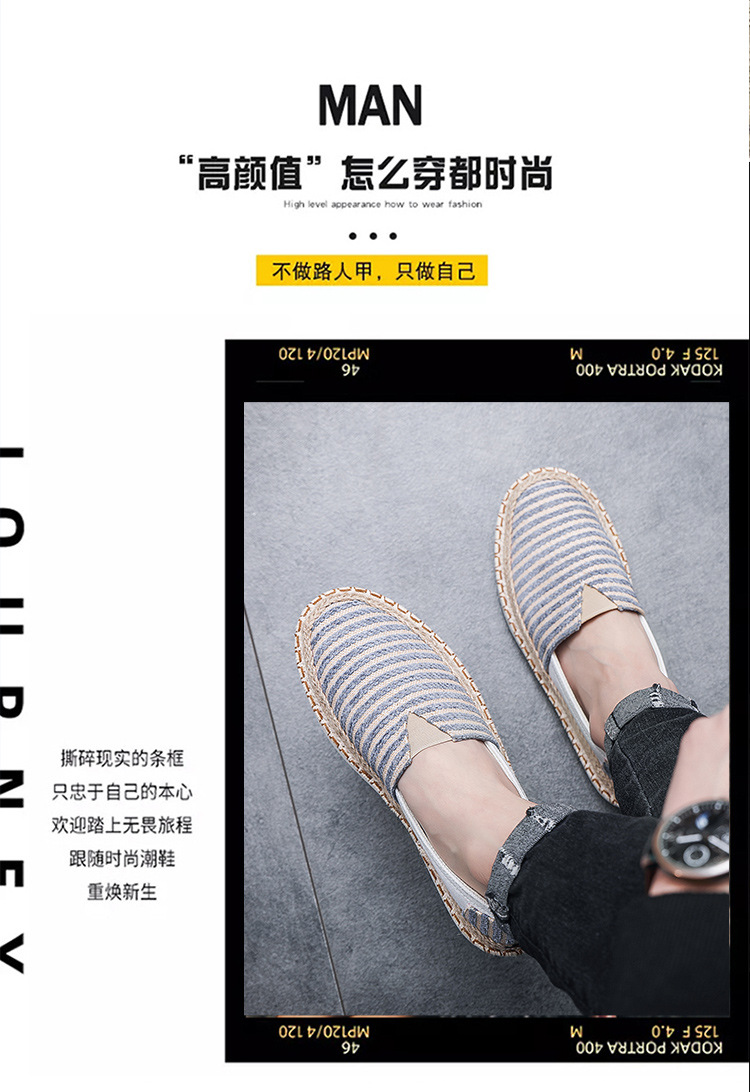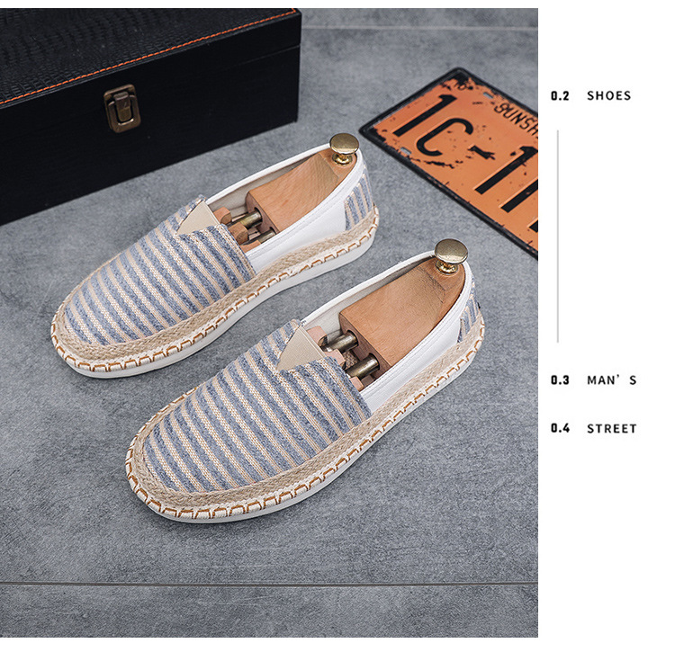 Zapatos Casuales de Tela a Rayas para Hombre, Estilo Pescador, Primavera/Verano 2025, Estilo Pekinés Antiguo
