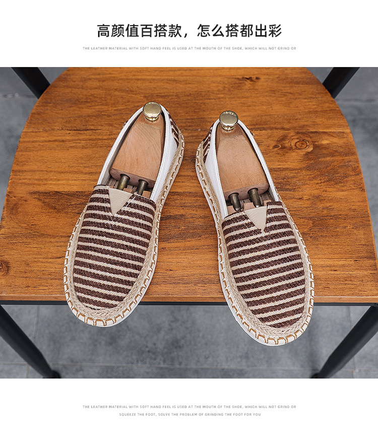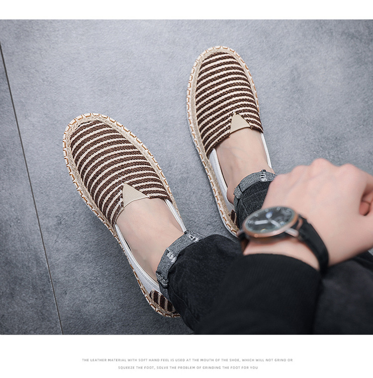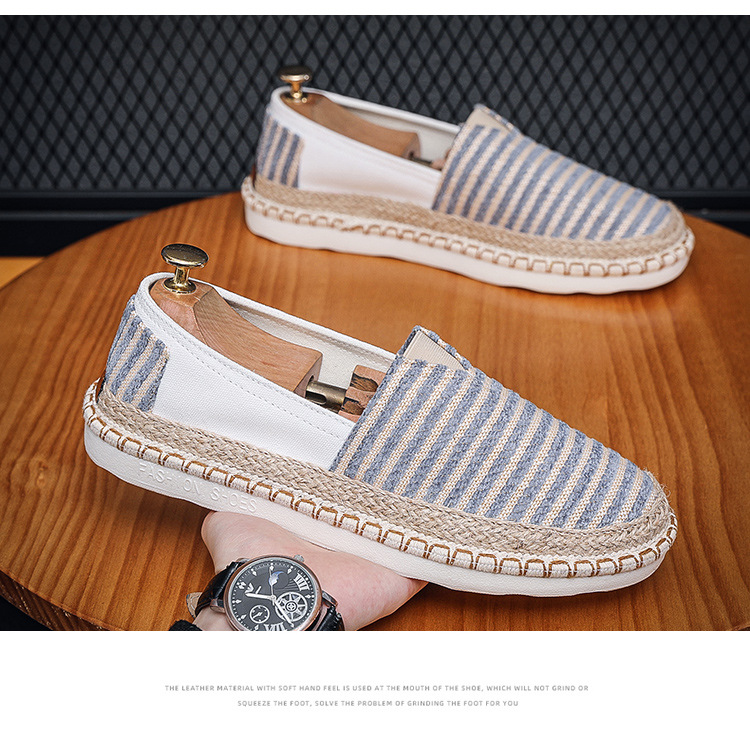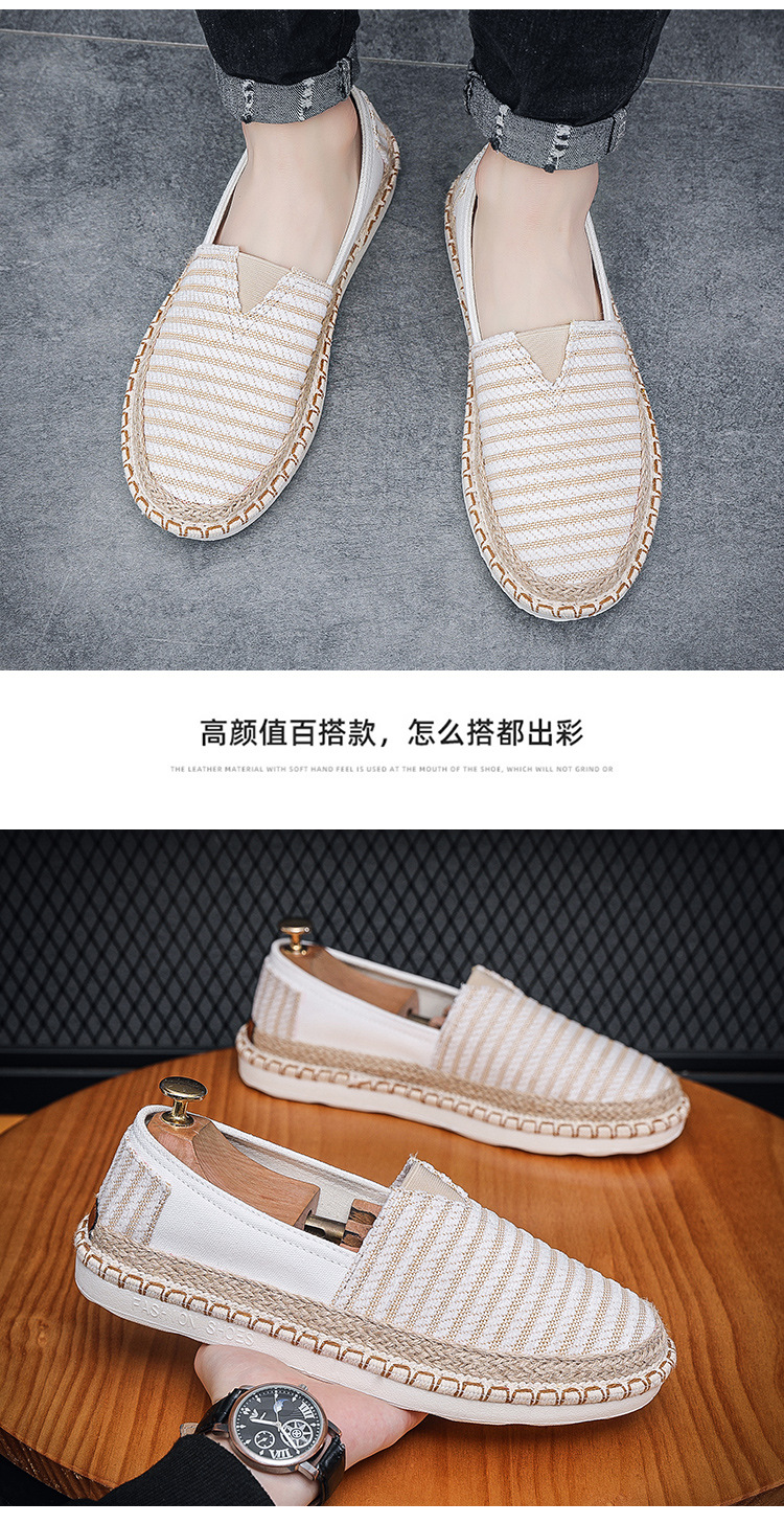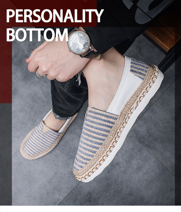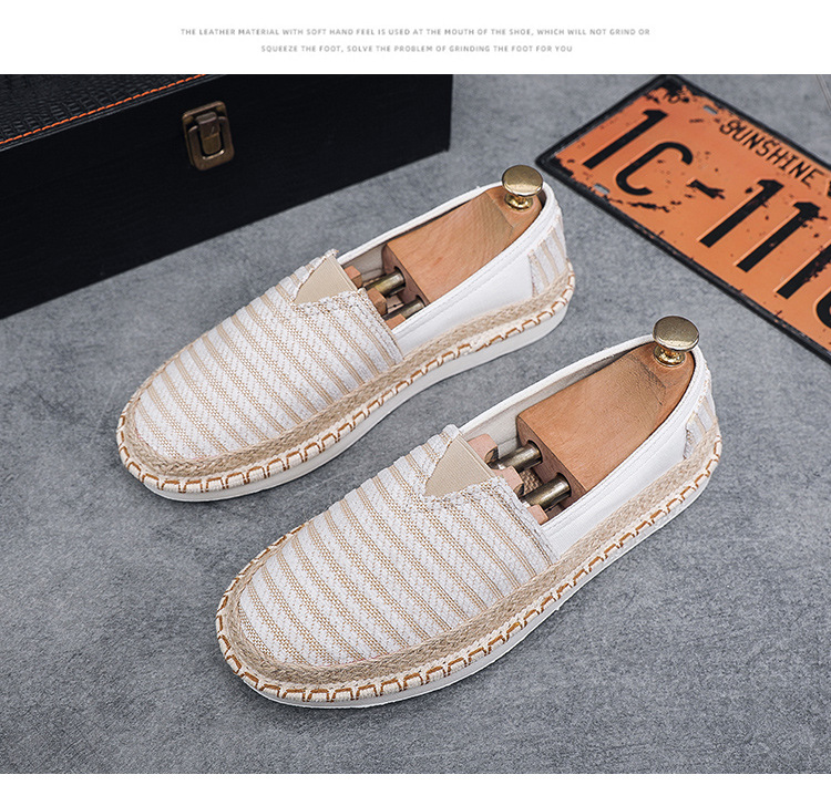 Zapatos Casuales de Tela a Rayas para Hombre, Estilo Pescador, Primavera/Verano 2025, Estilo Pekinés Antiguo