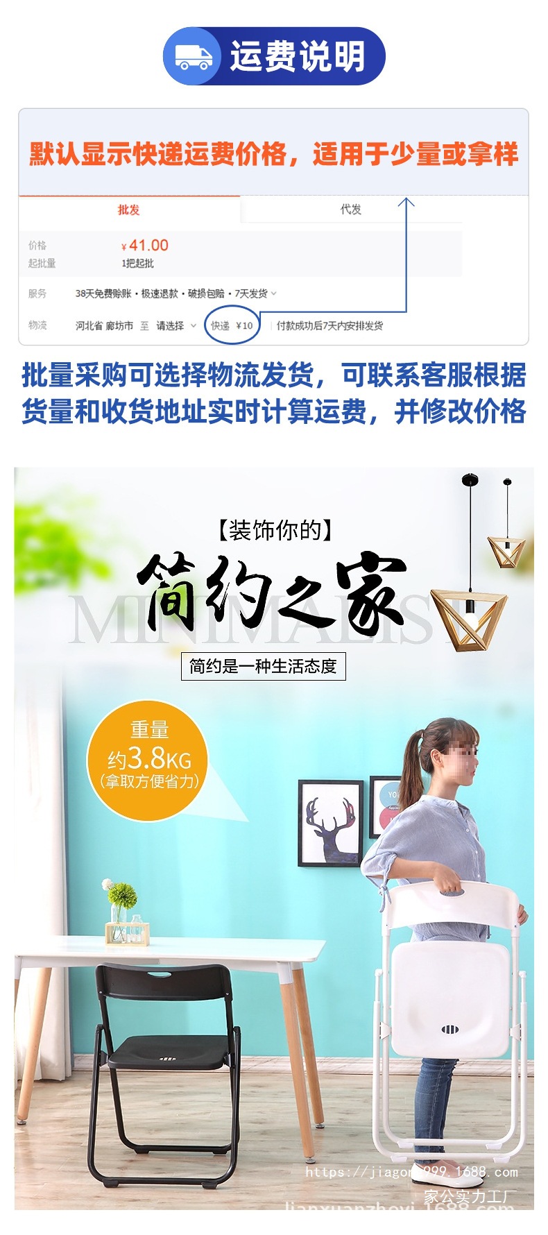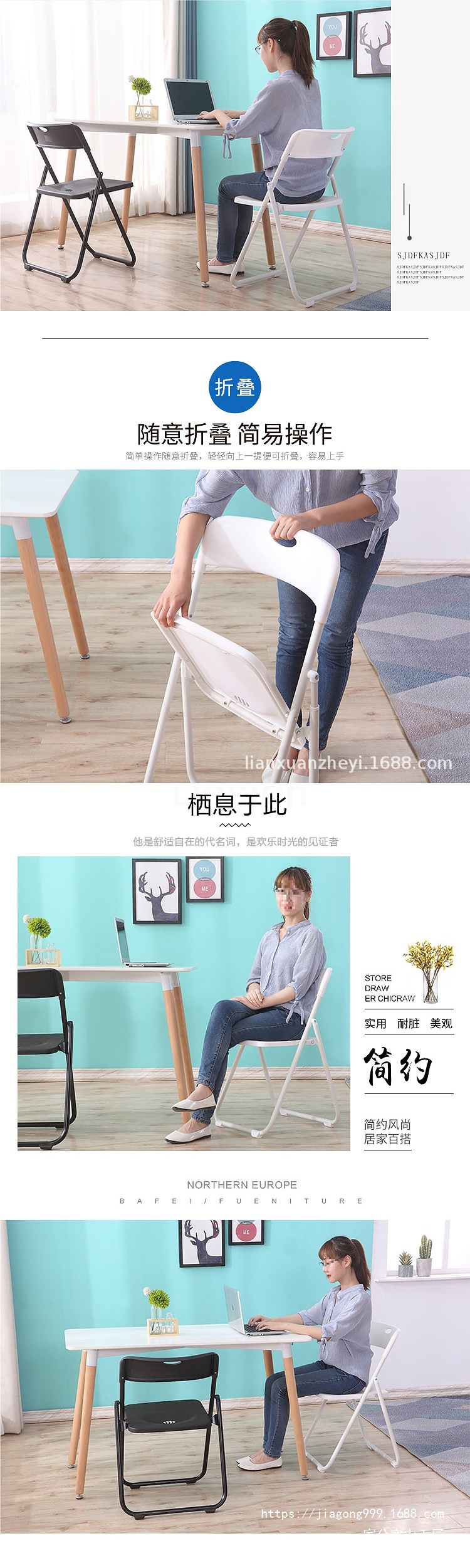 Silla plegable, silla de comedor de plástico para el hogar, evento portátil, capacitación en conferencias, respaldo del personal, silla de computadora, taburete, simple ins