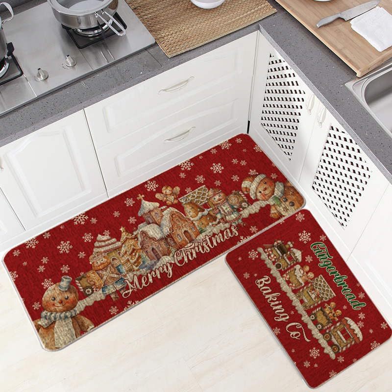 Al por mayor transfronterizo escena navideña de lana de cristal resistente a la suciedad resistente al desgaste cocina puerta de entrada al baño esterilla larga