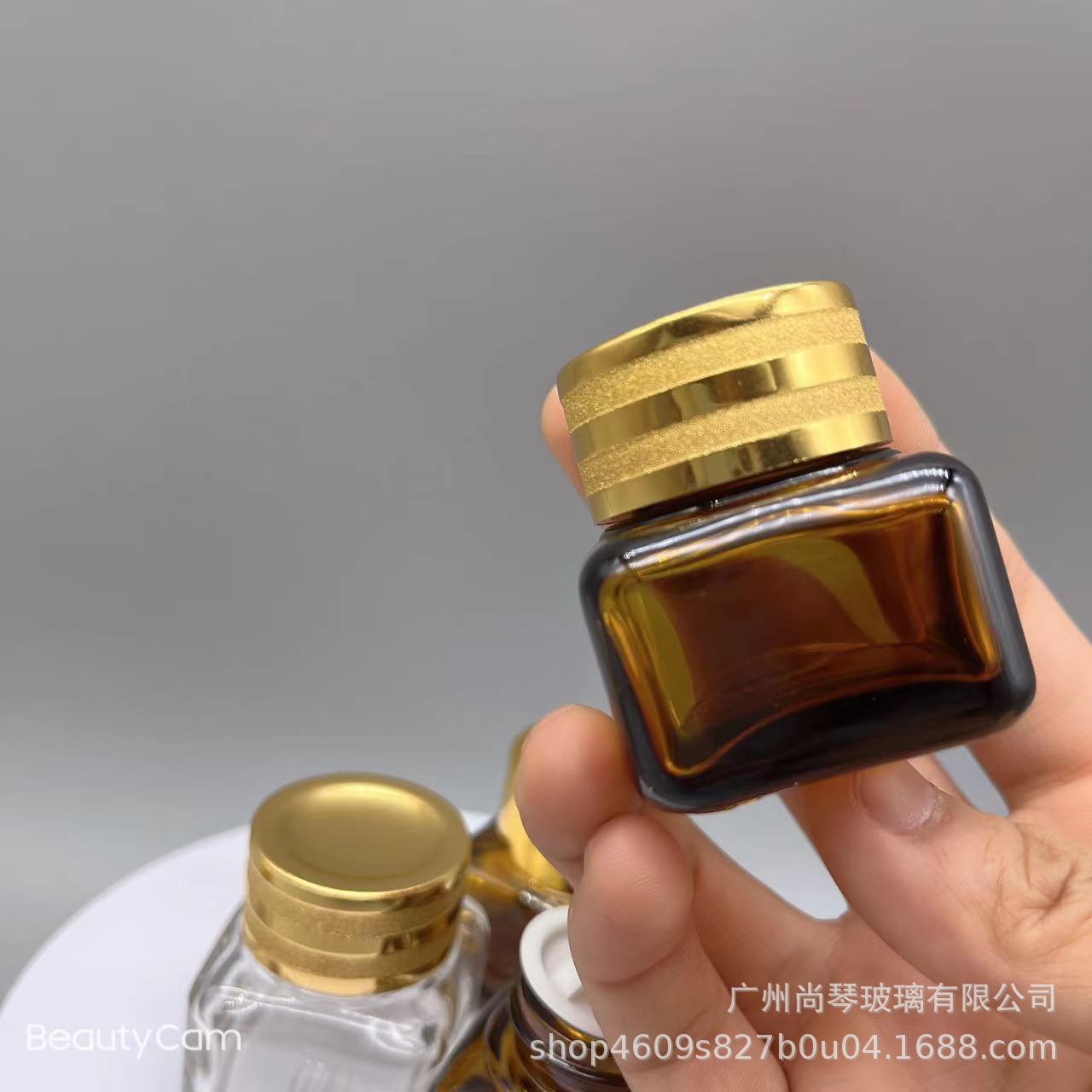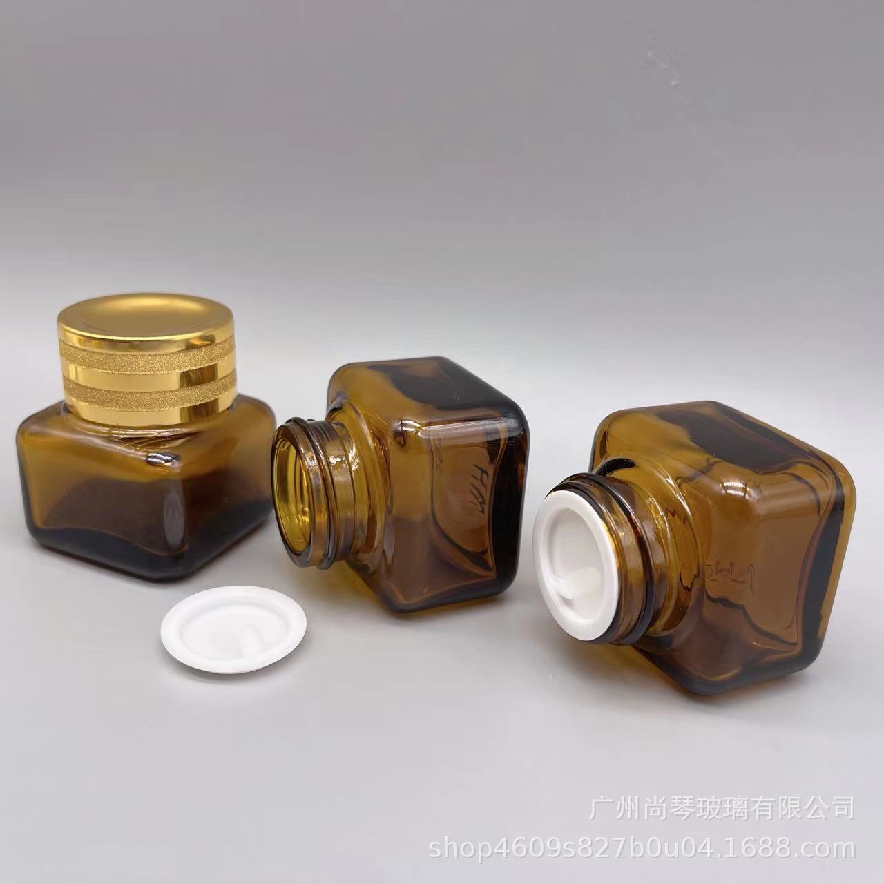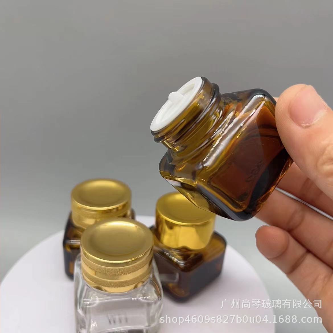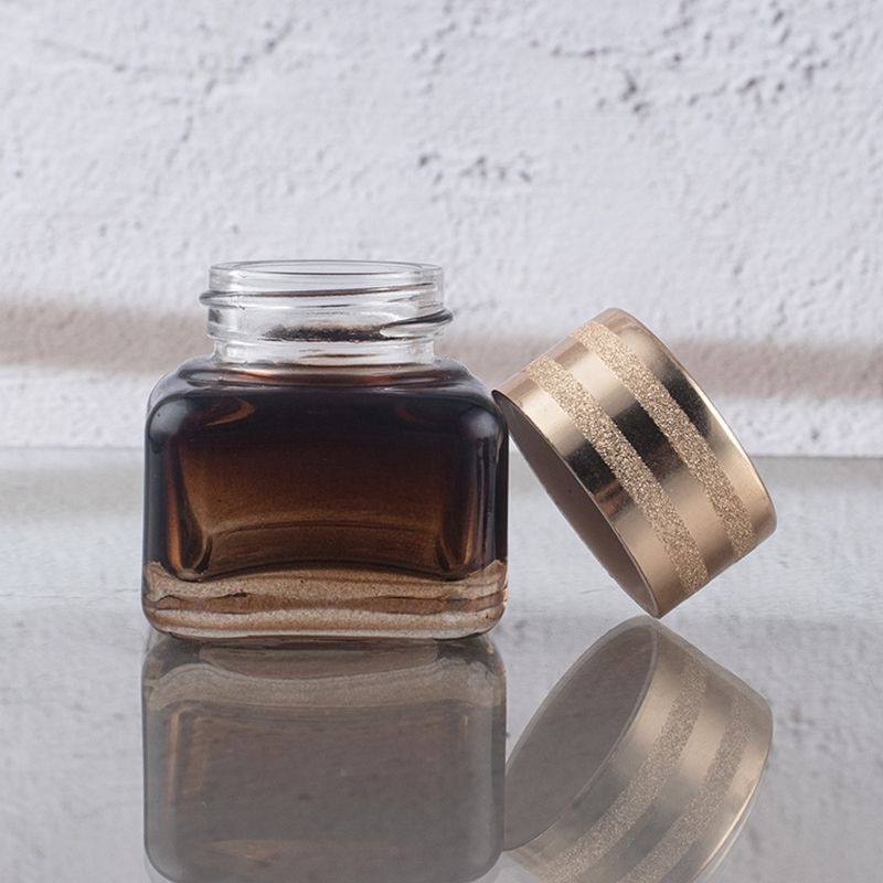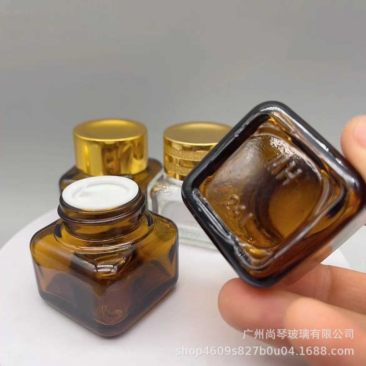 En stock suministro 15g Yashi mismo estilo marrón/transparente cuadrado ojo crema botella de vidrio de fondo grueso botella de vidrio cosméticos sub-embalaje