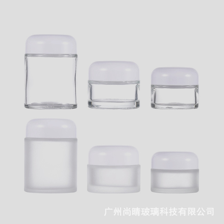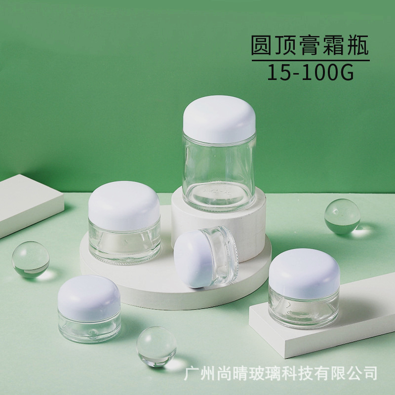 Ventas directas de fábrica 15-100g botella de ungüento de boca ancha transparente cúpula botella de crema cosmética botella de crema de vidrio 50g
