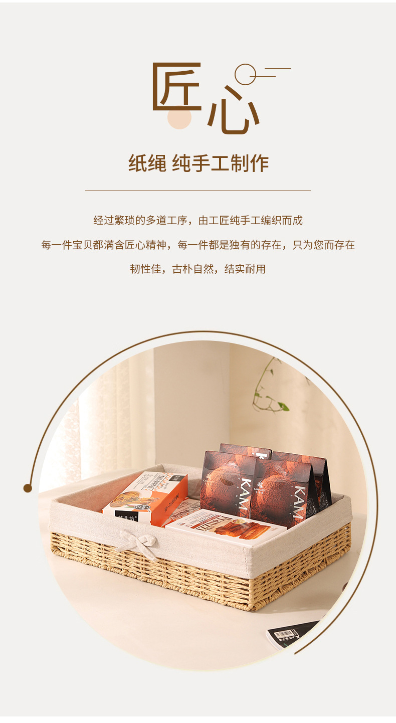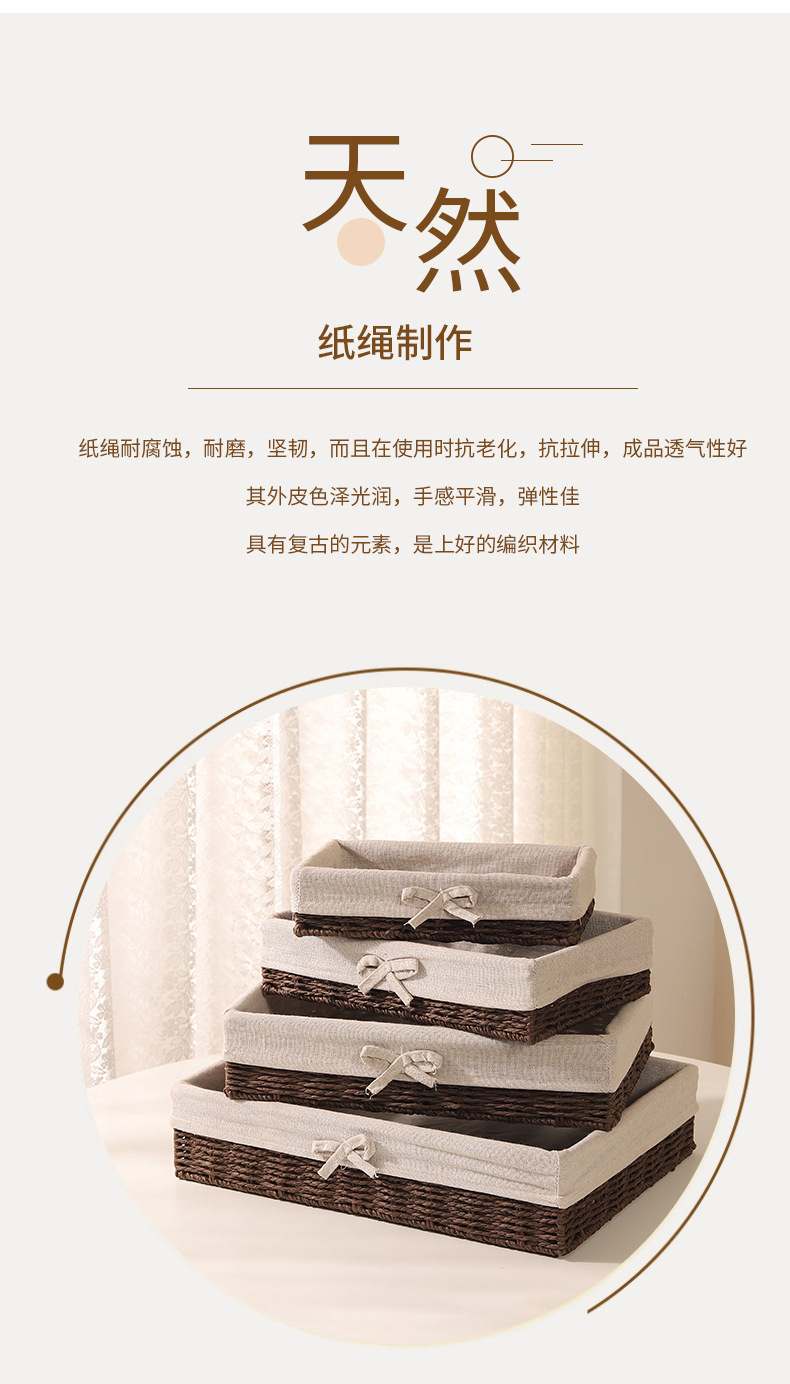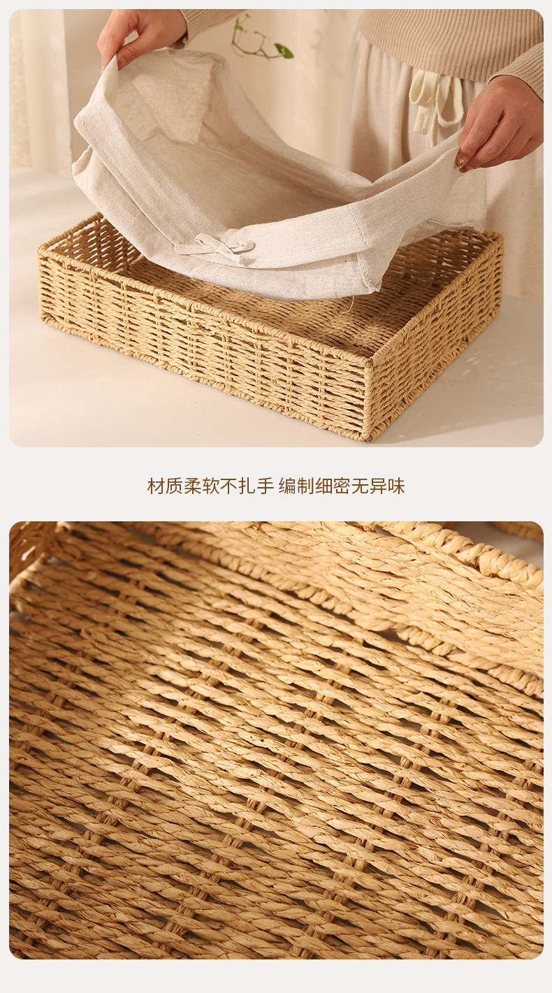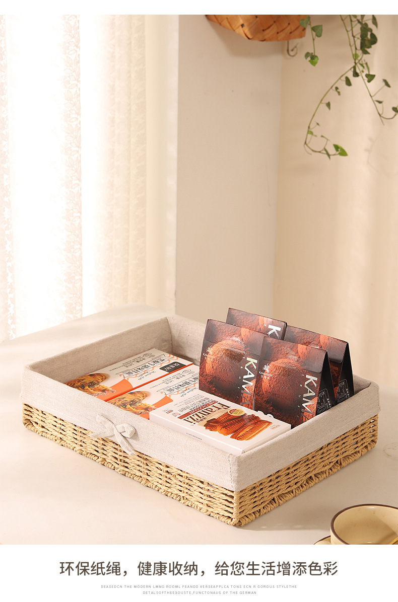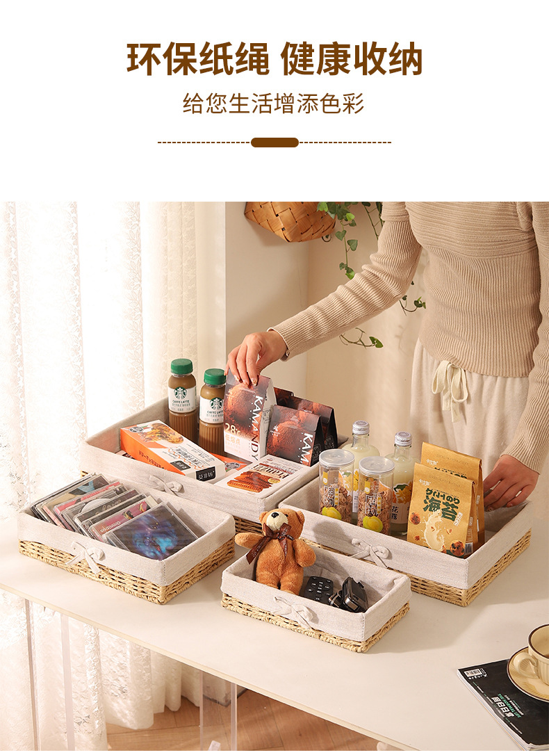 Cesta de almacenamiento de escritorio trenzada, sala de estar doméstica, bocadillos de paja trenzada, cesta de almacenamiento de cuerda de papel trenzada, caja de almacenamiento de cosméticos