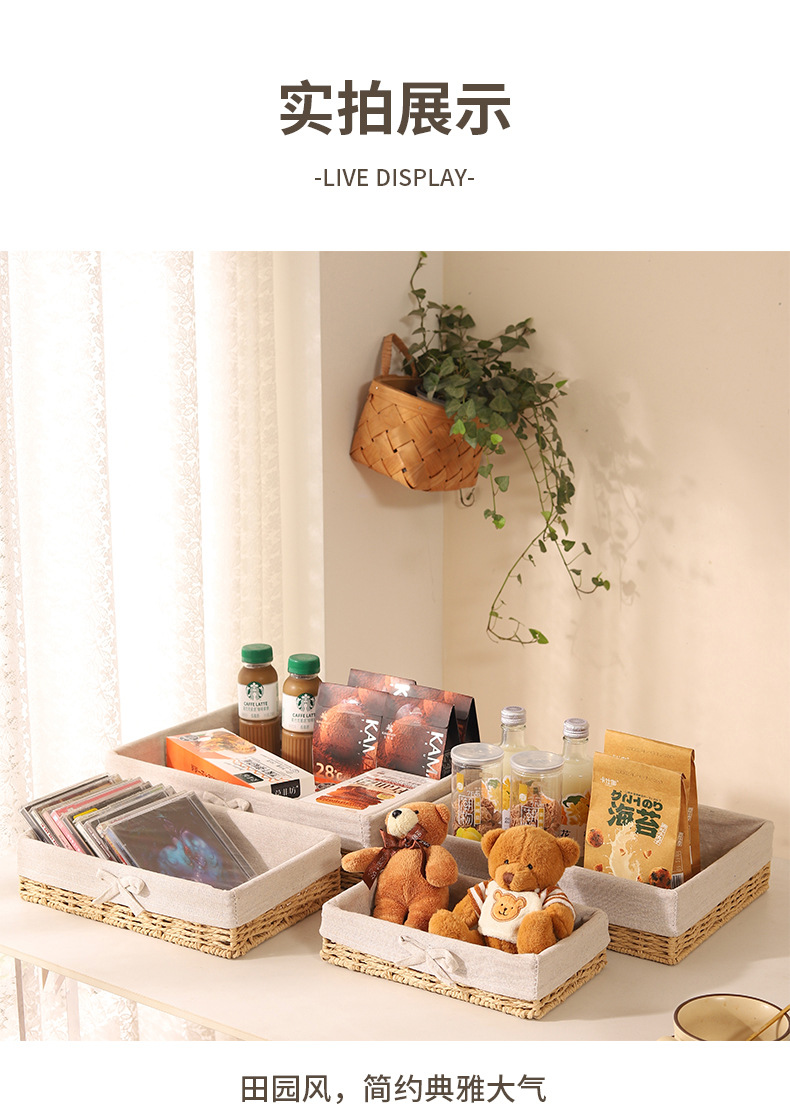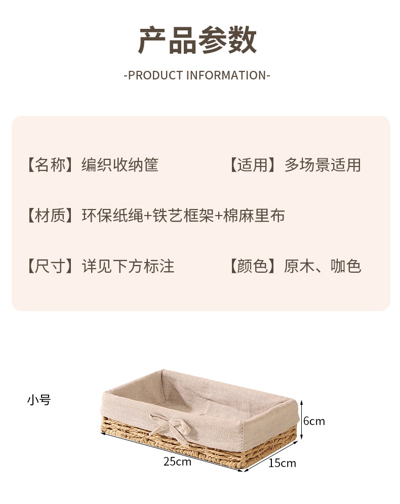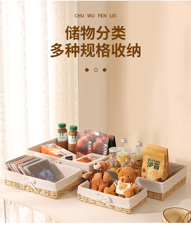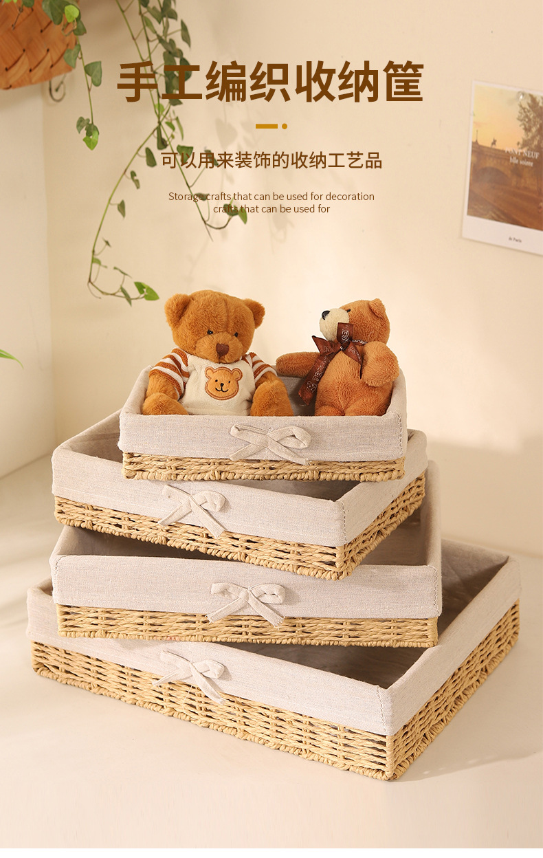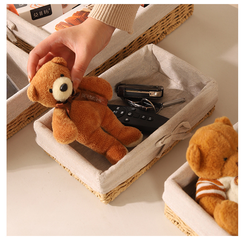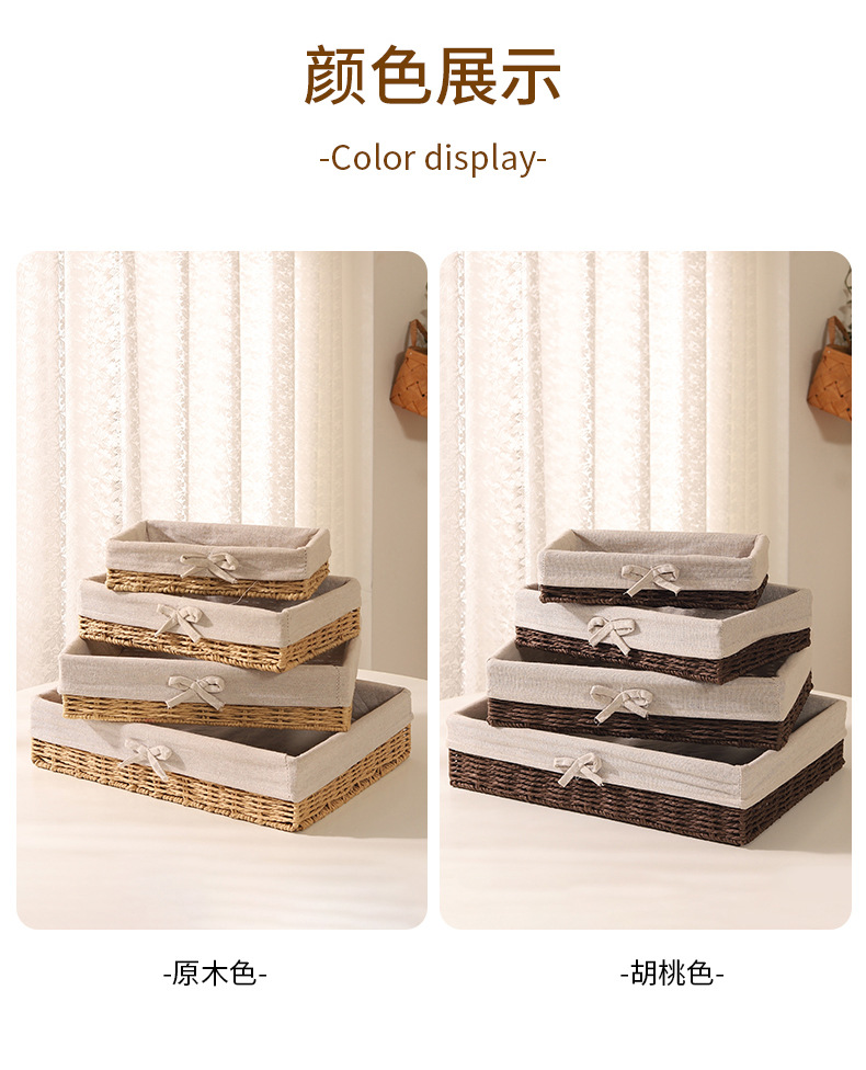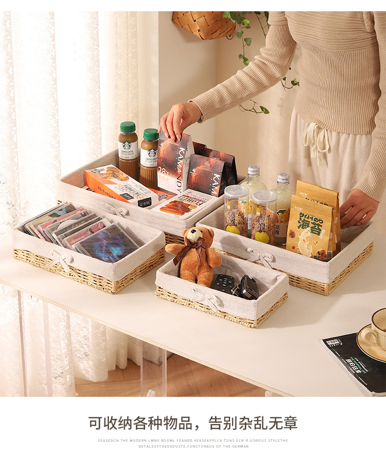 Cesta de almacenamiento de escritorio trenzada, sala de estar doméstica, bocadillos de paja trenzada, cesta de almacenamiento de cuerda de papel trenzada, caja de almacenamiento de cosméticos