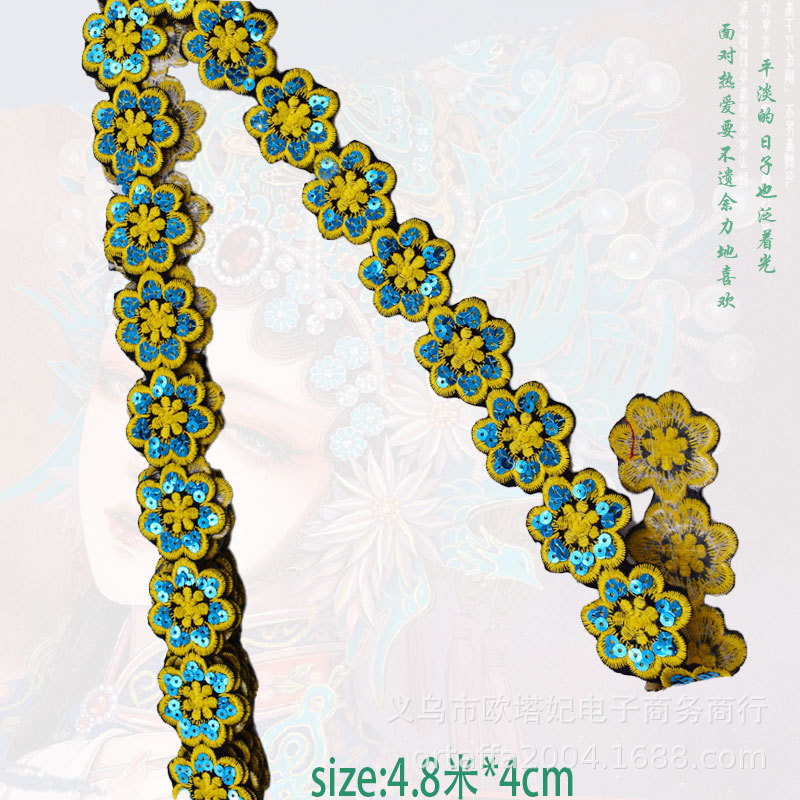 Xinjiang étnica danza rendimiento ropa lentejuelas de encaje bordado Plum Blossom pieza de oro adhesivo de tela de planchado pegatinas Hanfu Decoración
