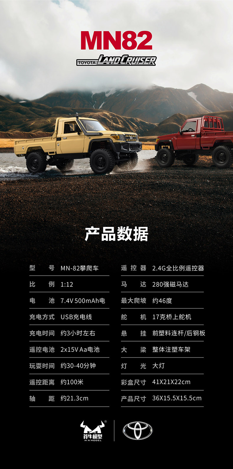 Manniu mn82 de cuatro ruedas de control remoto fuera de carretera vehículo 1:12 Toyota patrulla terrestre recogida LC79 escalada modelo de juguete Niño