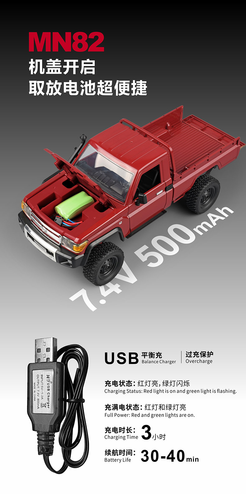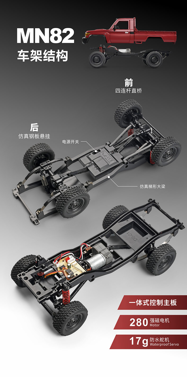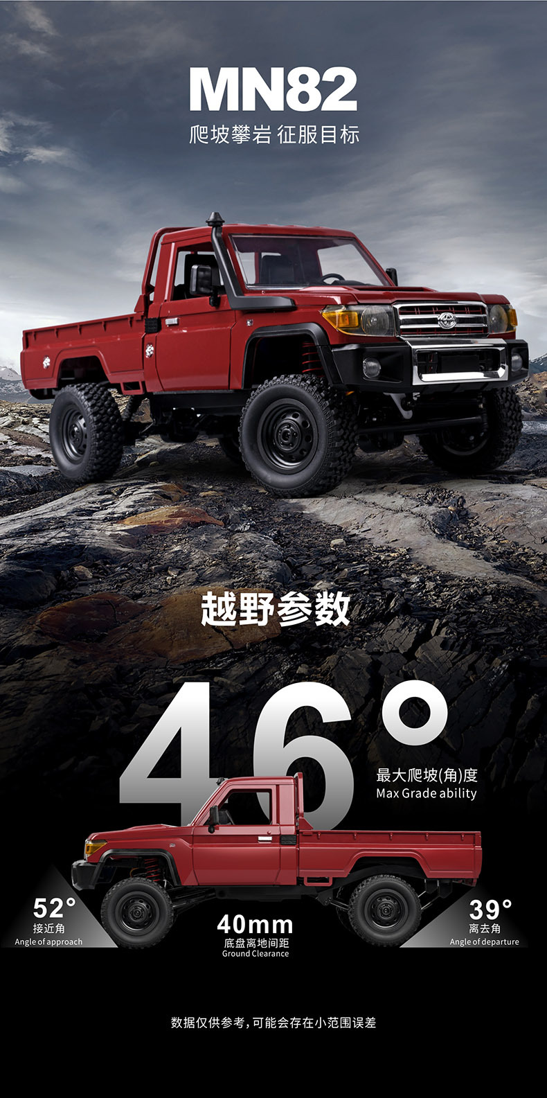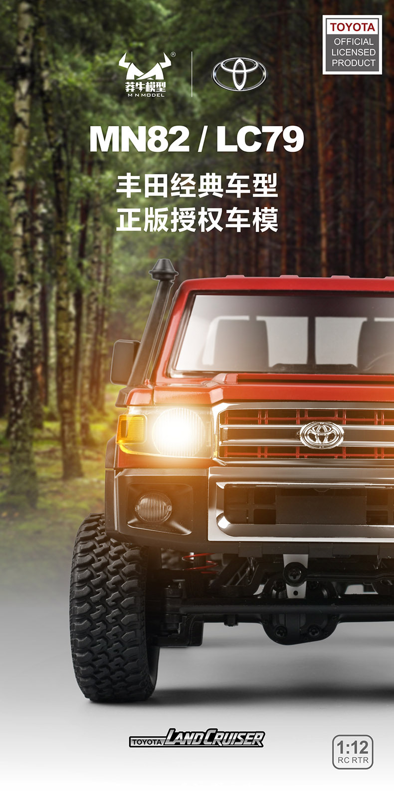 Mangniu modelo MN-82/LC79 coche de escalada con control remoto 1:12 todoterreno al aire libre tracción en las cuatro ruedas niño juguete de simulación