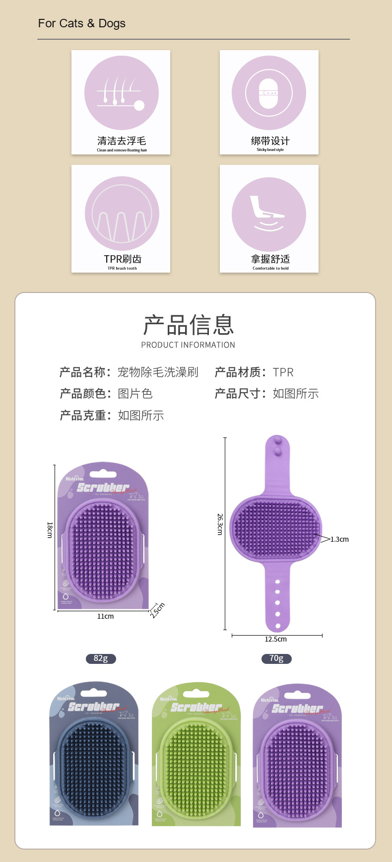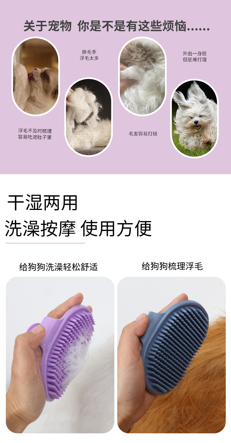 Cepillo de Baño para Mascotas con Empaque Internacional, Cepillo de Masaje Ajustable para Bañar Perros, Cepillo para Gatos, Cepillo para Eliminar Pelo Seco y Mojado