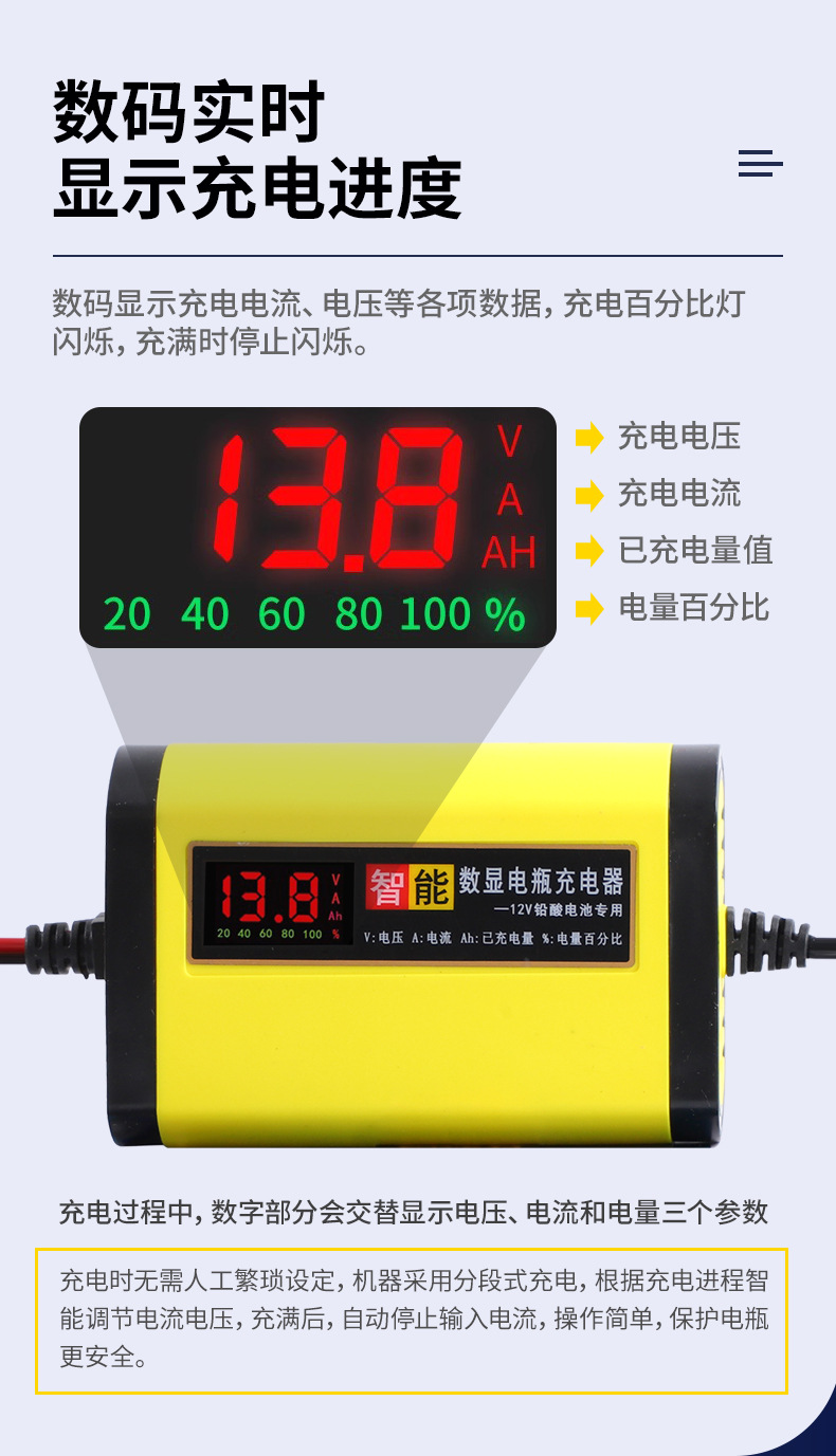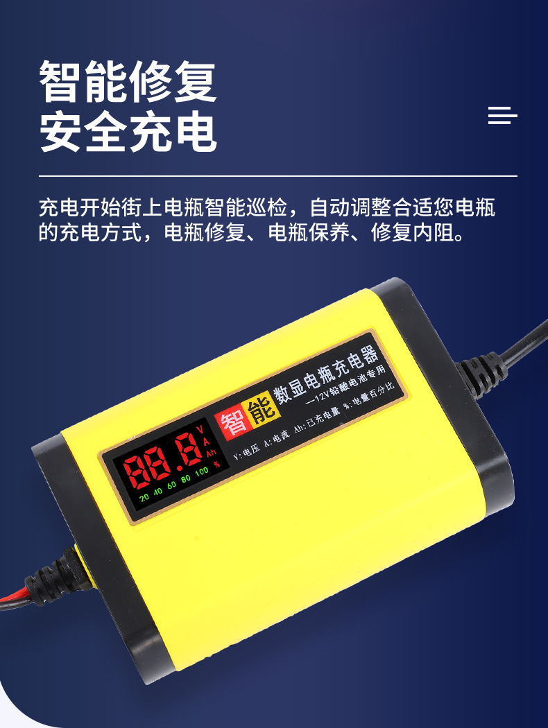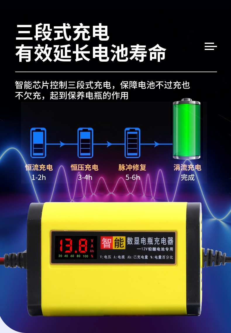 Reparación de batería de motocicleta, batería de almacenamiento de camión pequeño, cargador LCD, 12V voltios, 6A3, 5a2SUV, batería de coche