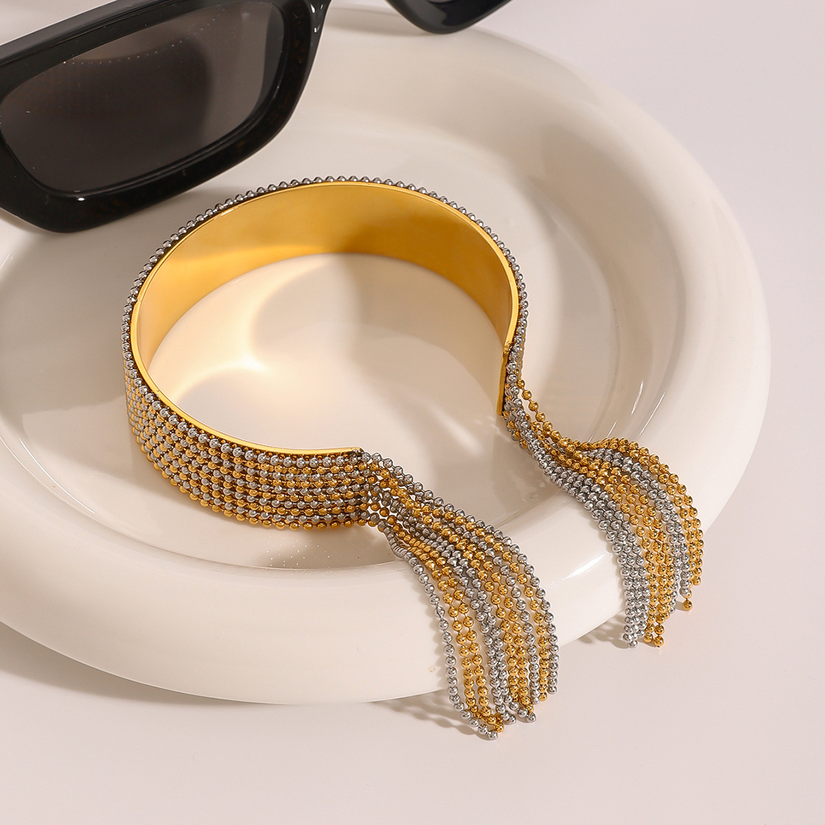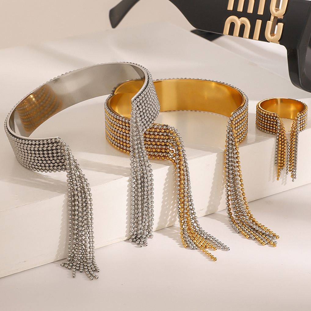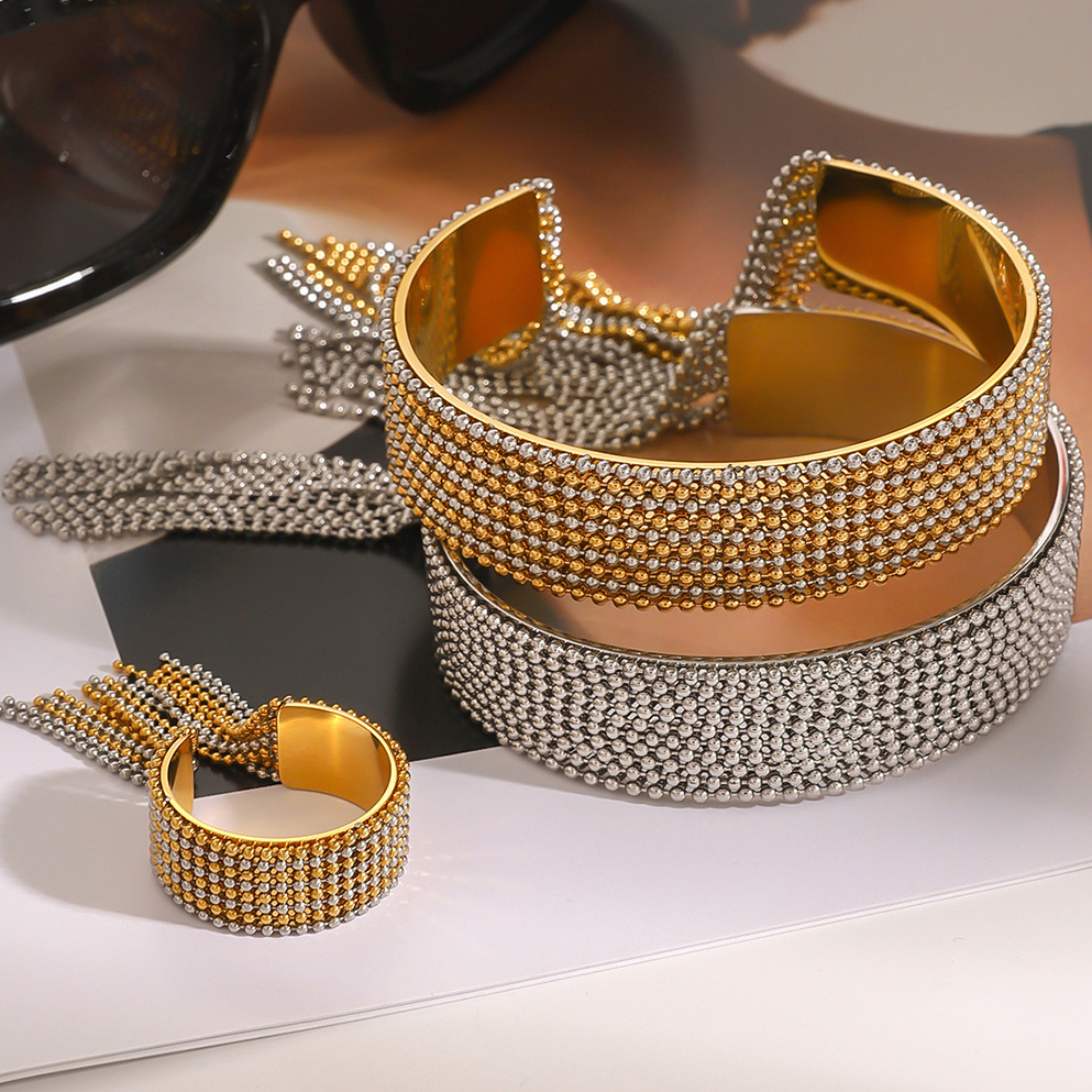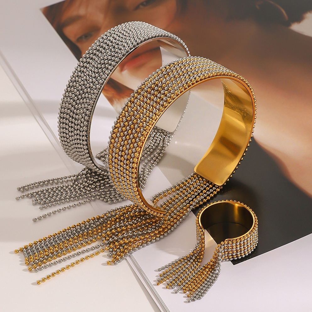 Jieding anillo de pulsera de borla de acero inoxidable europeo y americano anillo de nicho de sentido de alta calidad pulsera abierta de acero de titanio joyería de mano transfronteriza