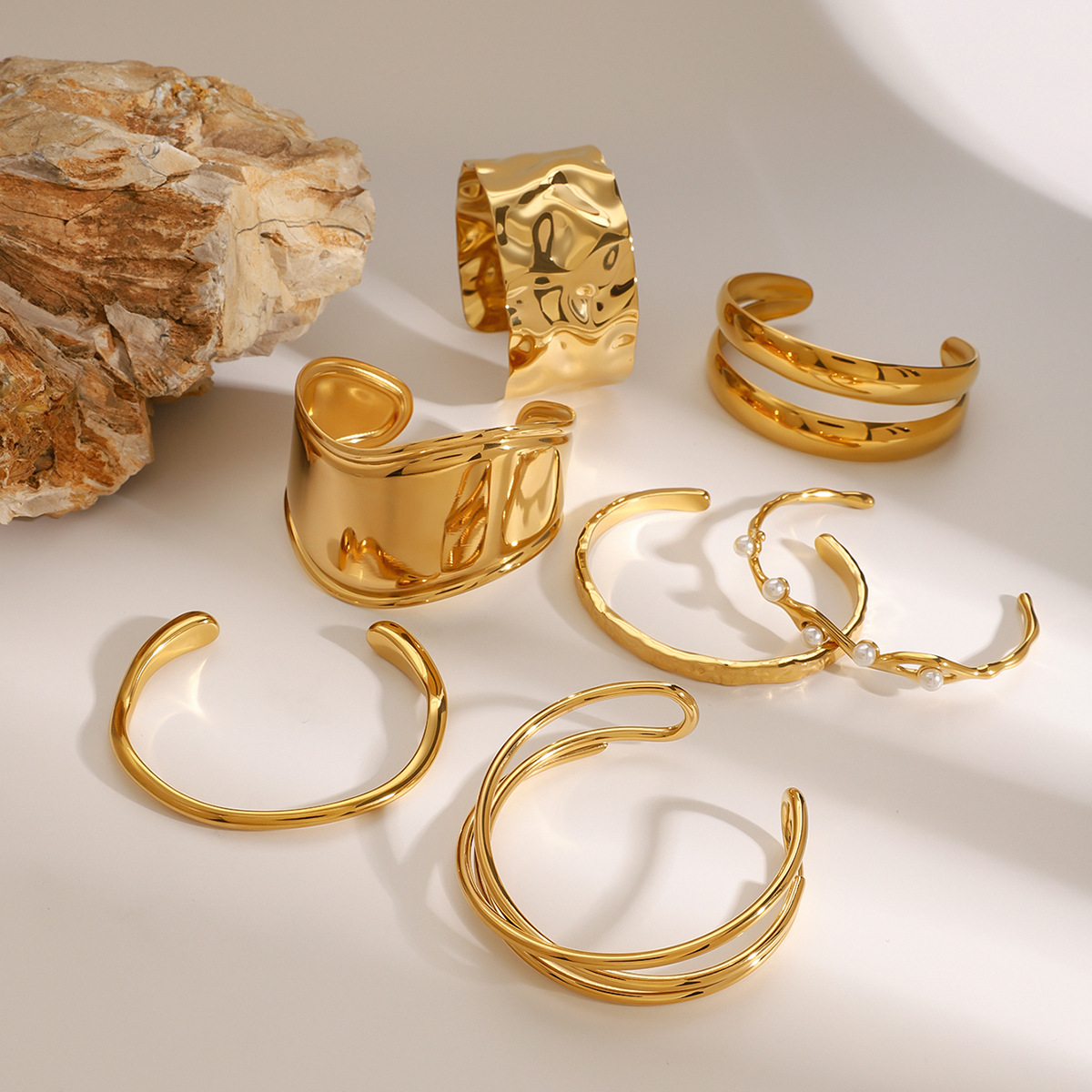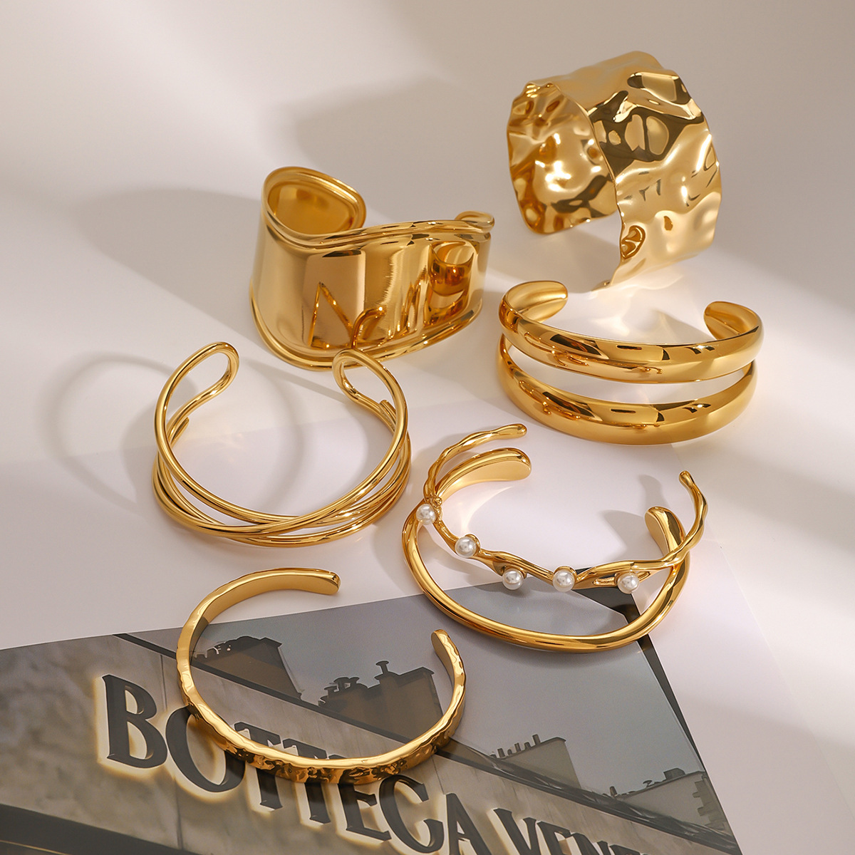Jieding Europa y América Pulsera de perlas doradas de acero inoxidable Pulsera de apertura de sentido avanzado Joyas de mano de acero de titanio Bracelet transfronterizo